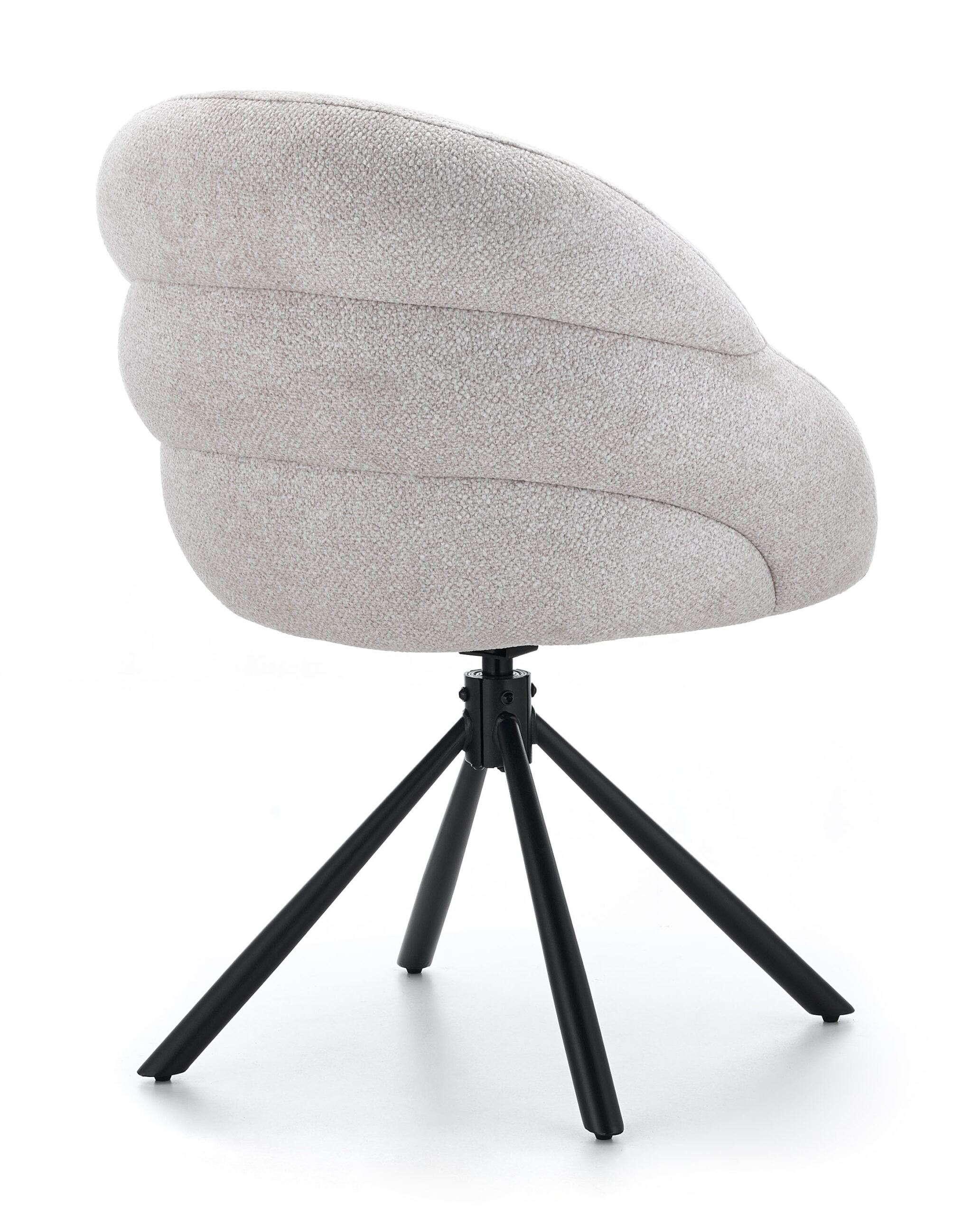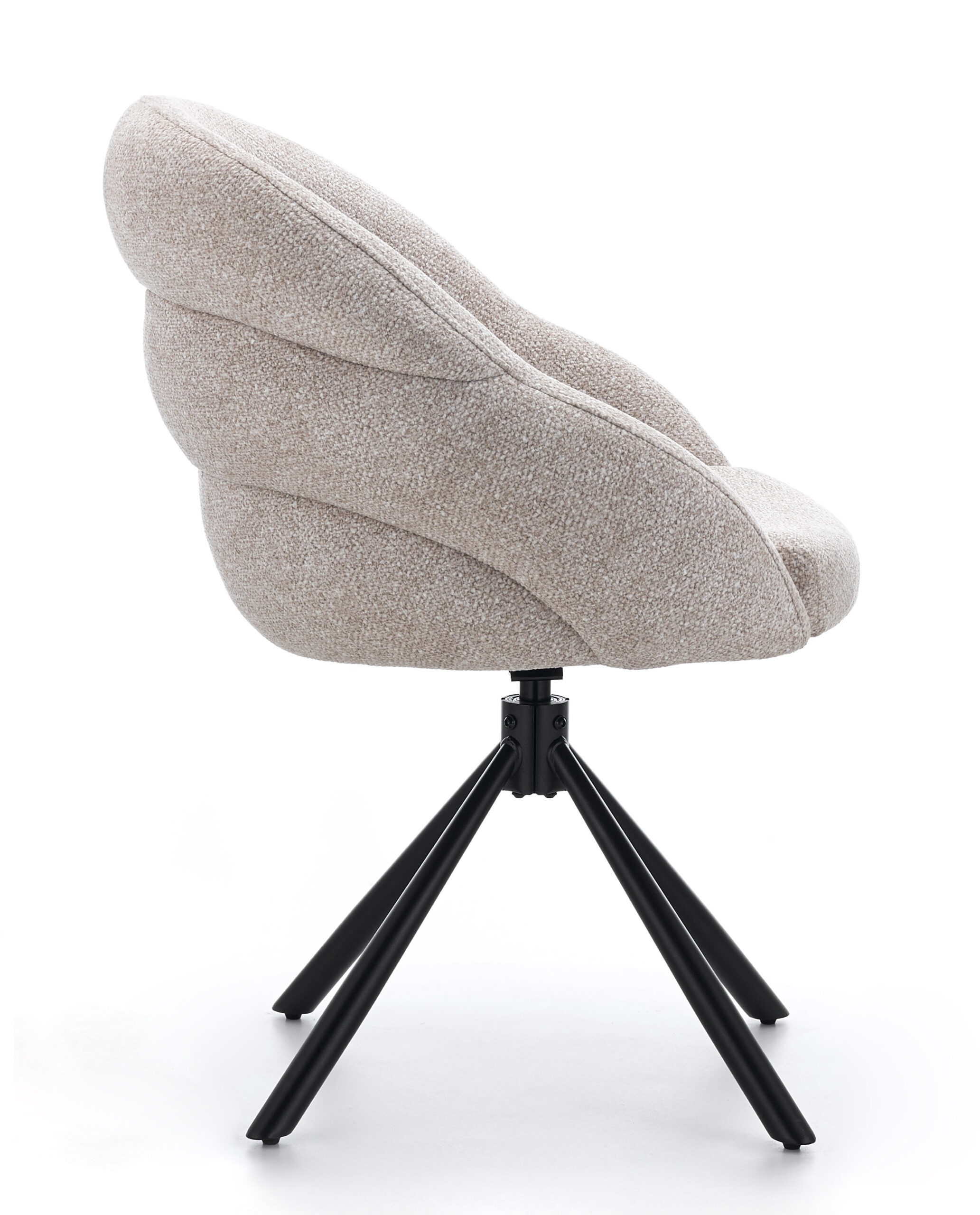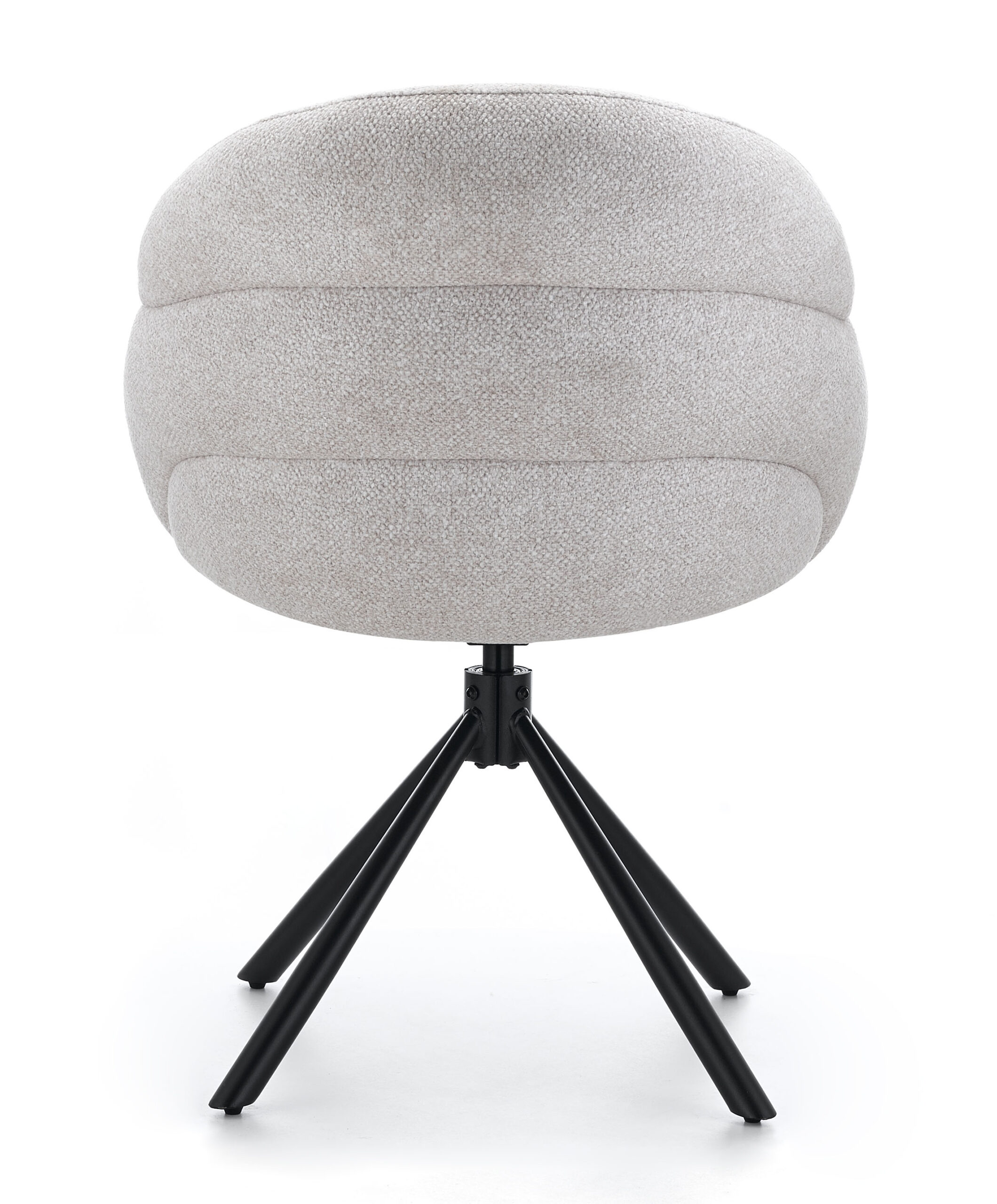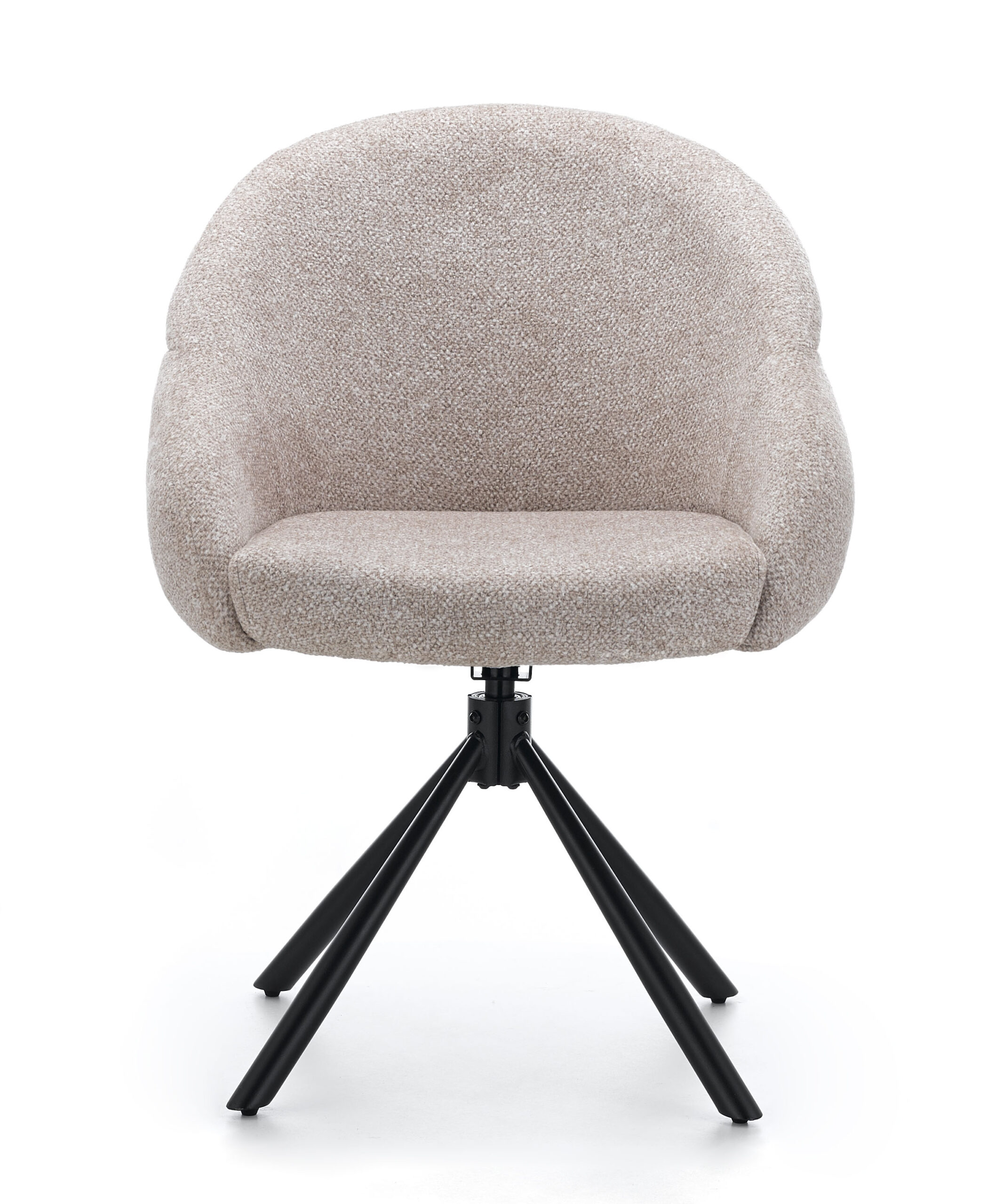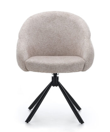 Lilia Beige Chenille Swivel Chair with Auto-Return and Black Metal Base