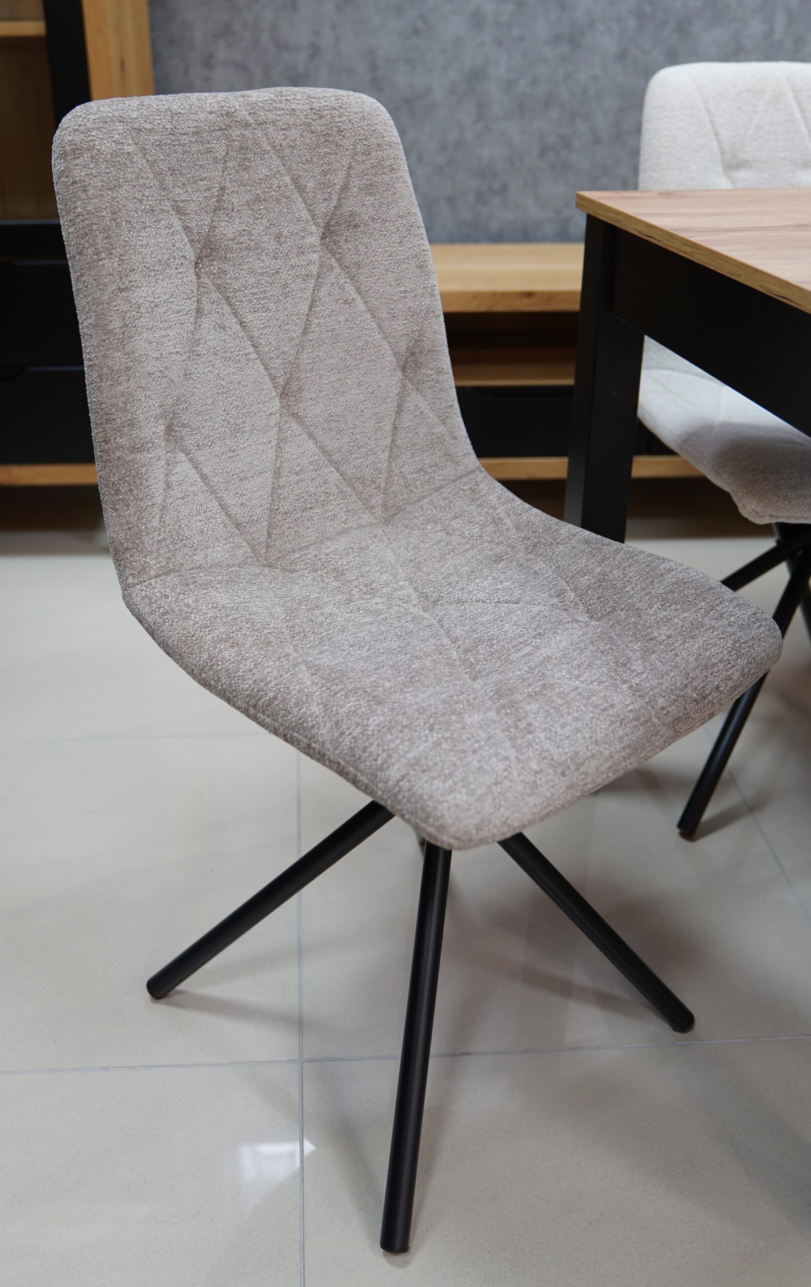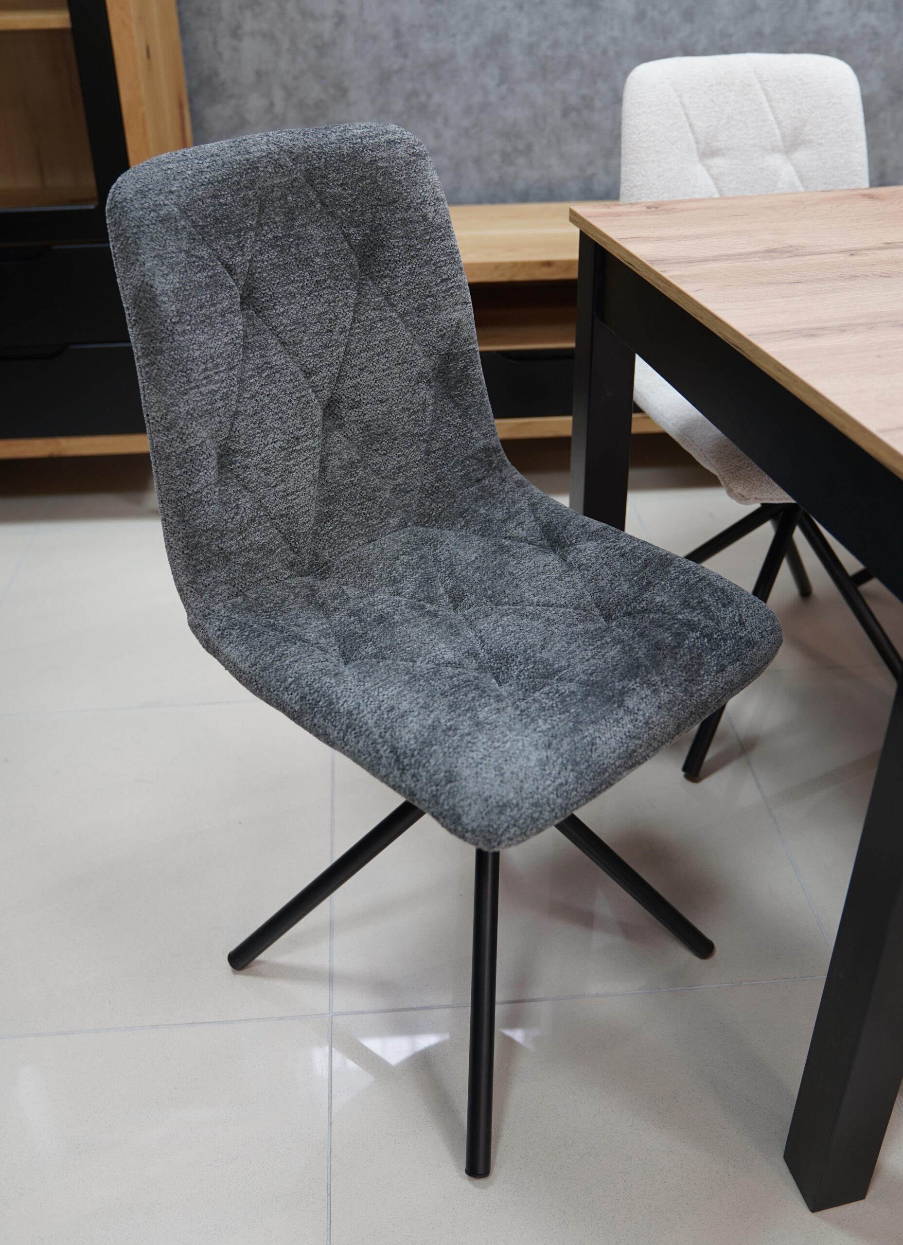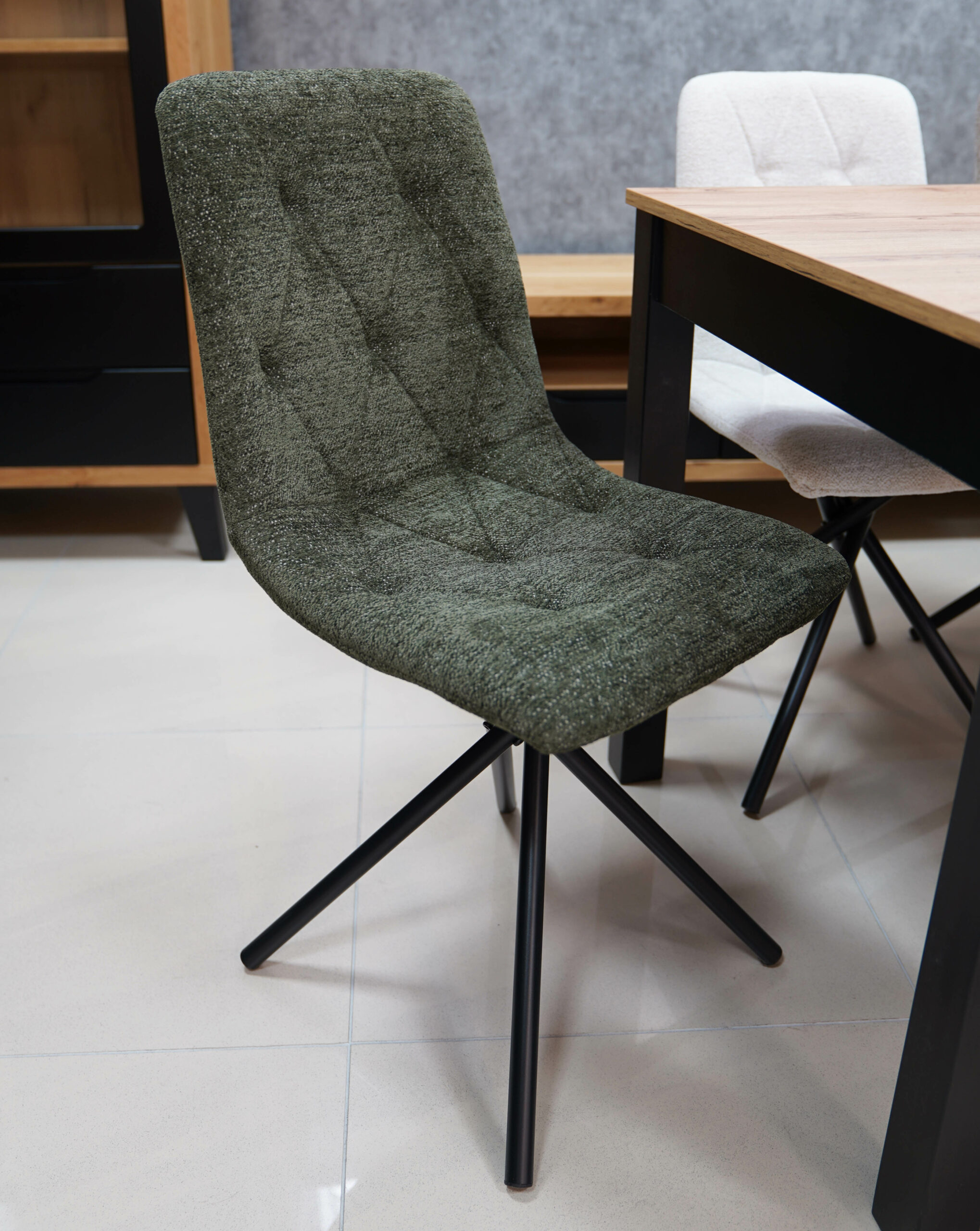 The Luna chair stands on a strong black metal base that provides good stability while keeping the look light and contemporary. This combination of sturdy construction and soft upholstery makes it suitable for daily use in busy homes and small offices.