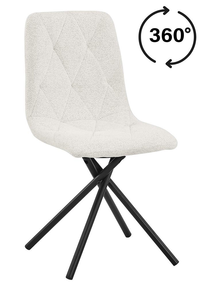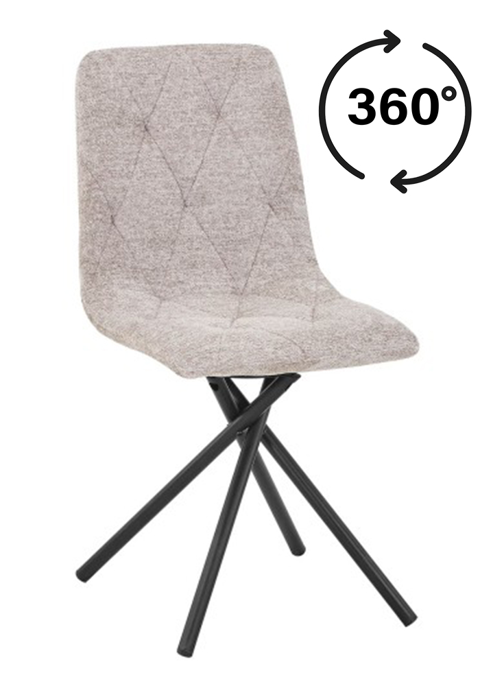 Luna Beige Swivel Dining and Office Chair with Chenille Upholstery and Black Metal Base