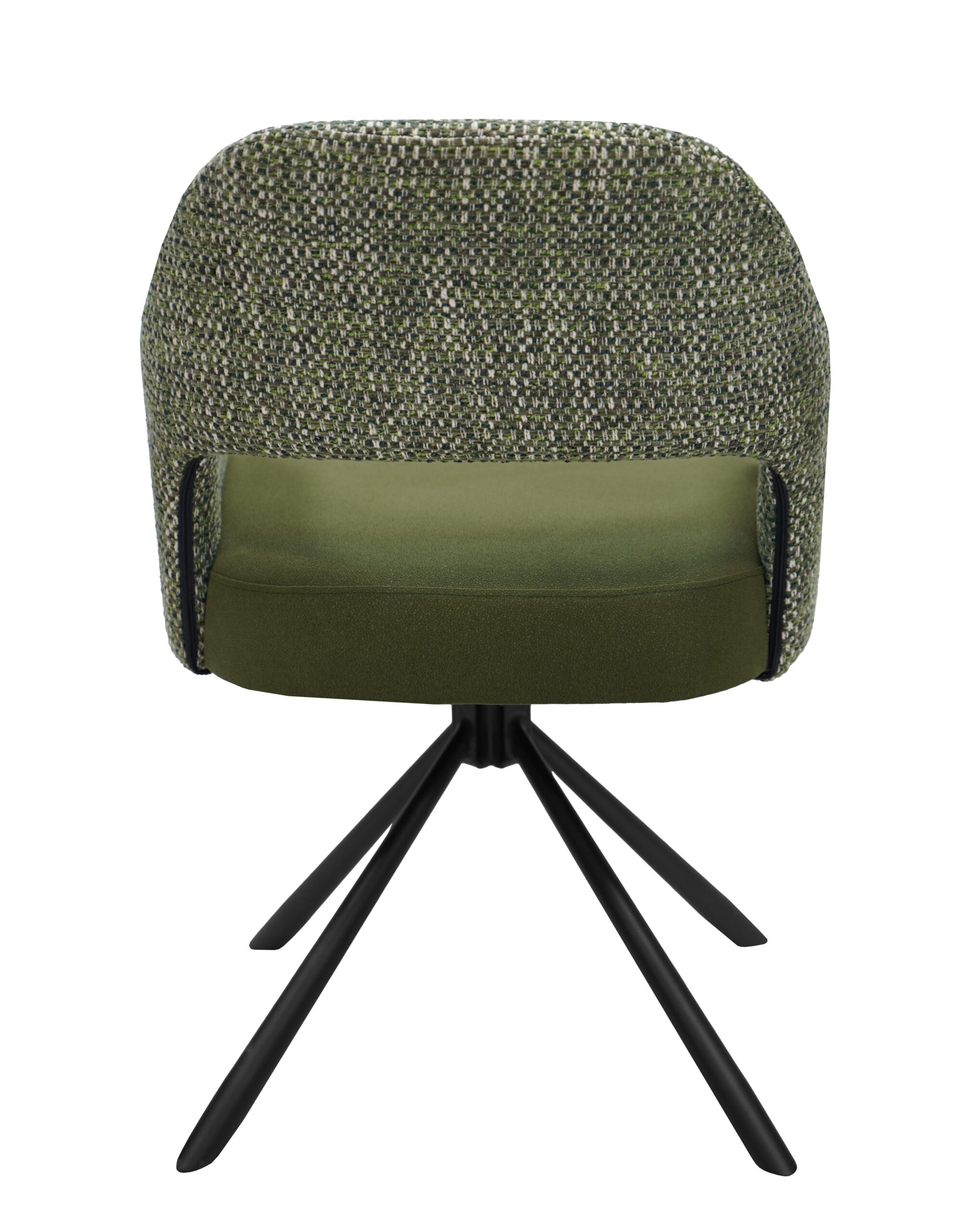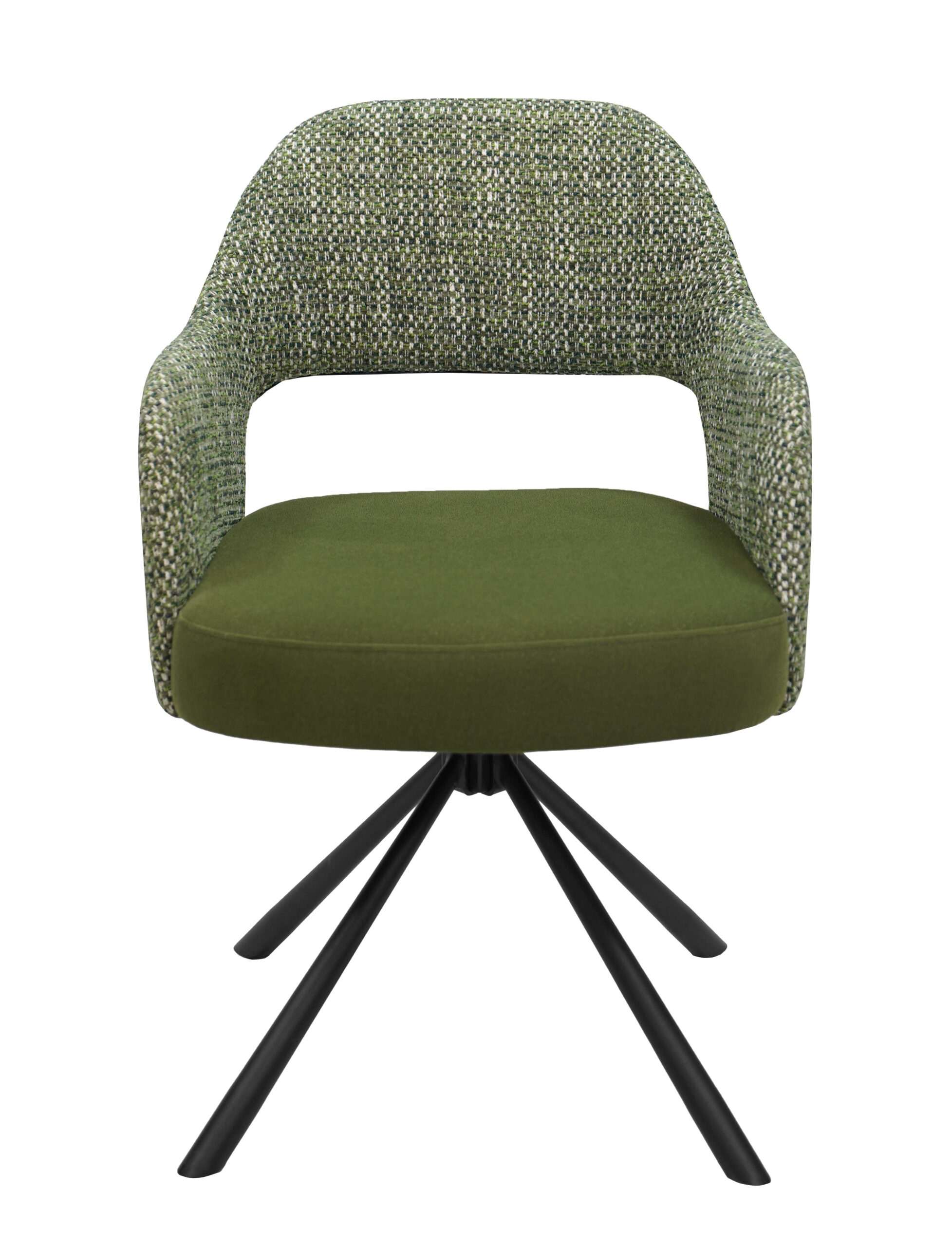 The Pivot39 Chair offers a 180-degree swivel mechanism with automatic return to front position, maintaining neat alignment in busy dining areas, restaurants or conference rooms. Its sturdy black metal base delivers industrial strength and stability for high-traffic commercial or home use.