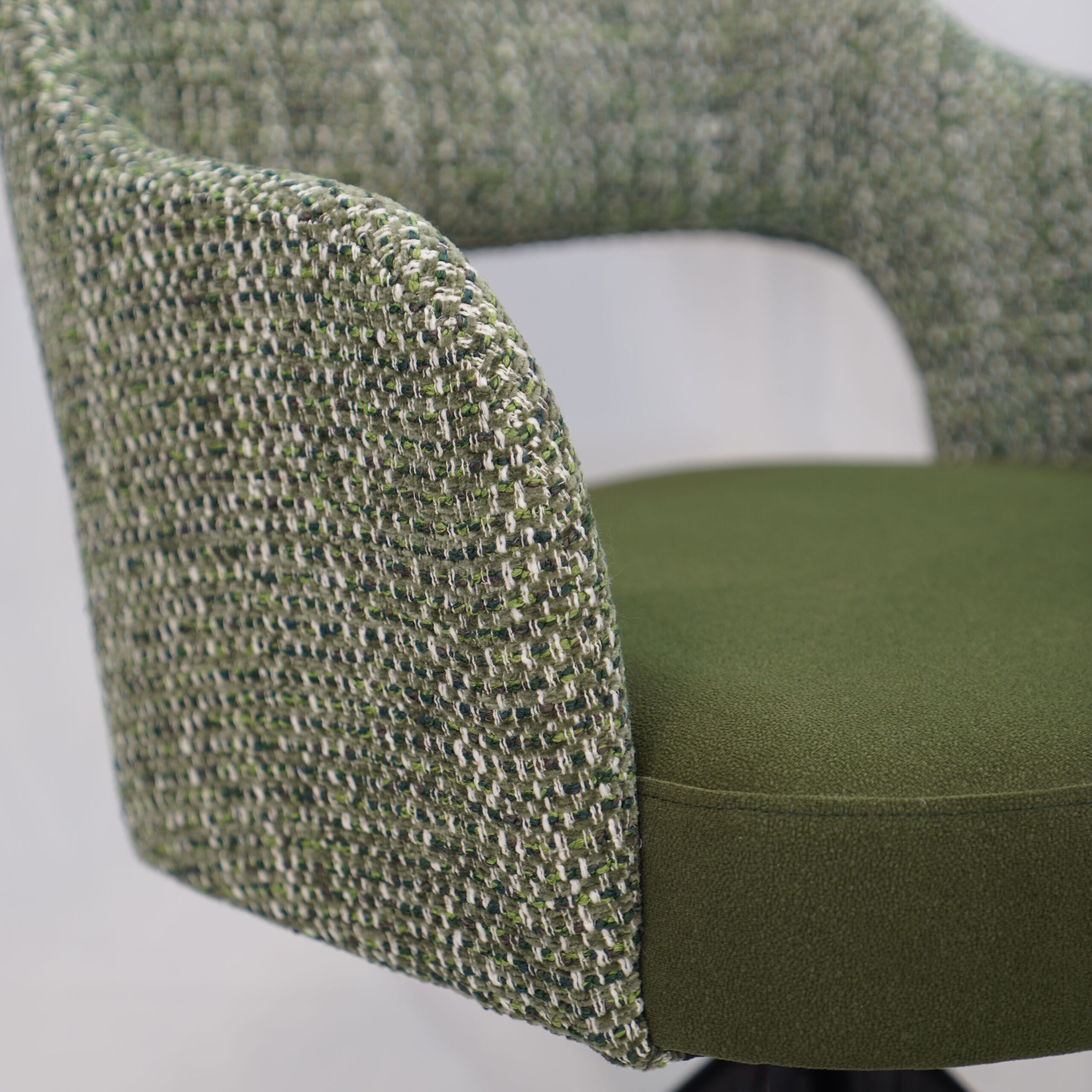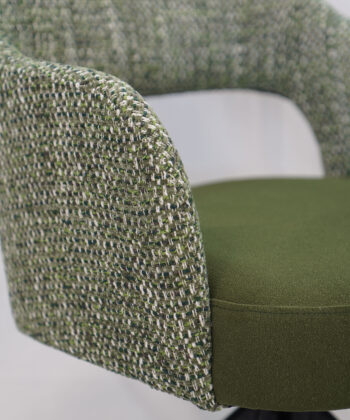 The clean lines and boucle texture suit loft, modernist or classic interiors, elevating PouffeLOVE spaces with professional elegance. Armrests and swivel function make it ideal for offices, hotels or stylish home setups.