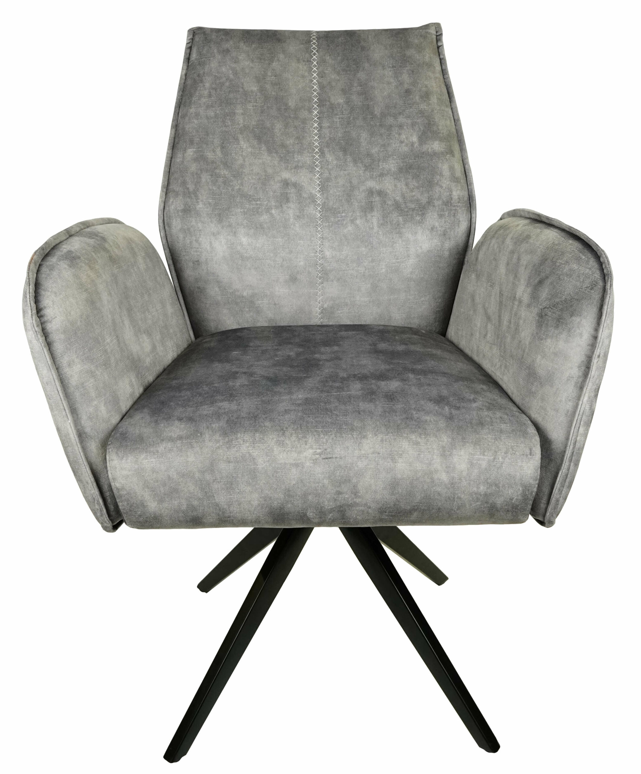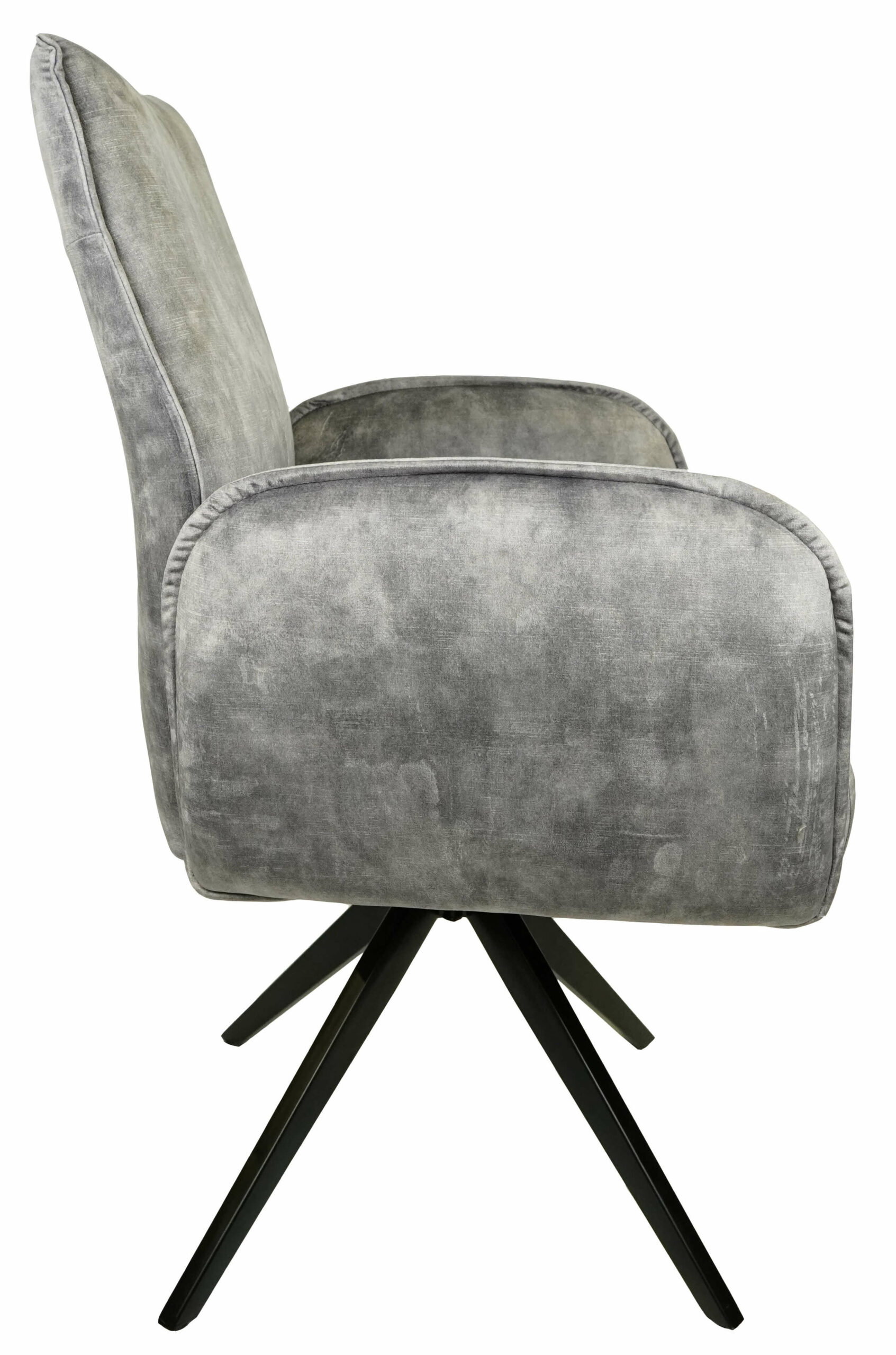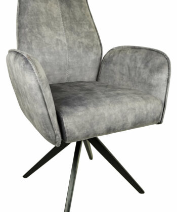 Comfortable padded seat, high backrest and integrated armrests provide relaxed support during long meals, conversations or reading, while the durable black metal base ensures stability and long-lasting use. The 180° swivel seat makes it easy to turn without moving the whole chair, adding everyday convenience around the table or in a cosy corner.