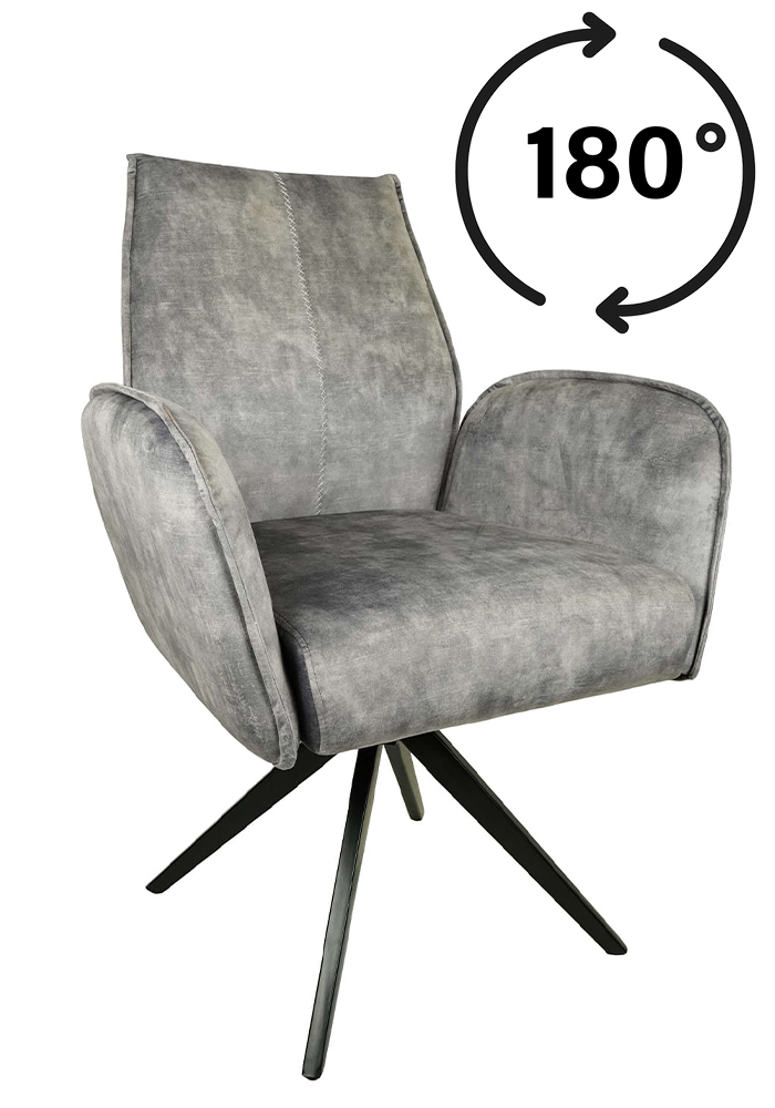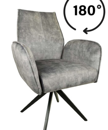 Potsdam Grey Chenille Swivel Armchair with 180° Seat and Black Metal Base
