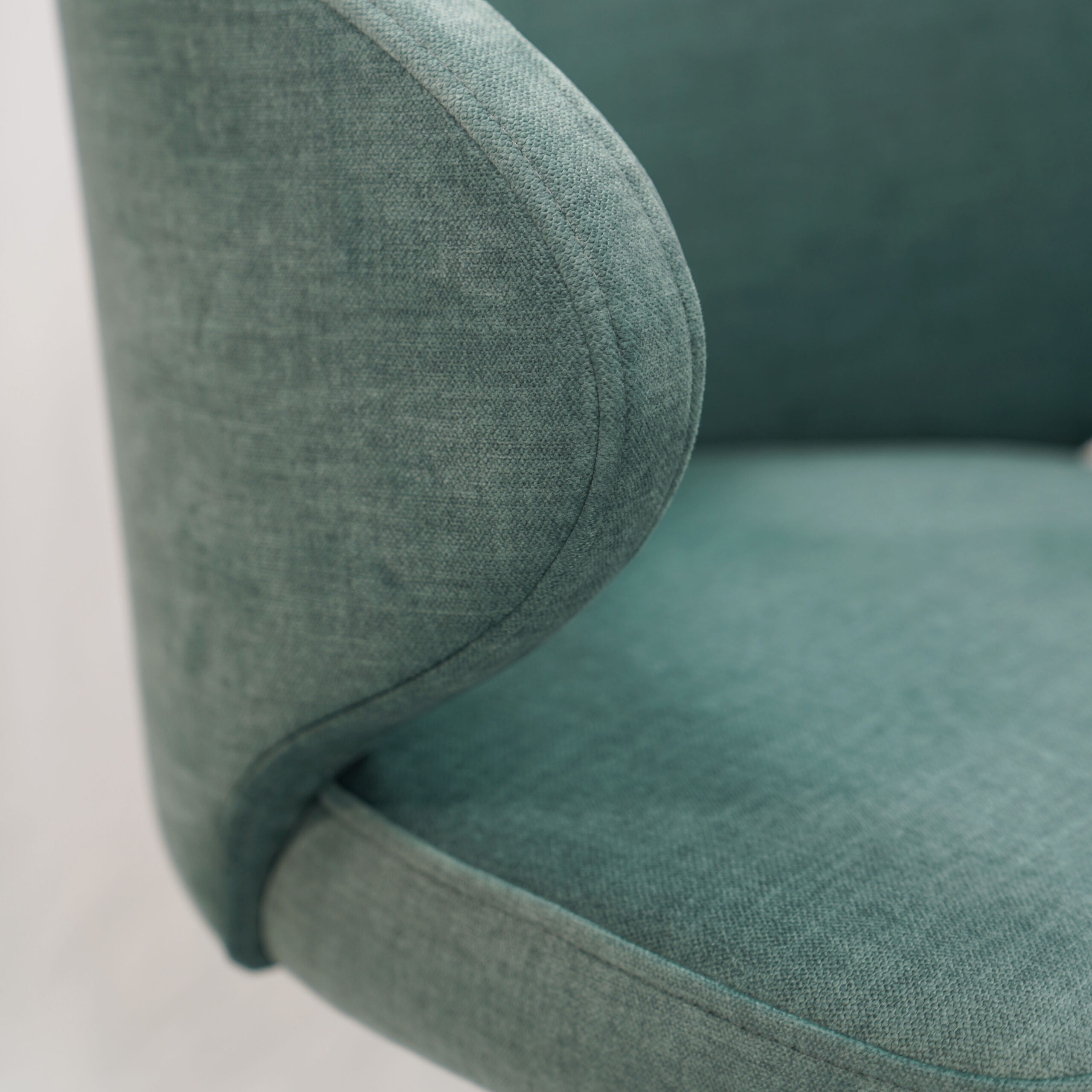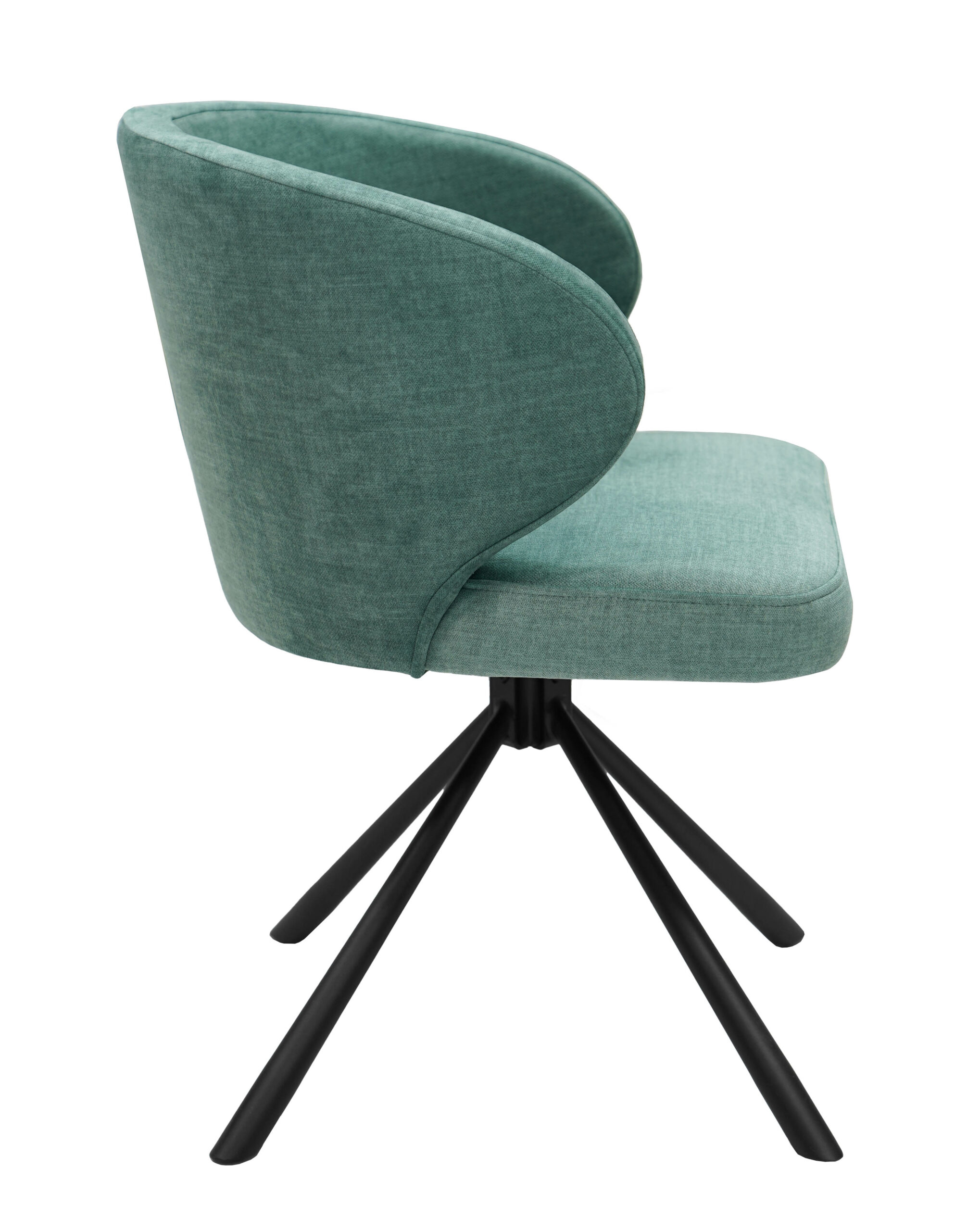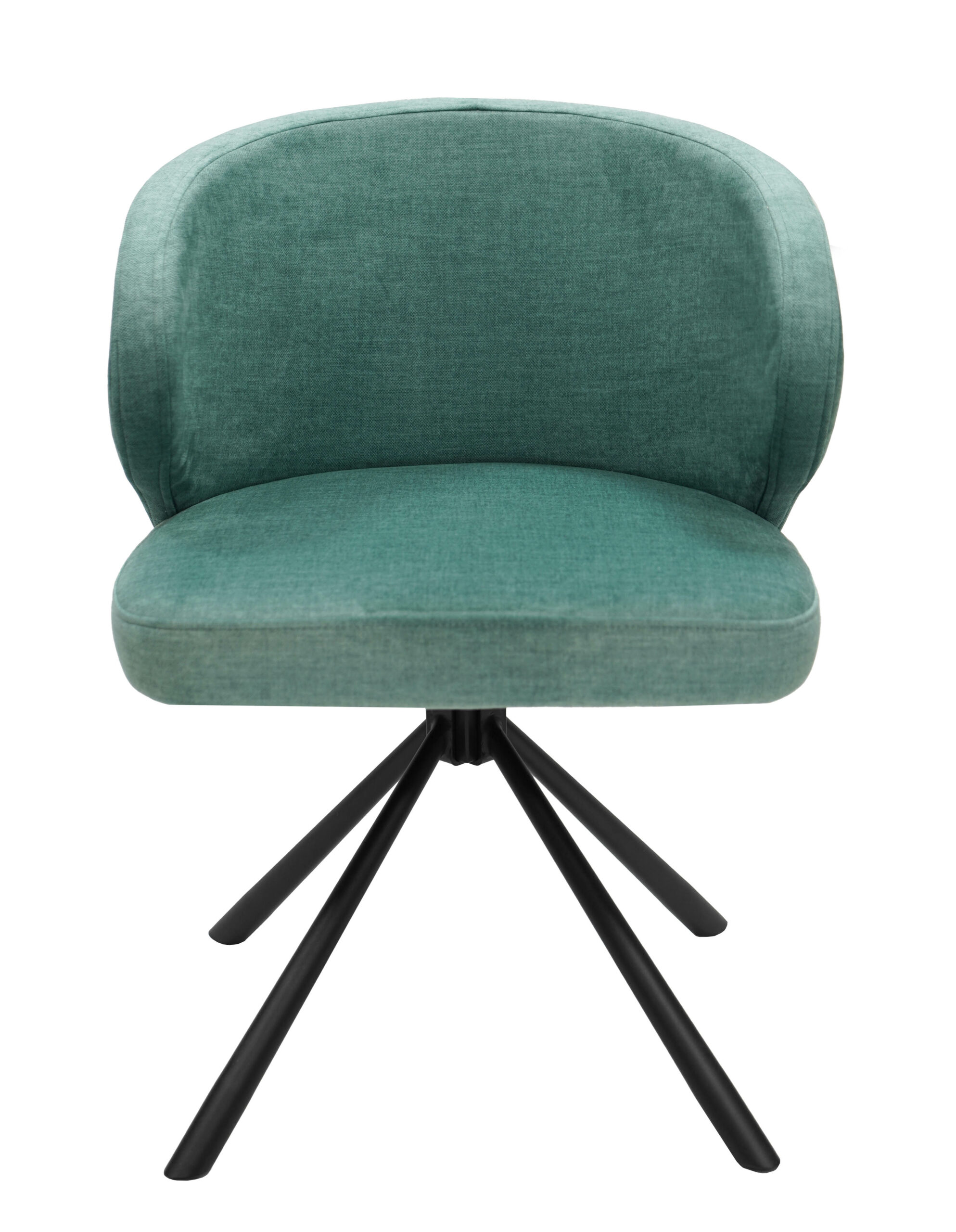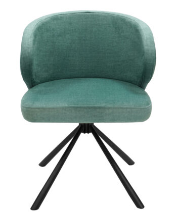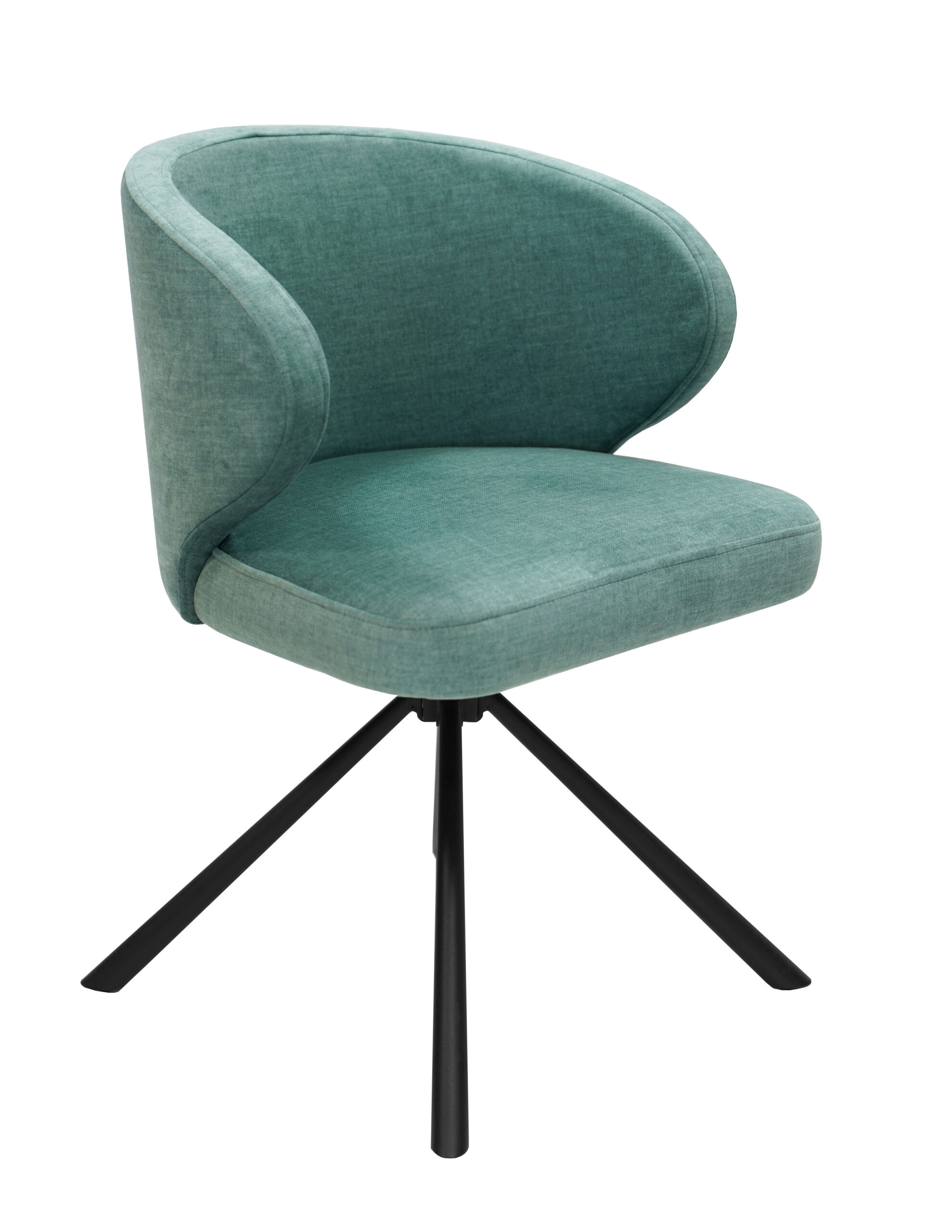 Twist40 Blue Chenille Dining Chair with 180° Auto-Return and Black Metal Base