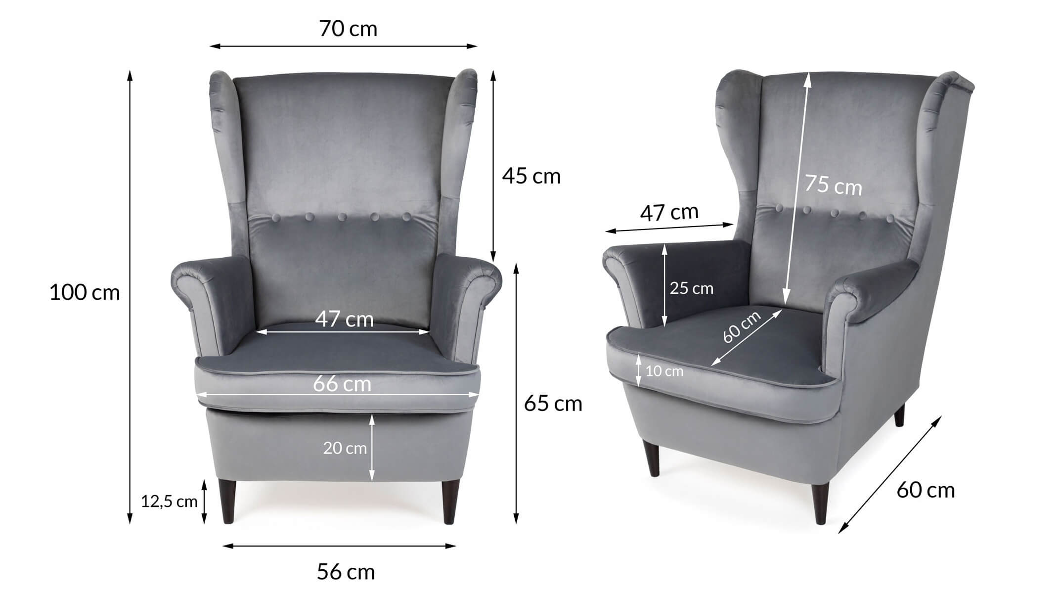 ✓ Seat depth: 60 cm
