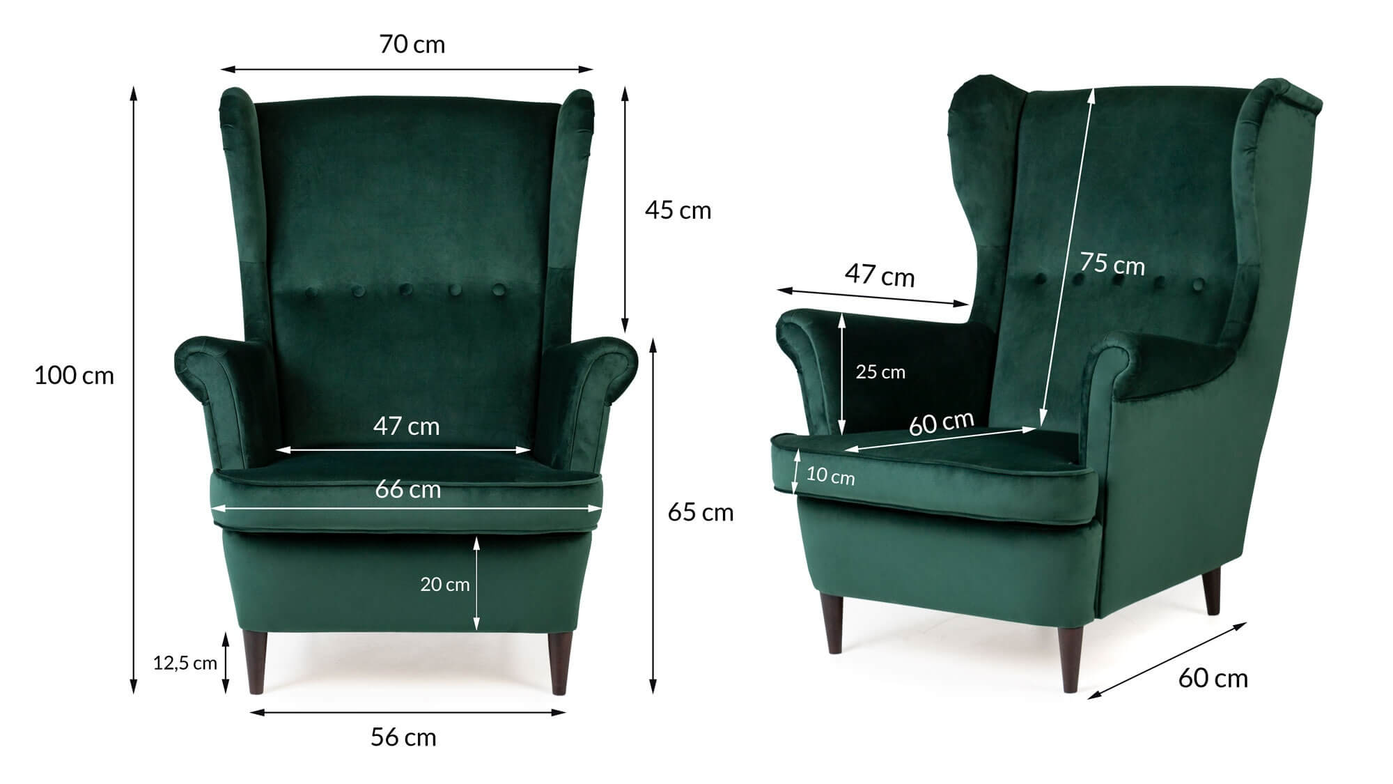 Refined button tufting adds decorative depth while high-density foam ensures supportive comfort for extended lounging, reading or conversation. The enveloping wing design cradles users perfectly during relaxation moments, with generous proportions (60 cm seat depth, 43 cm seat height) accommodating various sitting preferences comfortably. Timeless styling meets premium materials for a heirloom-quality piece.