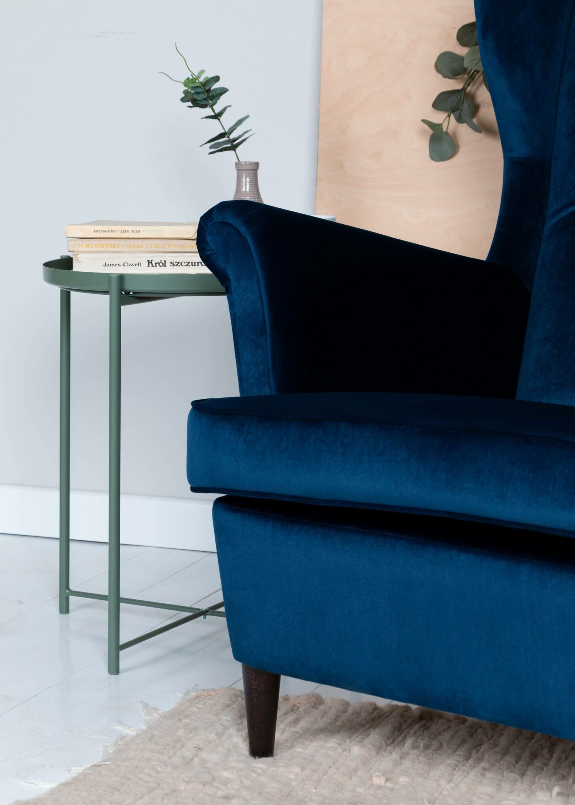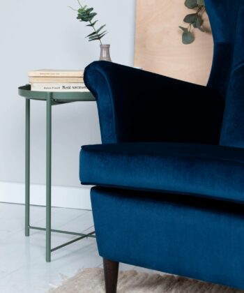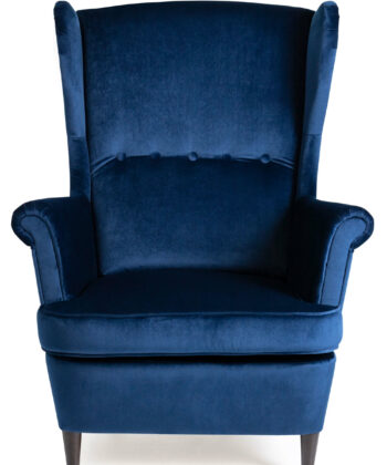 Sapphire Crown Tufted Wingback – Decorative Navy Velvet Uszak Armchair