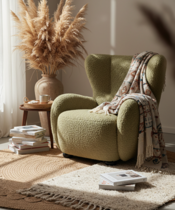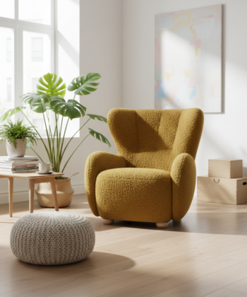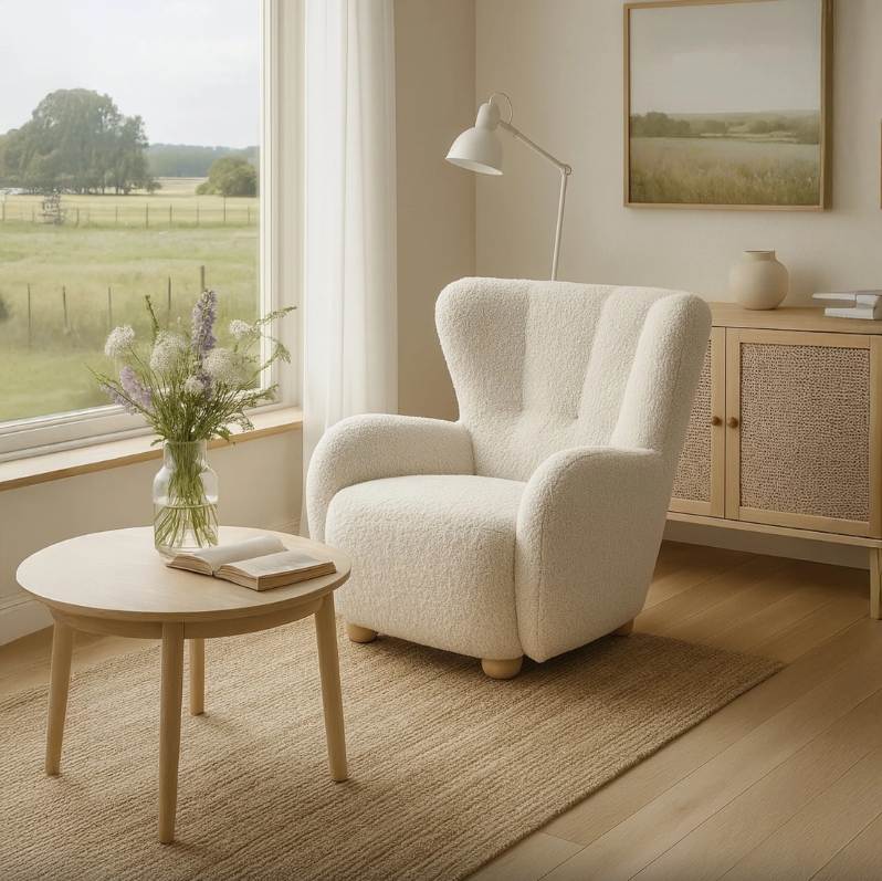 First, discover the Tidepool Bouclé Lounge Chair. This armchair brings organic curves and soft texture to Irish living rooms. It features a wide, ergonomic backrest and generous armrests. The deep seat invites you to relax with a book or cup of tea.