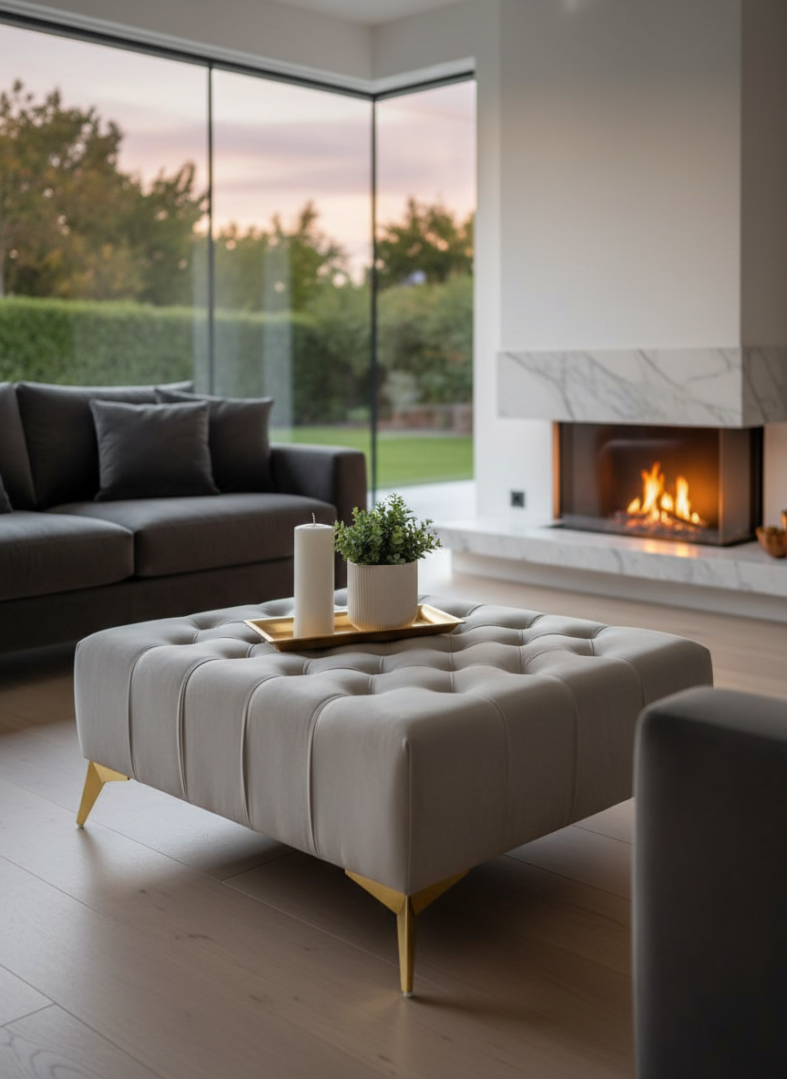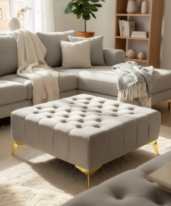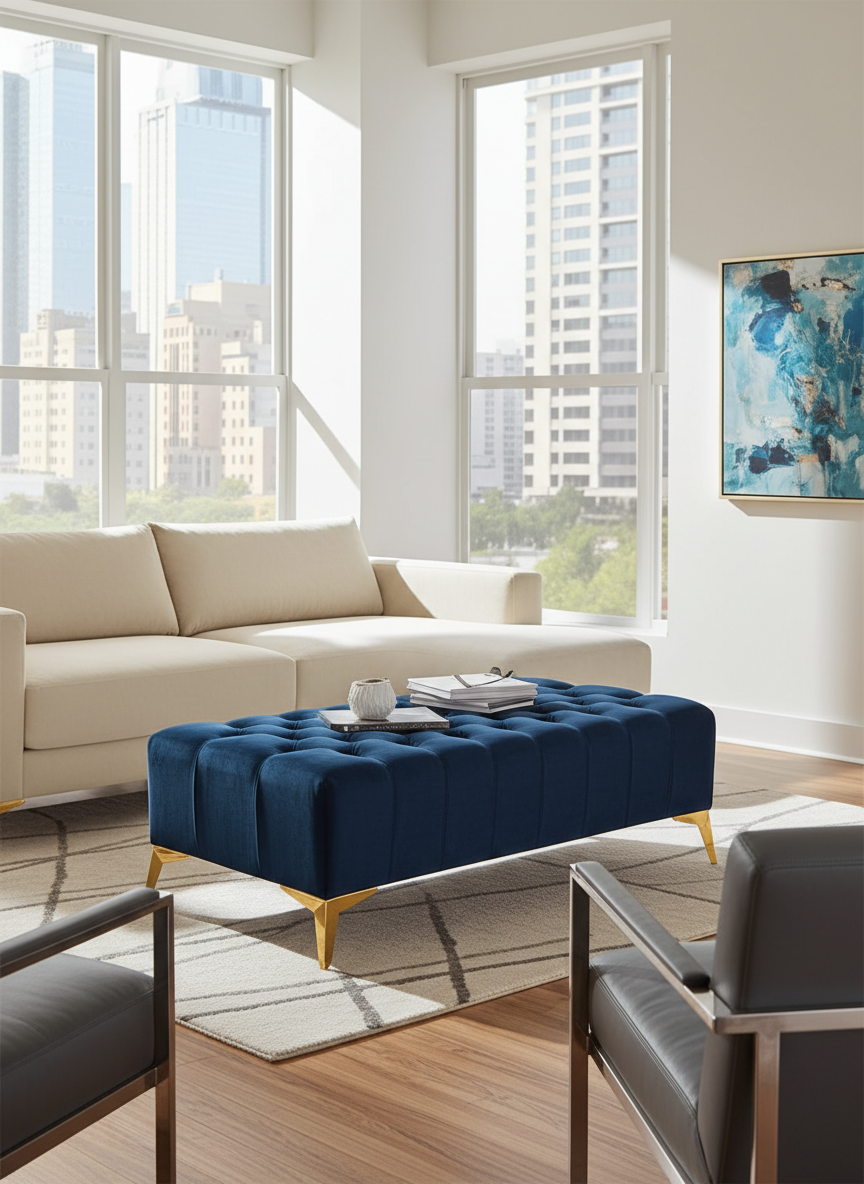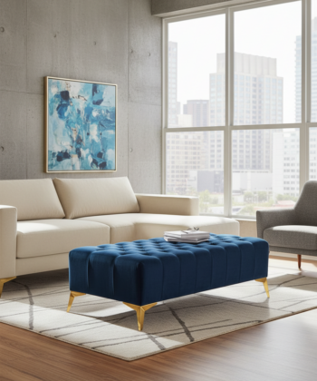 This sophisticated coffee table seamlessly blends traditional and contemporary styles. The classic Chesterfield-inspired tufting adds a touch of elegance, while the tinted glass top introduces a modern element. The contrast between the plush velvet upholstery and the sleek glass surface creates a visually striking piece.The table’s solid base ensures stability and longevity without compromising its overall light appearance. Its versatile design makes it suitable for both traditional and modern interiors, adapting effortlessly to various decor styles.For those seeking a personalized touch, the manufacturer offers customization options, including the ability to adjust the table’s dimensions to suit specific requirements.
