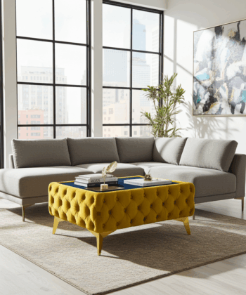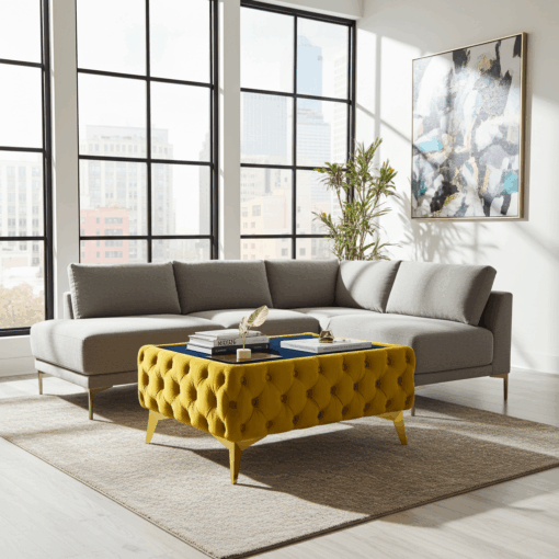 Chester Coffee Table Velvet Yellow Rectangle with Glass