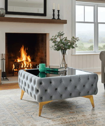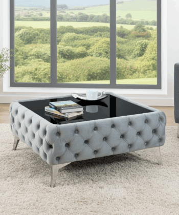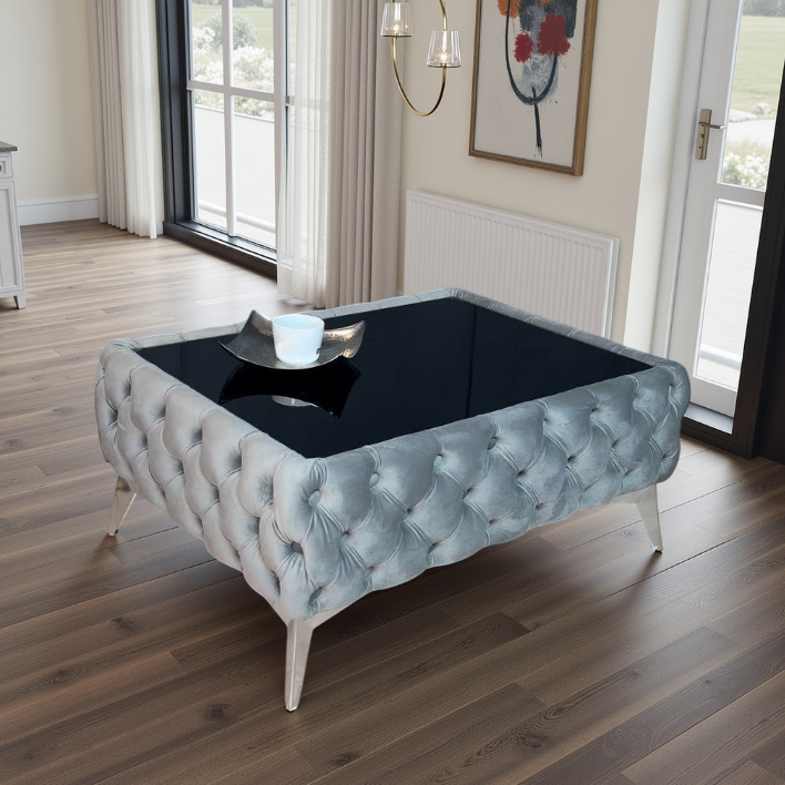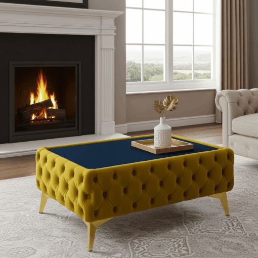 Give your living room a boutique-hotel upgrade with this low-profile Chester Lux coffee table. Deep button tufting wraps the rectangular base in plush velvet, while a dark-tinted safety-glass top adds practical polish. Discreet gold-finish metal legs lift the silhouette just 35 cm off the floor, making it perfect for sectional sofas and relaxed entertaining. Built on a solid internal frame and foam-padded for shape retention, the table blends everyday durability with unmistakable Chesterfield elegance—crafted for style-savvy Irish homes.