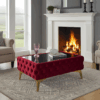 Rectangle Modern Velvet/Eco Leather  Chesterfield Coffee Table – Glass Top, Tufted Design, 103x63x45 cm, Gold Legs
