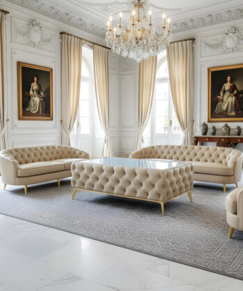 ✅ Materials: Velvet, glass, metal, wood