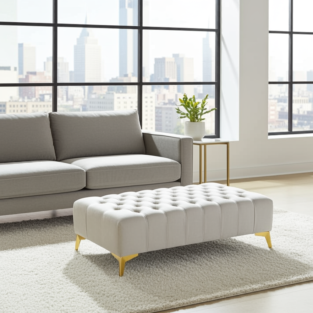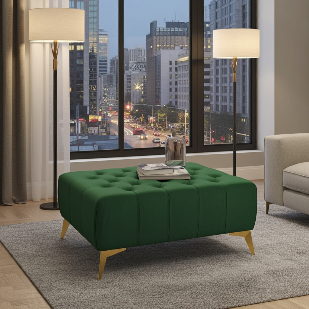 Velvet Chesterfield Lux Coffee Table – Elegant Rectangle, Tufted, 60x80x38 cm, Gold Legs
