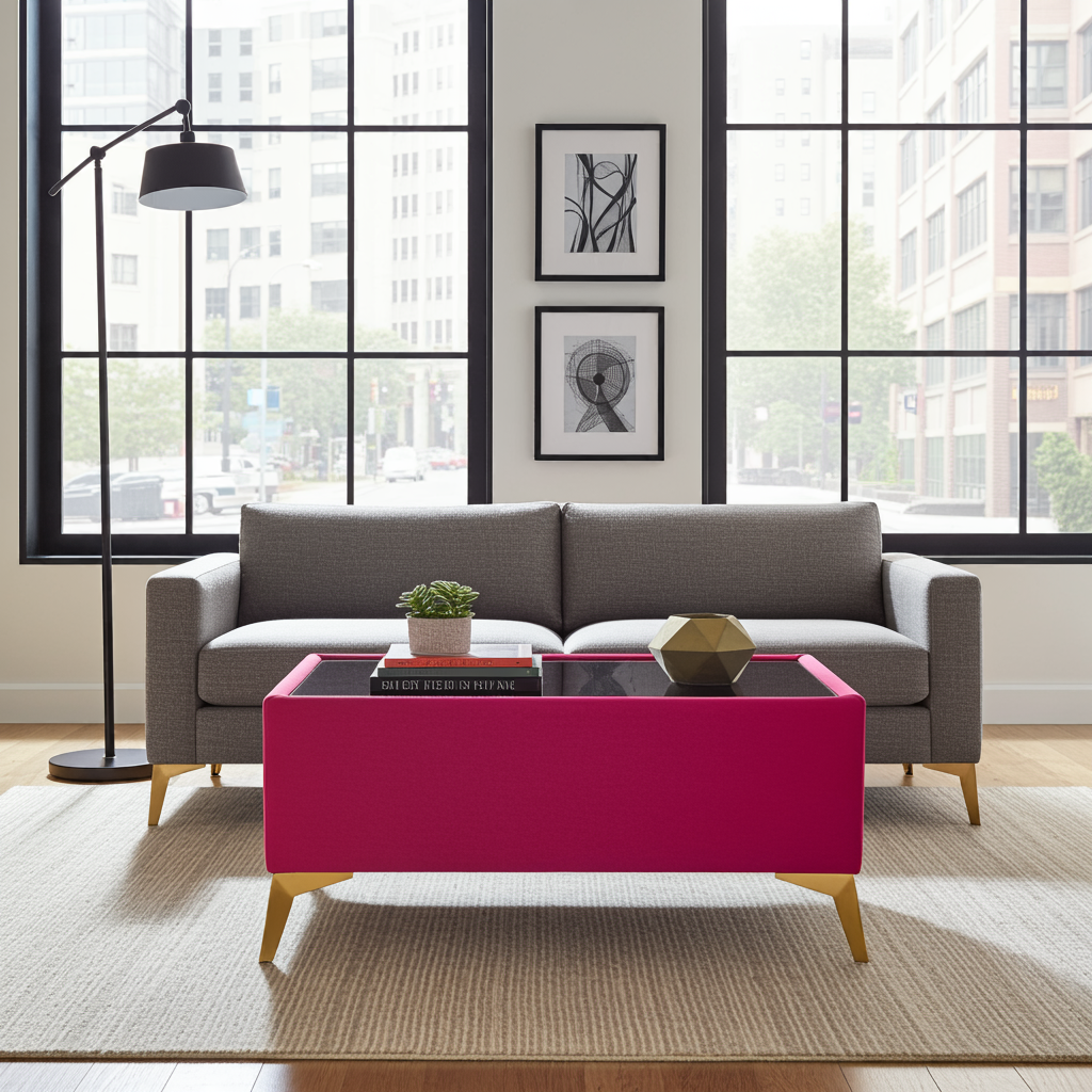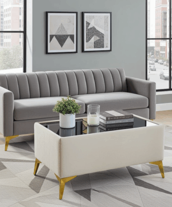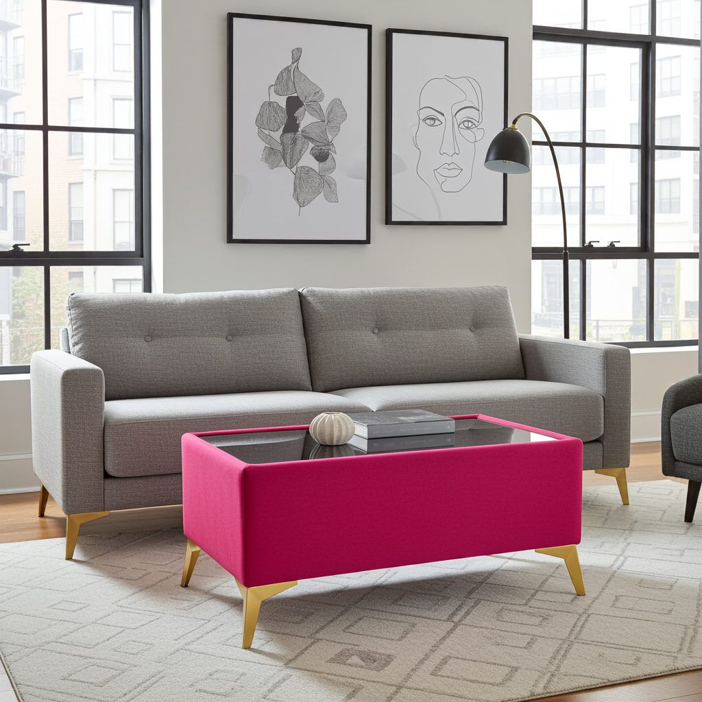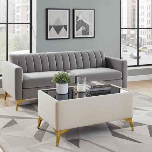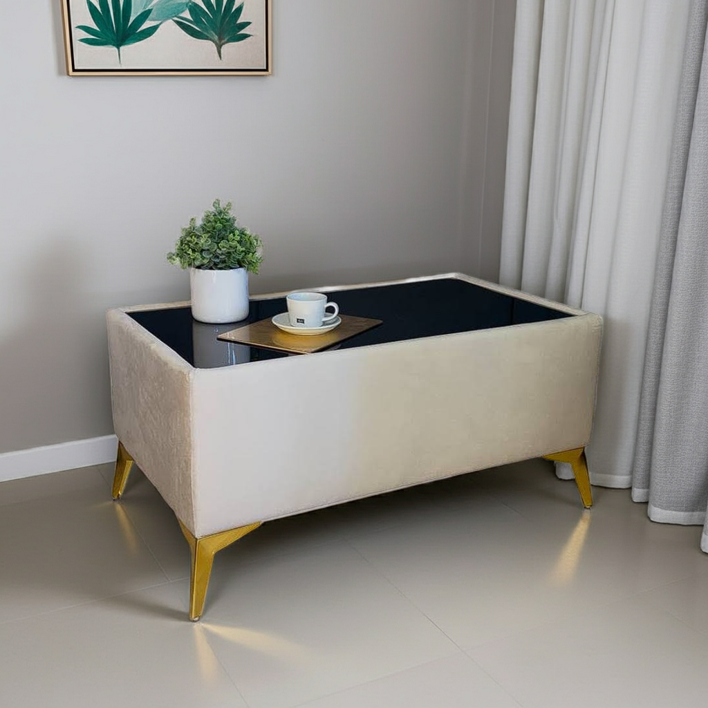 Velvet Coffee Table – Custom Colours, Glass Top, Metal Legs