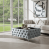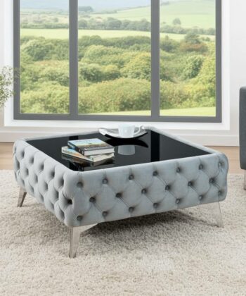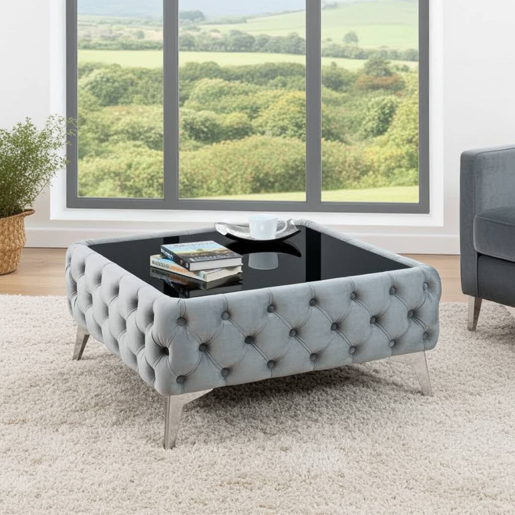 Chester Lux Coffee Table Velvet Grey Rectangle 83x63x35cm with Glass