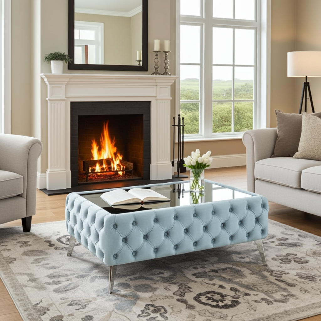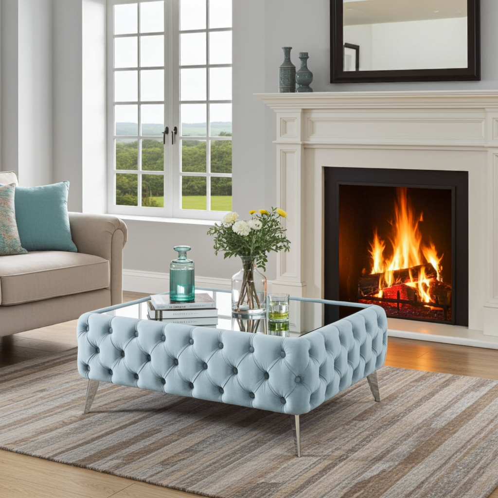 ✅ Materials: Velvet, glass, metal, wood