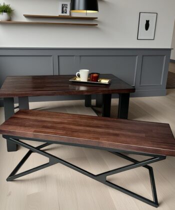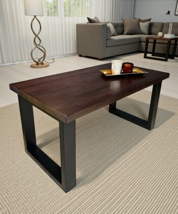 Handcrafted Coffee Table with Solid Beech or Ash Wood Top, Powder-Coated Metal Legs, 110×60 cm – Industrial Modern Living Room Furniture Ireland