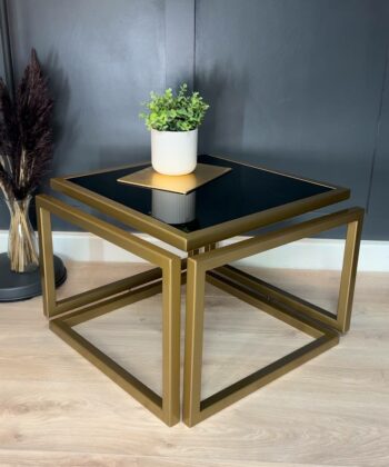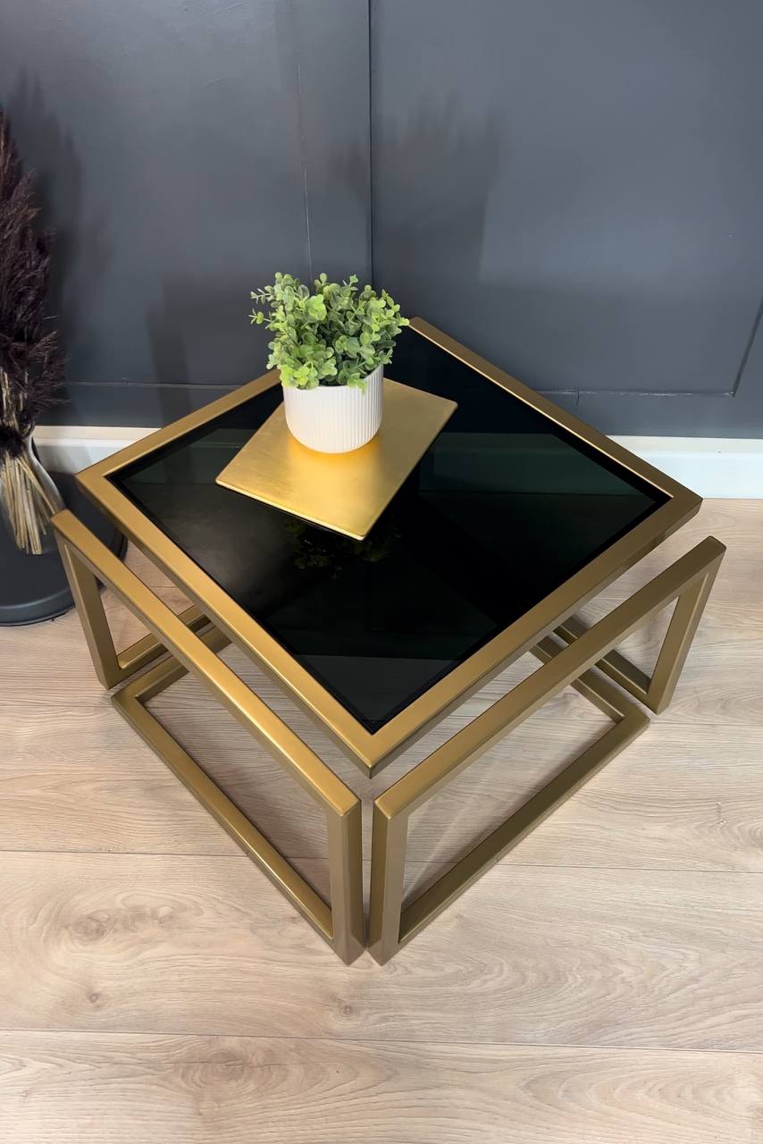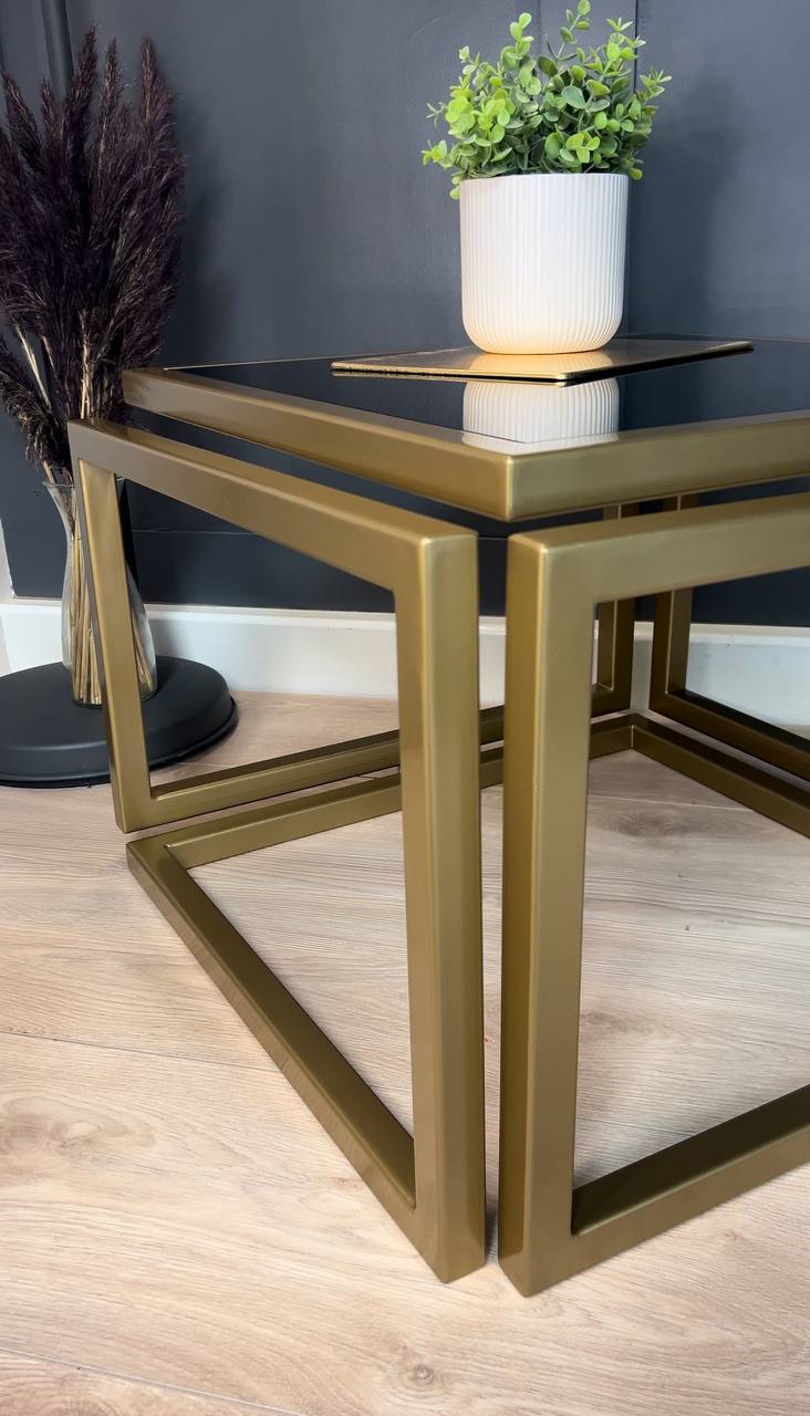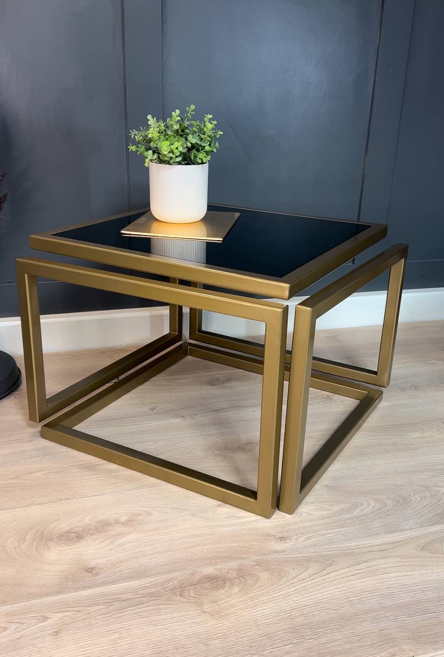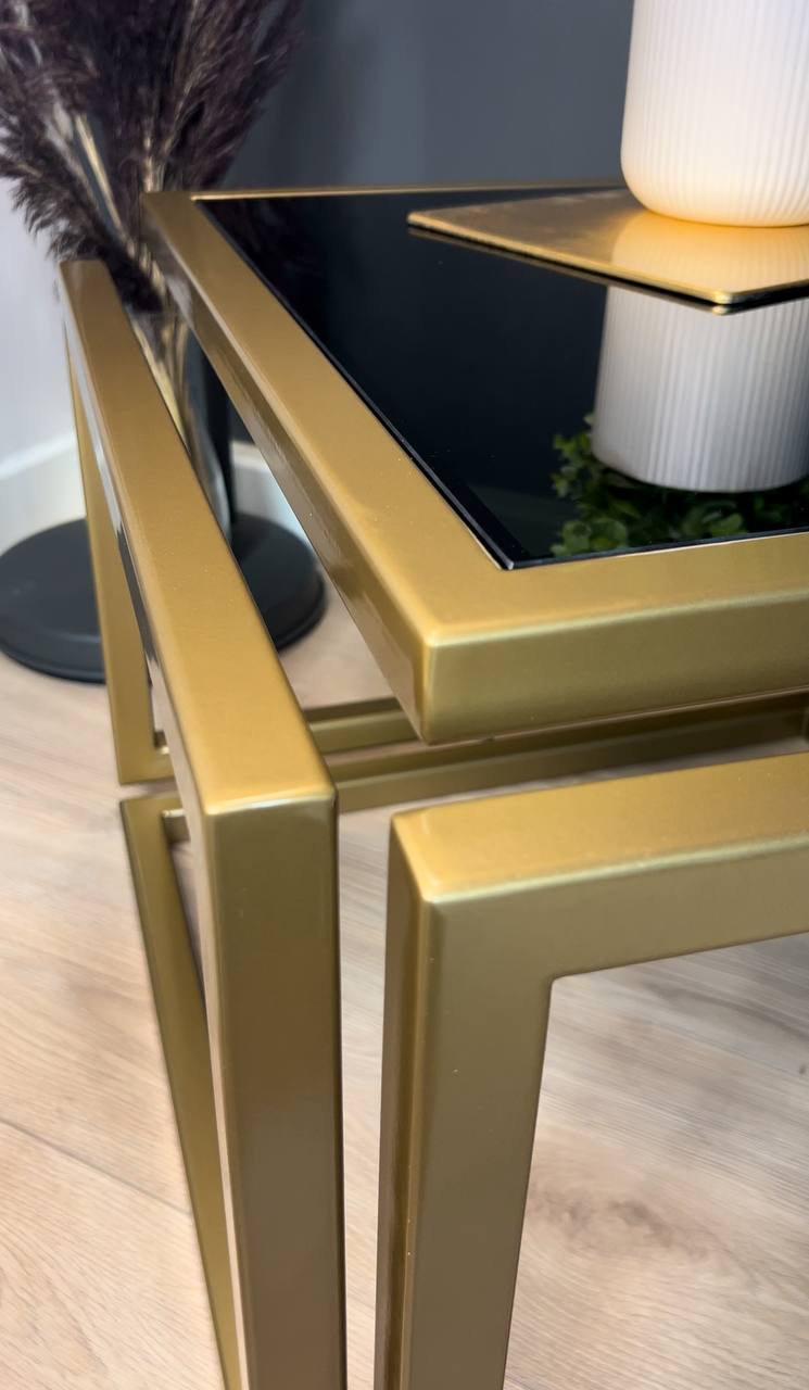 Introduce striking elegance to a living room with the Levitas Gold Coffee Table, a minimalist piece that appears to float thanks to its seamless 30 mm steel profile and hidden joins. The old‑gold, powder‑coated frame brings warm luxury, while the dark‑tinted tempered glass adds depth and a refined, contemporary edge.