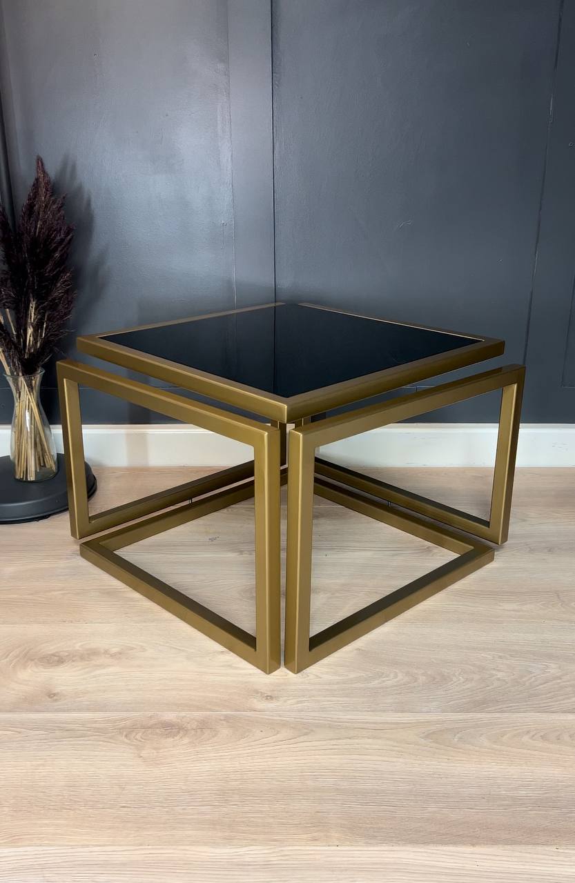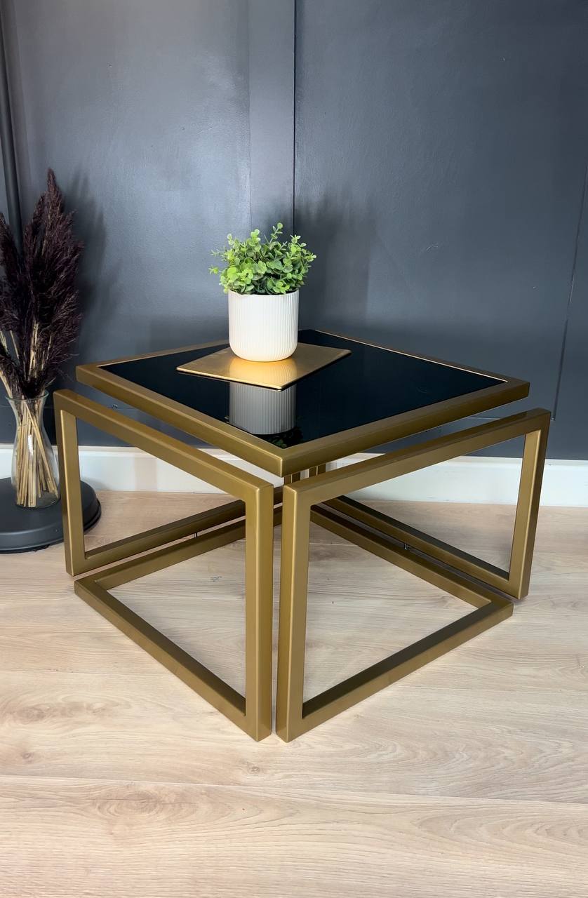 The square 60×60 cm top sits at a comfortable 45 cm height for everyday use. Because the construction is screw‑free and fully seamless, the silhouette stays clean from every angle, and maintenance remains simple. The powder coating resists scratches, and the tempered glass is durable for daily living.