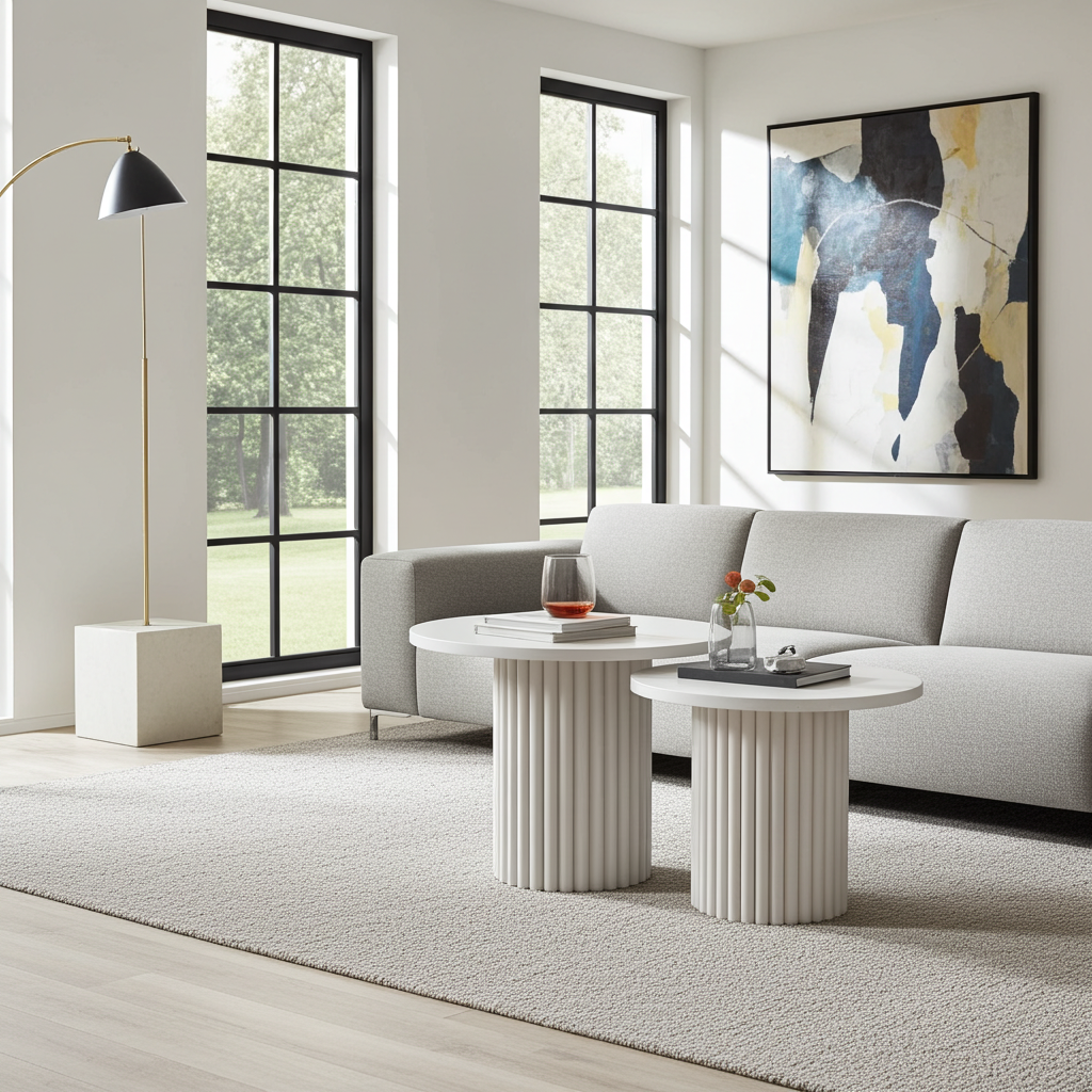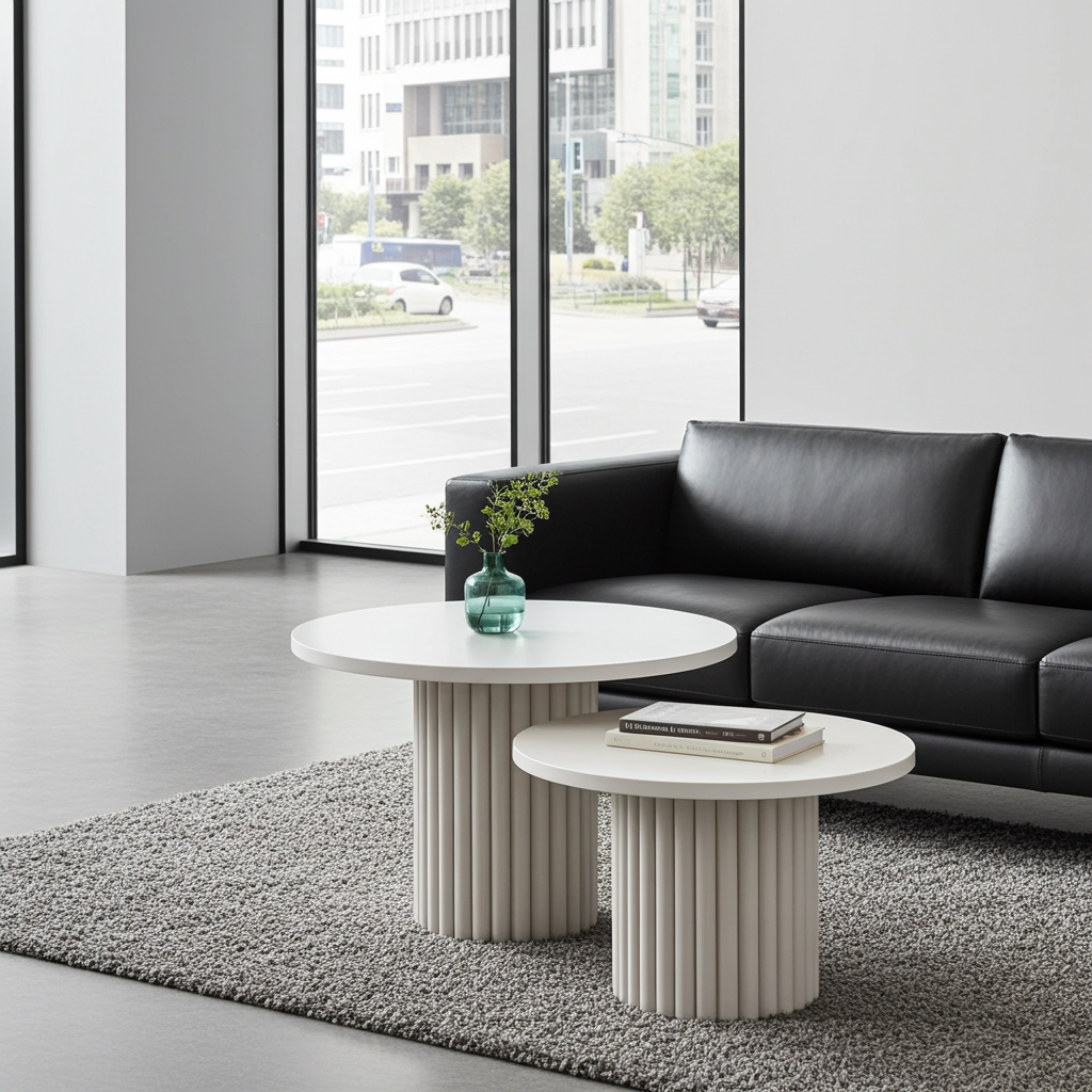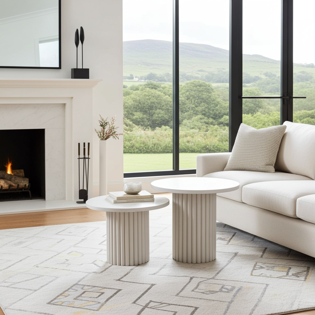 Modo Cashmere Ribbed Coffee Table Set – Contemporary Sculptural Chic for Modern Interiors