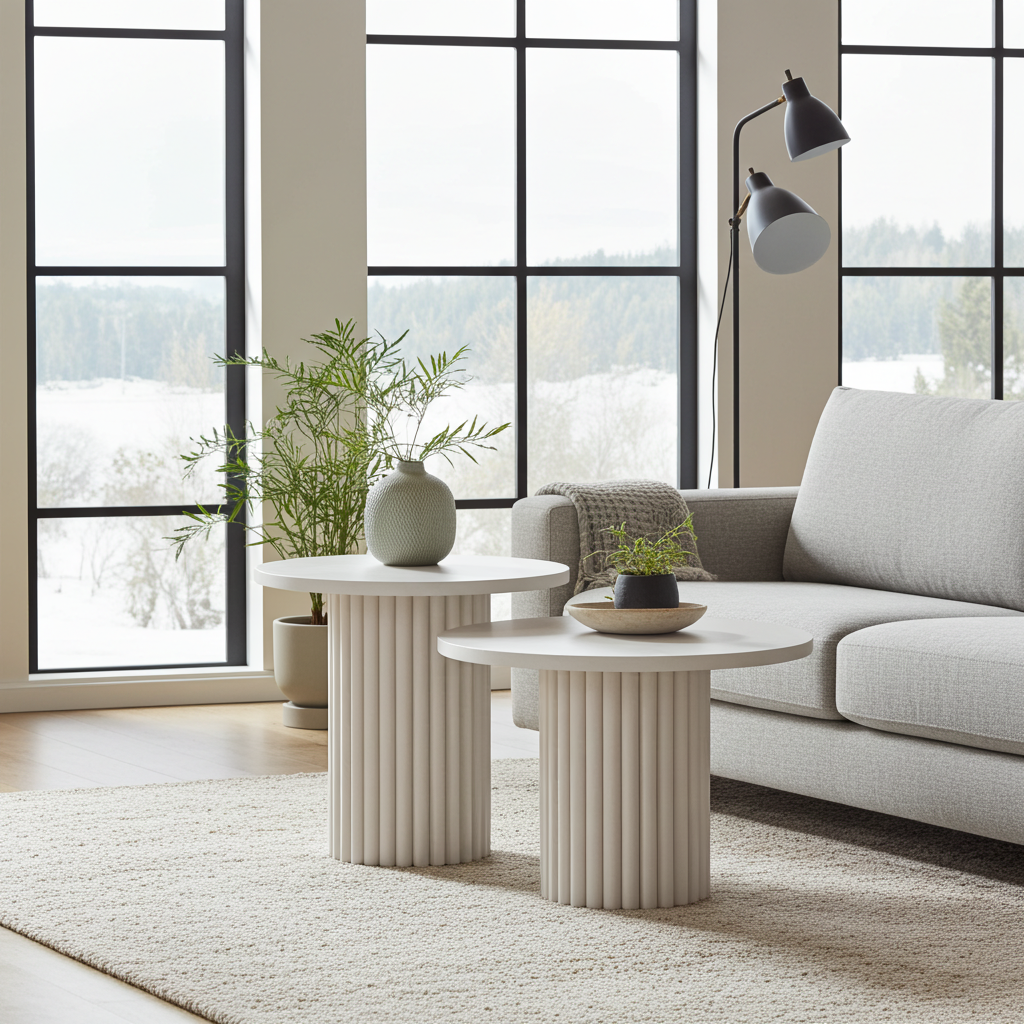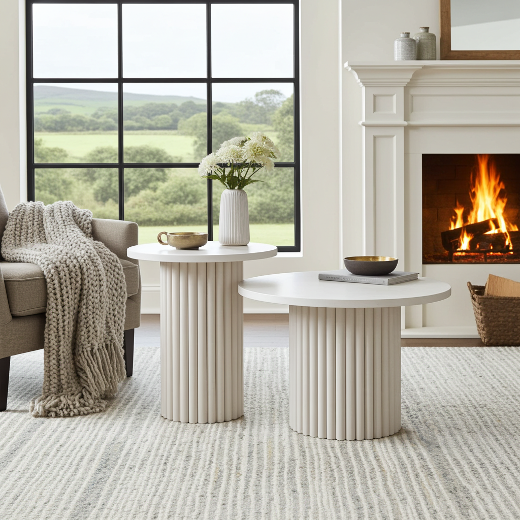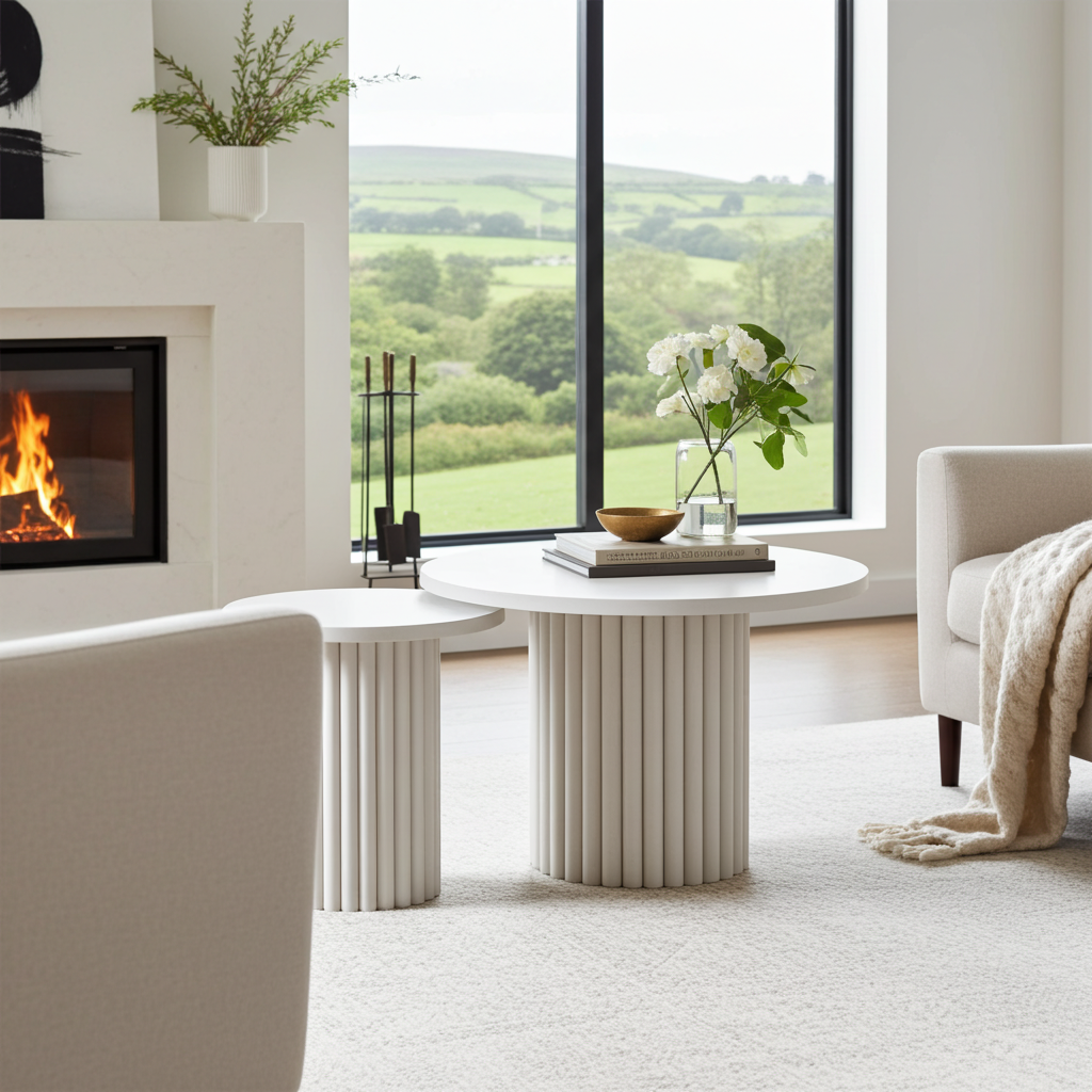 Modo Cashmere Ribbed Coffee Table Set – Contemporary Sculptural Chic for Modern Interiors