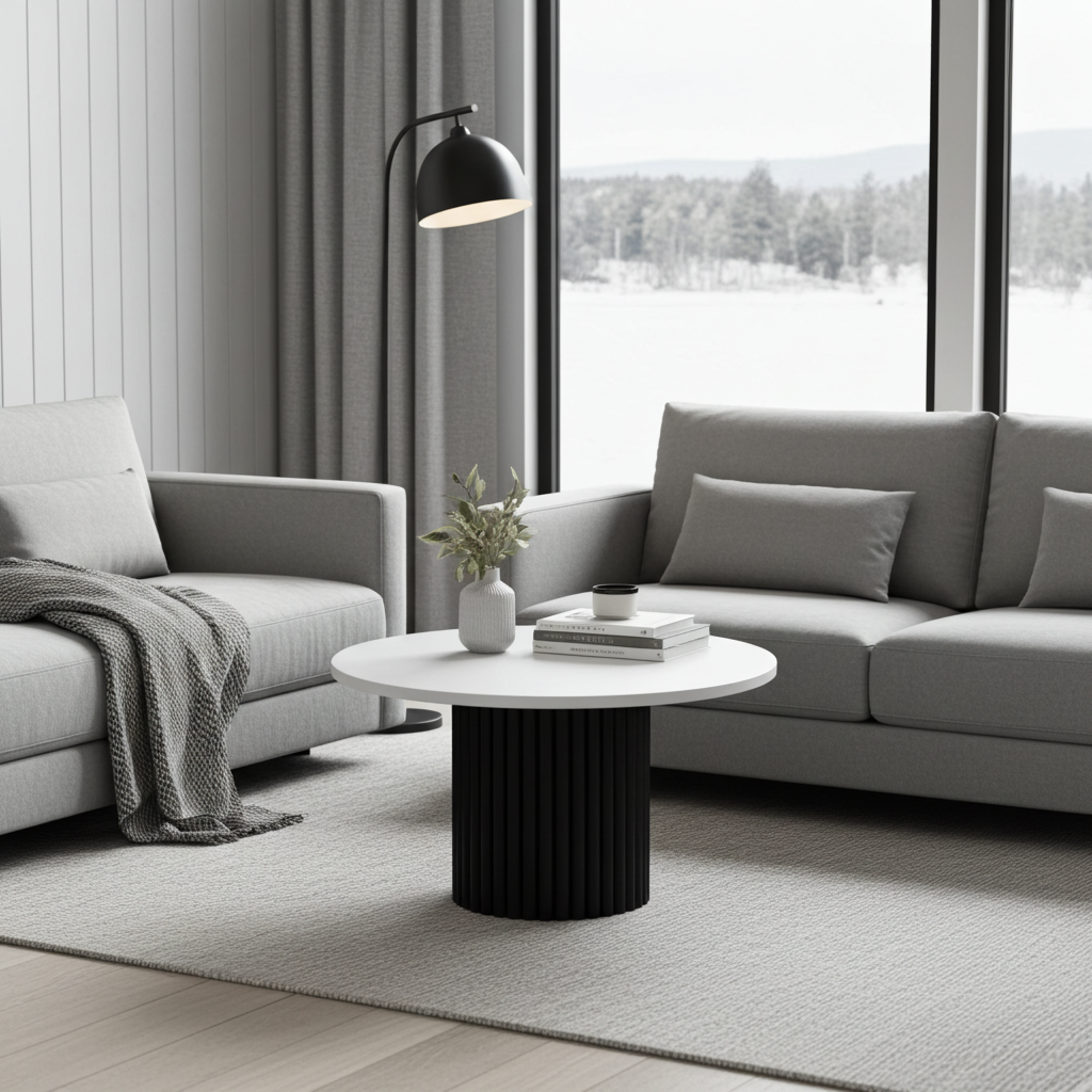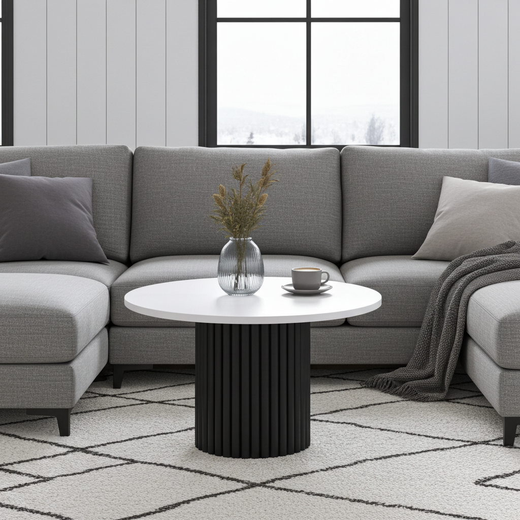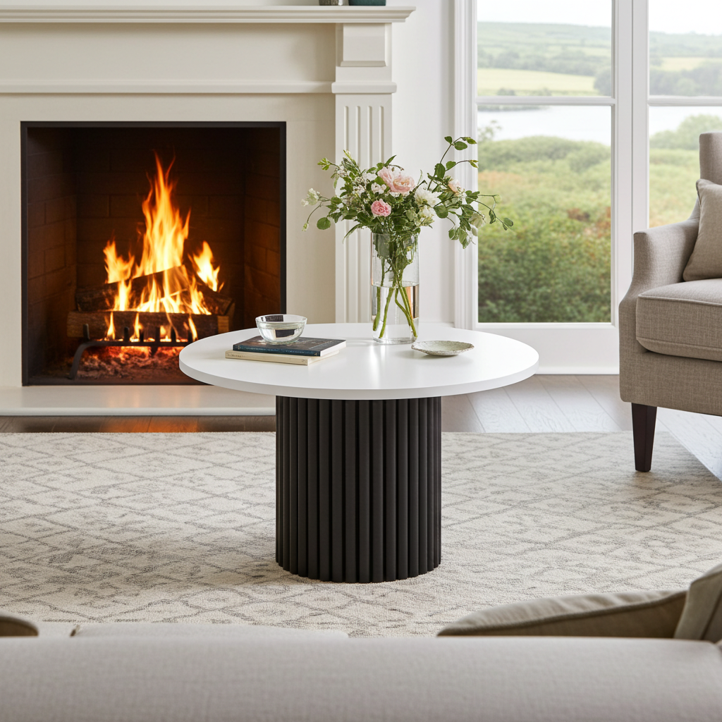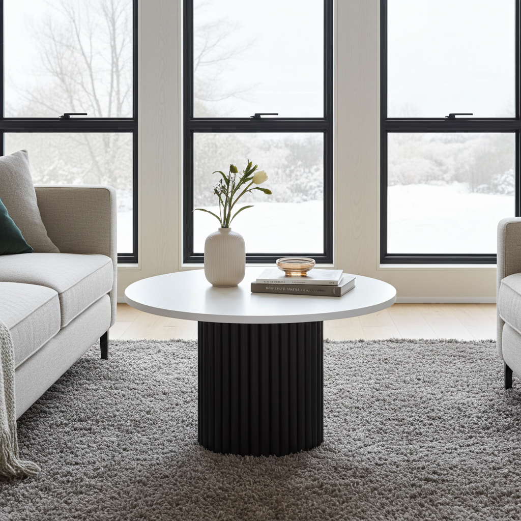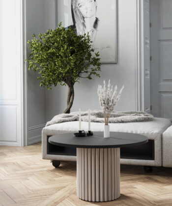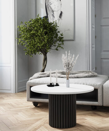 We designed the Luna coffee table for both its looks and its resilience. For instance, we make the round top from a durable 18 mm thick laminated board, which makes it resistant to daily wear and tear. Moreover, the table’s standout feature is its bold black fluted pedestal base. This provides excellent stability and also adds a sophisticated, architectural element to the design.