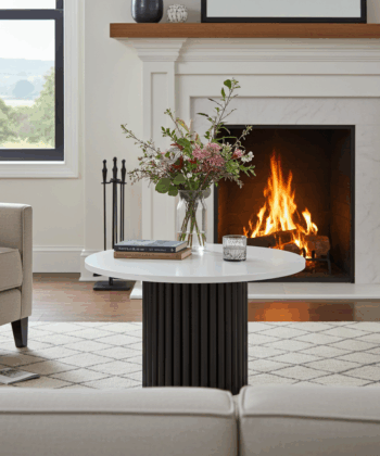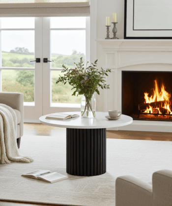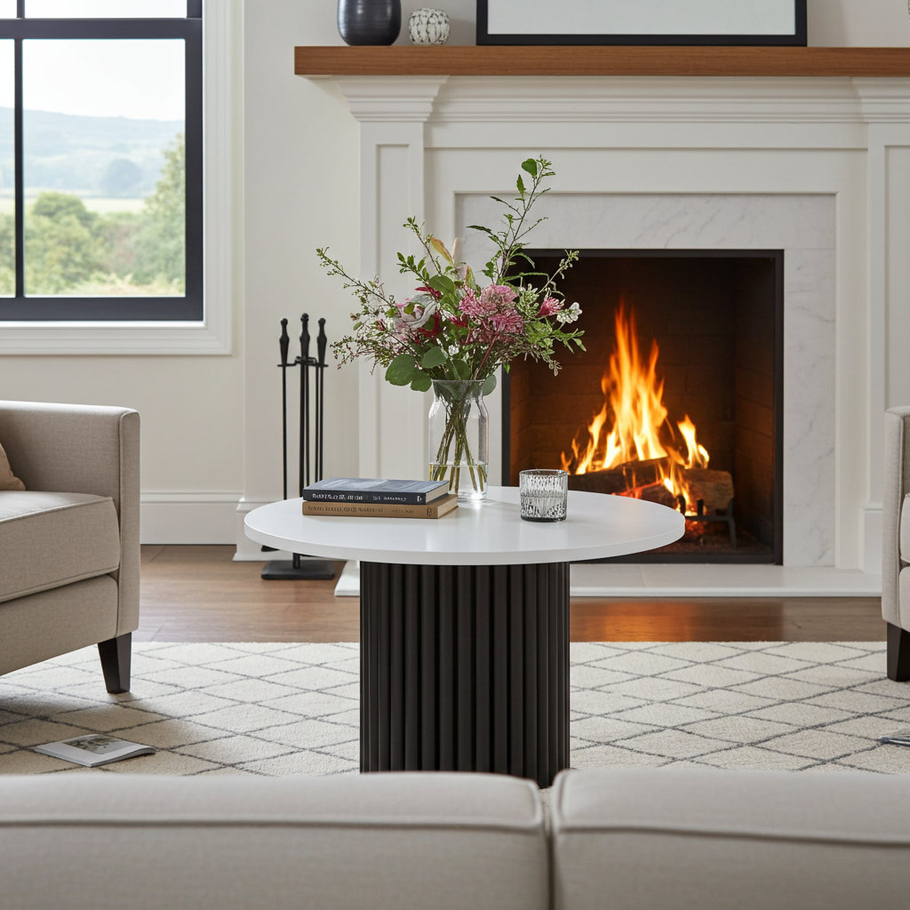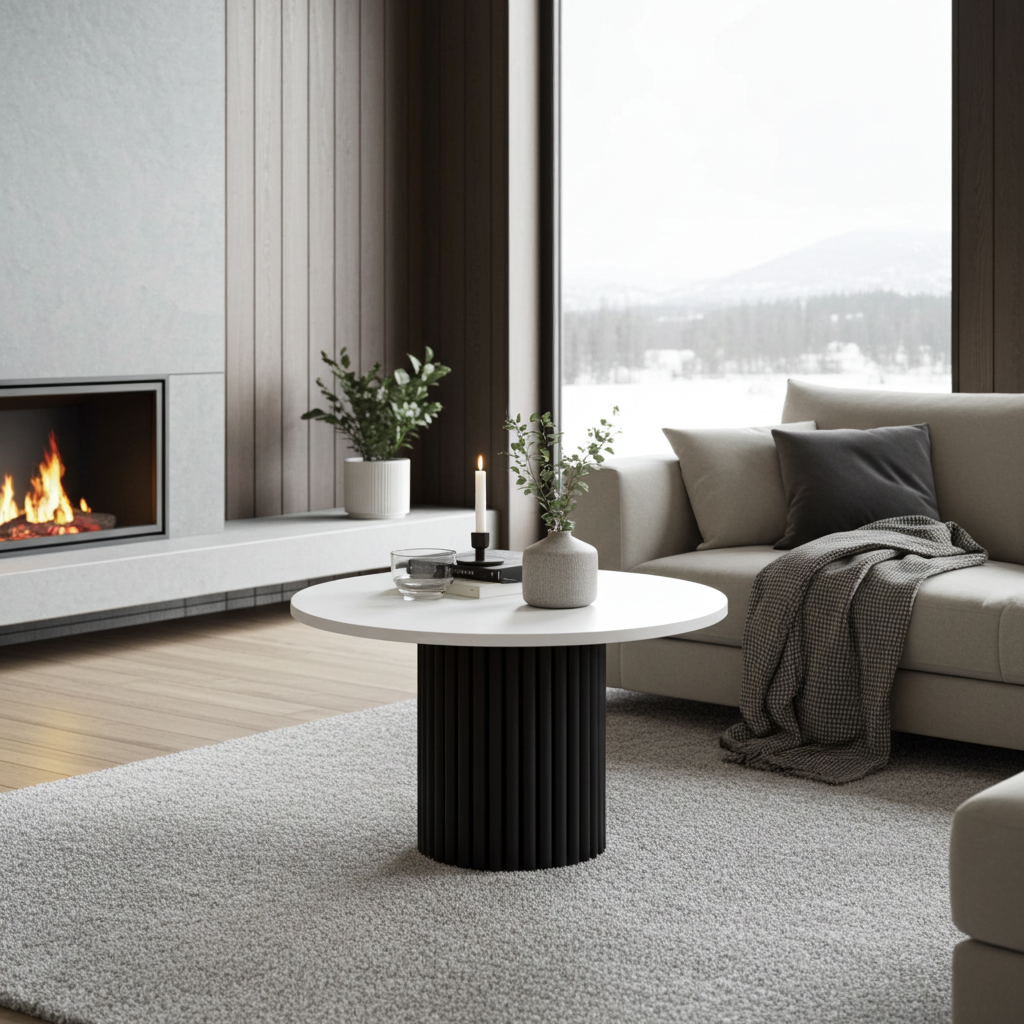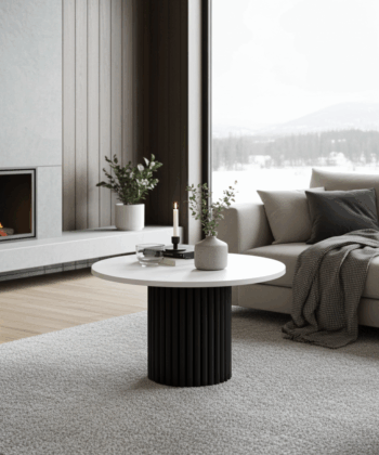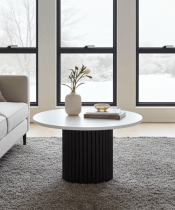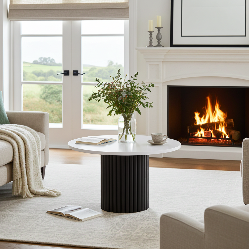 We designed the Luna coffee table for both its looks and its resilience. For instance, we make the round top from a durable 18 mm thick laminated board, which makes it resistant to daily wear and tear. Moreover, the table’s standout feature is its bold black fluted pedestal base. This provides excellent stability and also adds a sophisticated, architectural element to the design.