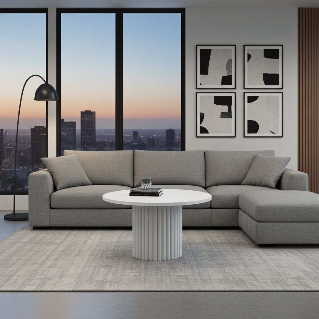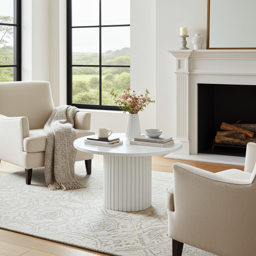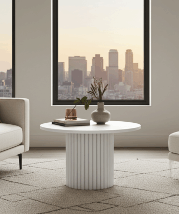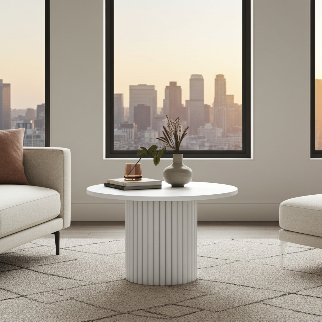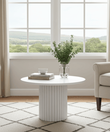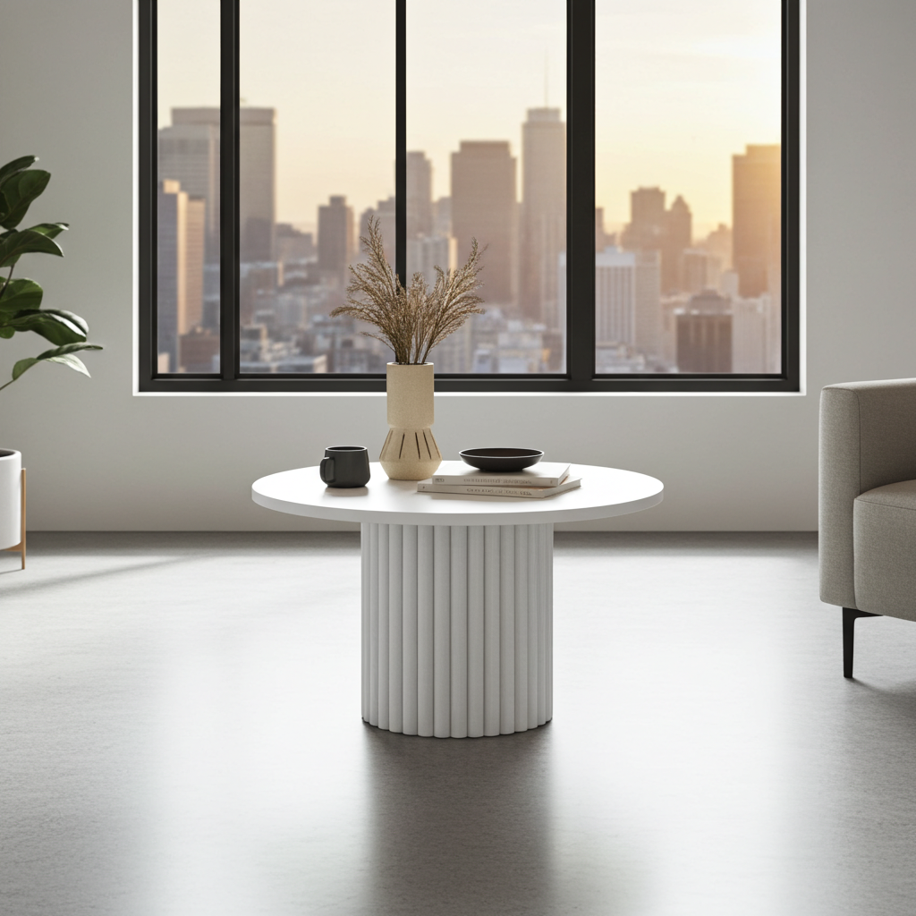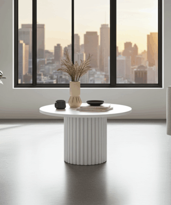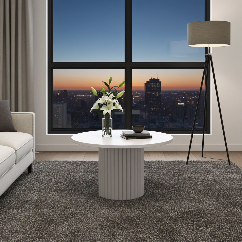The Luna coffee table is designed not just for its looks but also for its resilience. For instance, the round top is made from a durable 18 mm thick laminated board. This makes it resistant to daily wear and tear. The table’s standout feature is its fluted pedestal base. This provides excellent stability and adds a sophisticated, architectural element to the design.