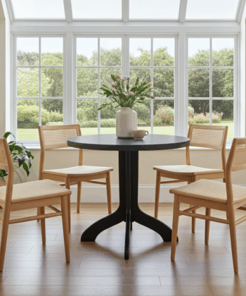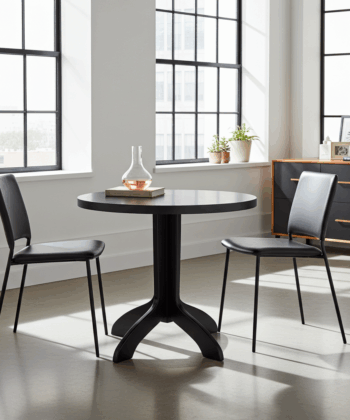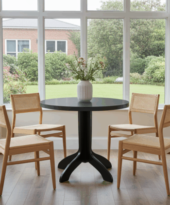 This round pedestal table is designed for compact interiors where every centimetre matters.