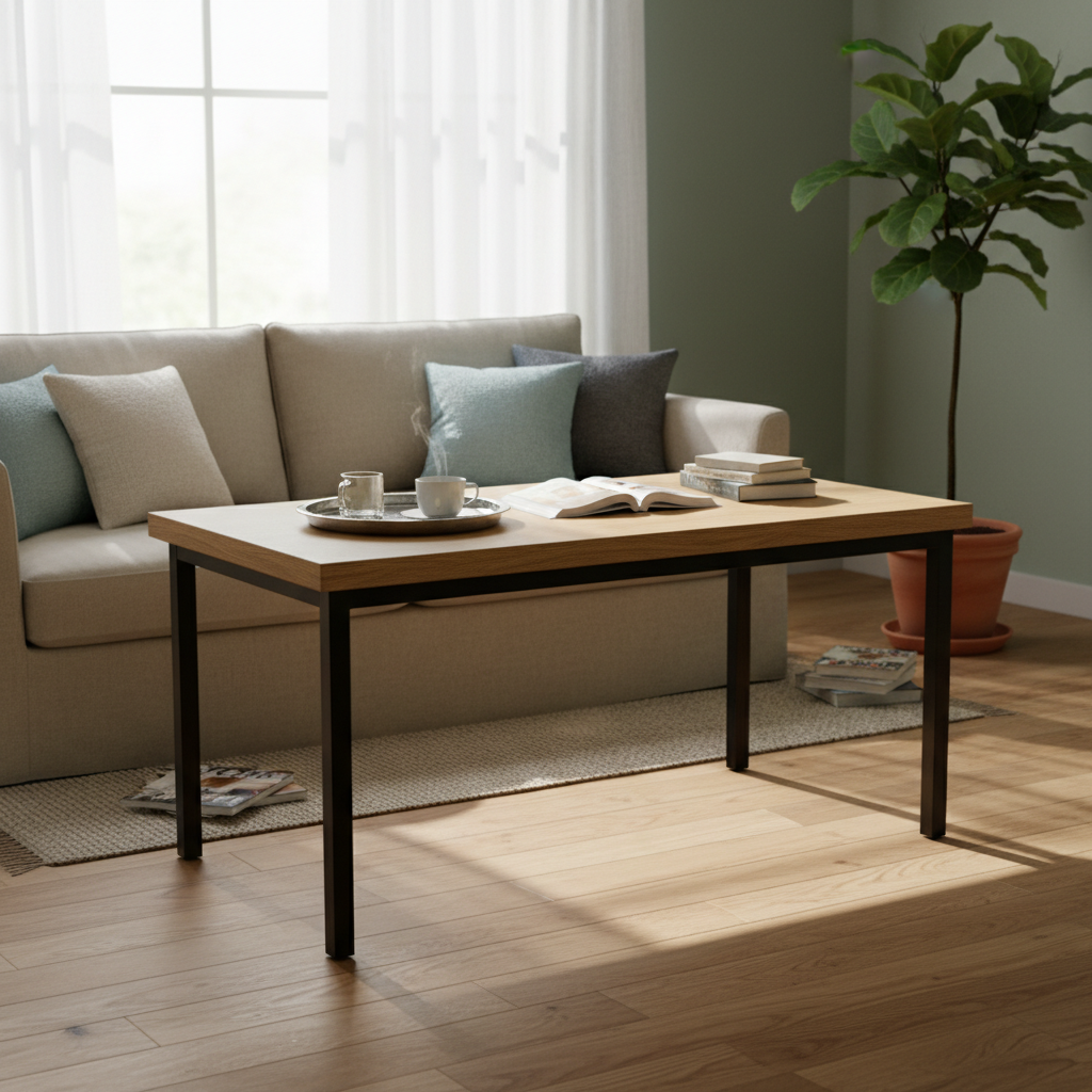 The Wotan Forge Coffee Table delivers authentic industrial loft style to Irish homes with its warm Wotan oak laminated rectangular top resting on striking black powder-coated metal legs featuring unique geometric design. Perfect for Dublin living rooms, Cork loft apartments and Galway modern interiors, this spacious 110x60cm coffee table (45cm height) creates the ideal surface for coffee mornings, family game nights or stylish remote work setups.