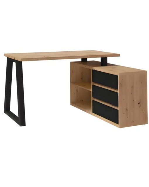 The Iga II set combines a spacious corner desk with a matching storage cabinet to build a tidy home office quickly and affordably. Moreover, the artisan oak finish warms modern interiors, while black accents add a clean, contemporary edge that pairs well with most décor. Because both pieces use durable laminated chipboard and careful detailing, the set remains easy to clean and ready for everyday work.