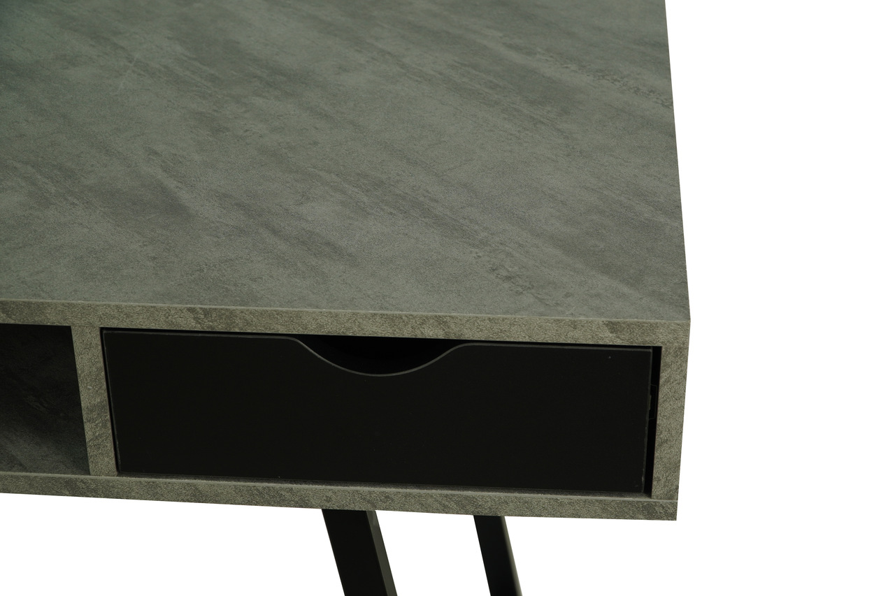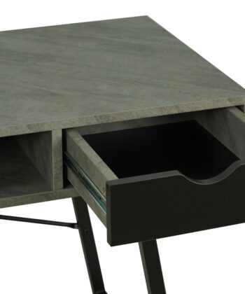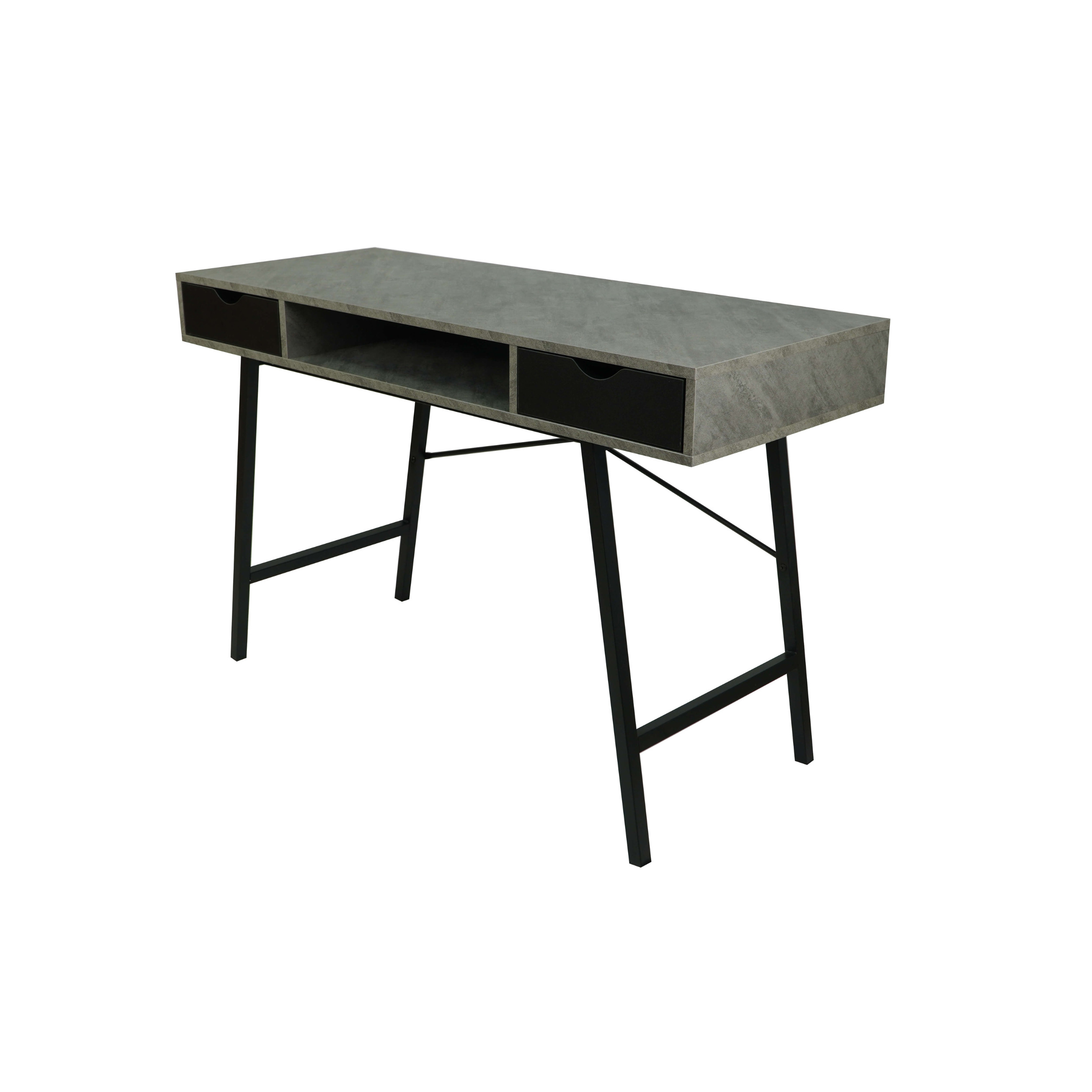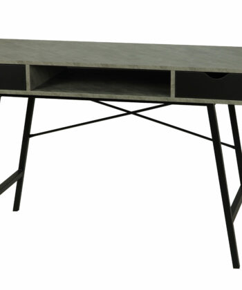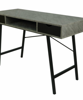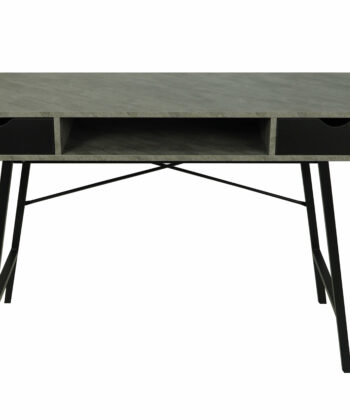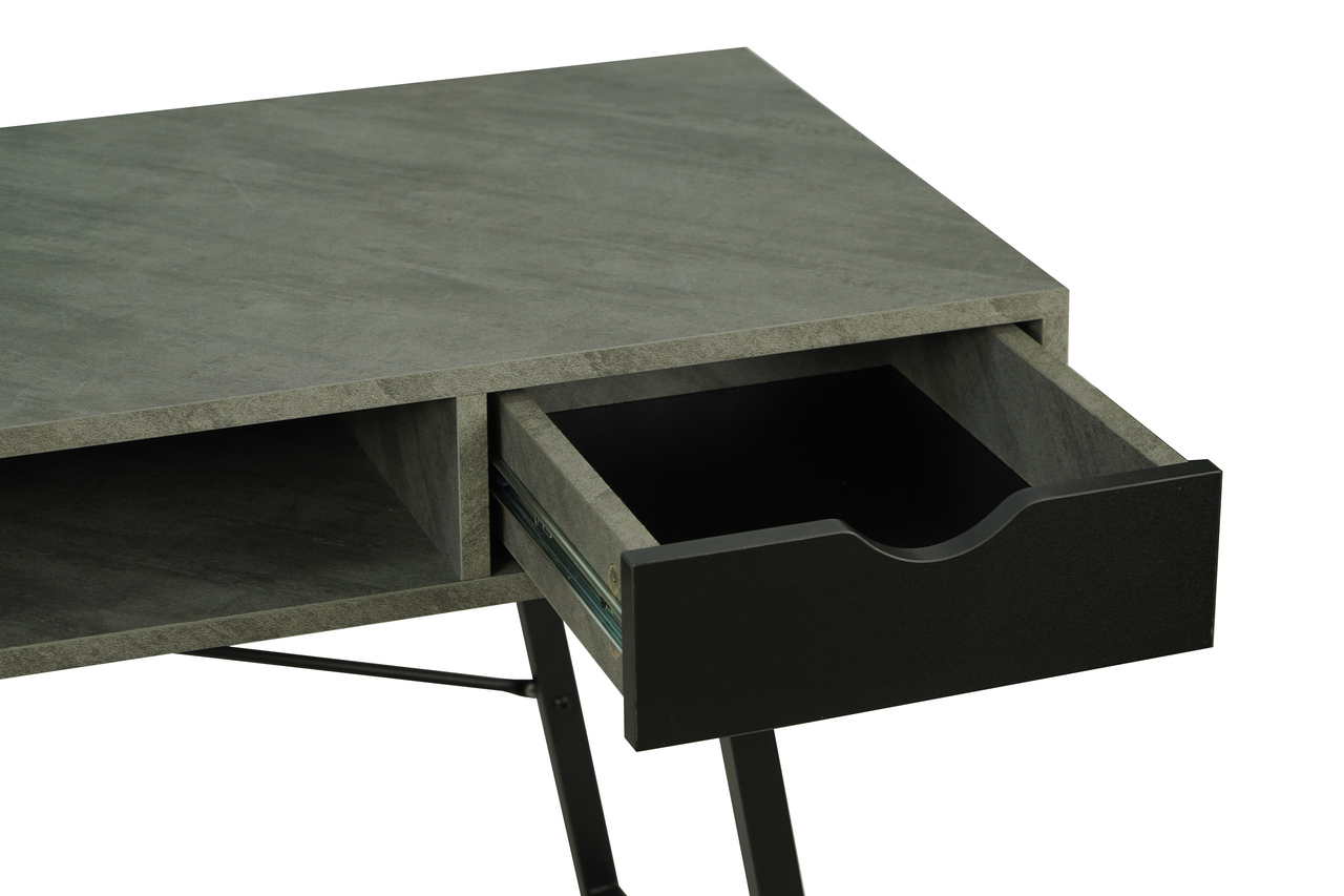 The light concrete‑effect MDF top adds an industrial yet elegant touch. Moreover, the black metal base provides excellent stability and visual contrast. Two pull‑out drawers help you organise office accessories, while a convenient shelf under the top offers extra storage for daily essentials.