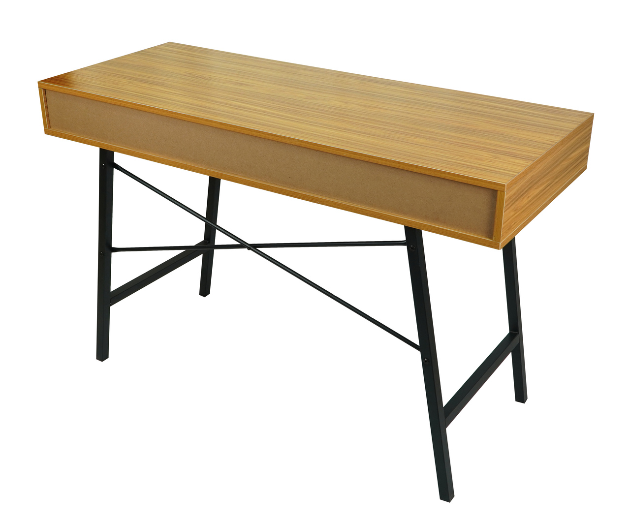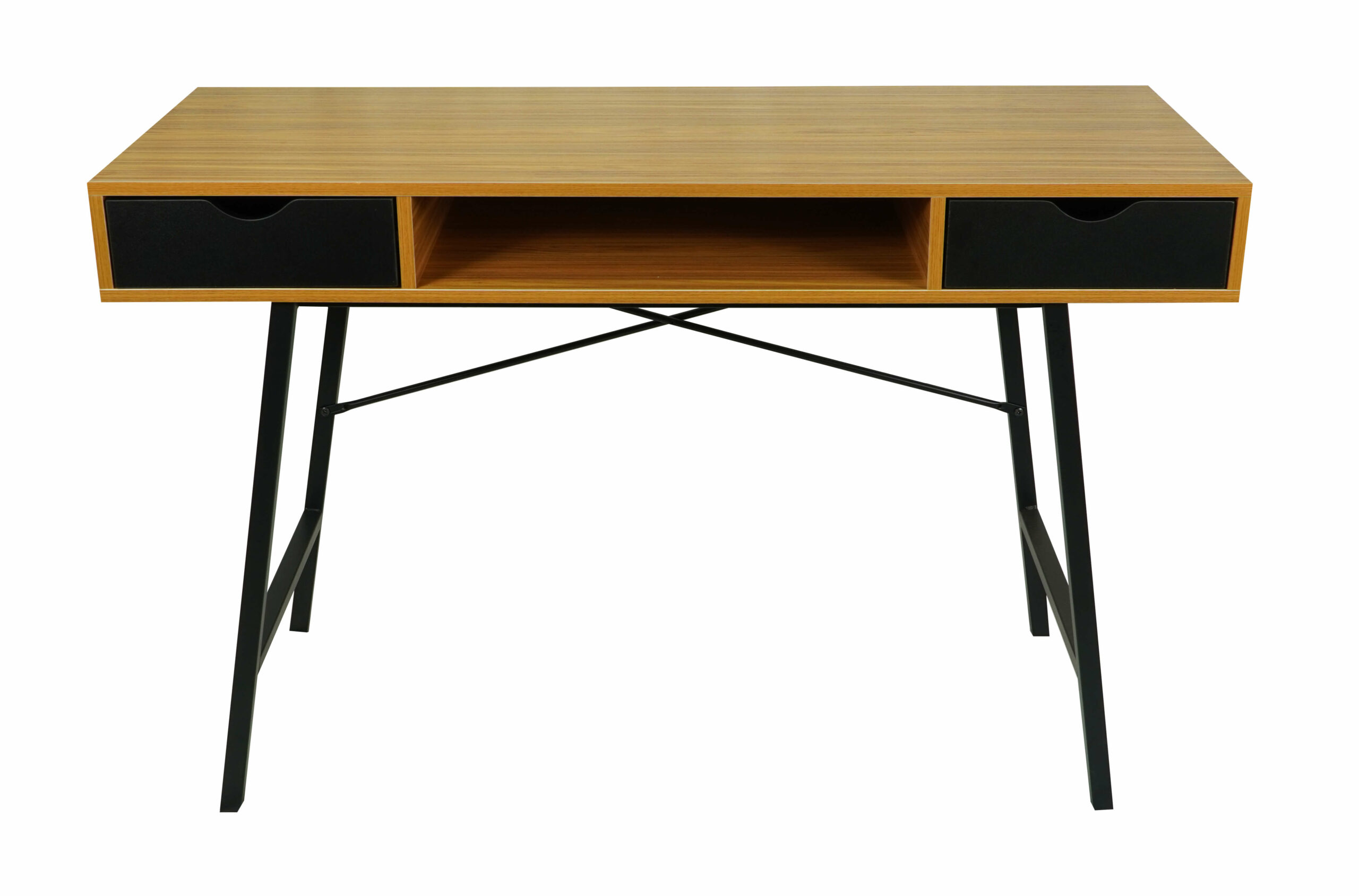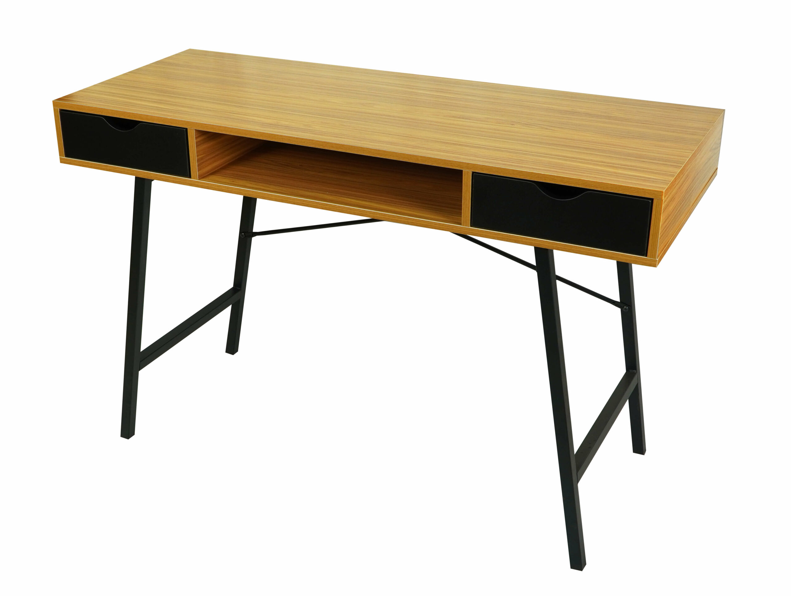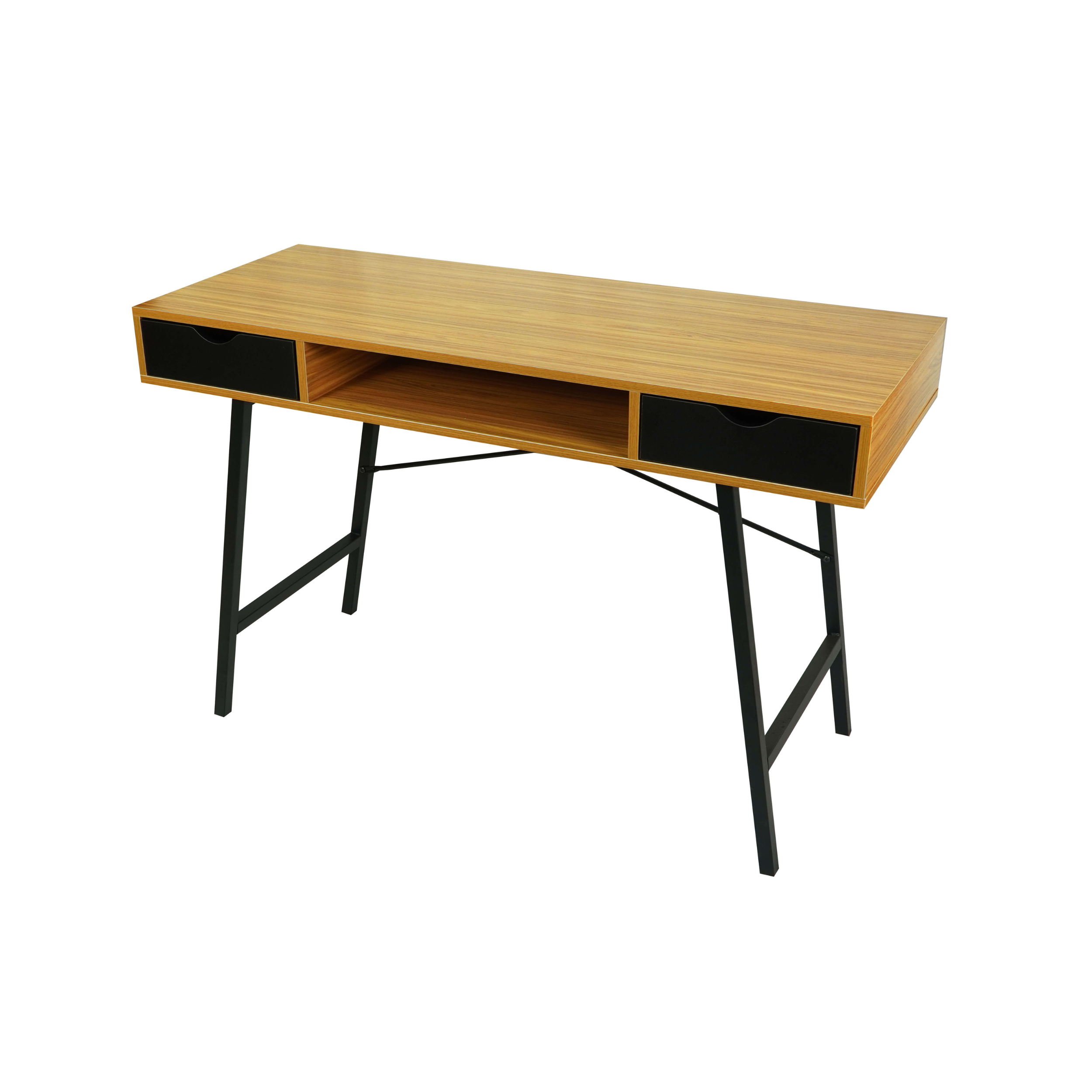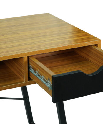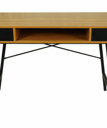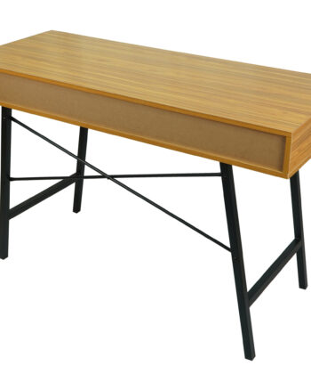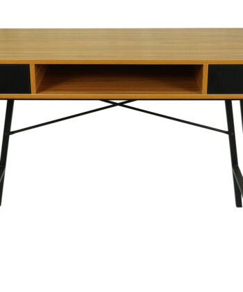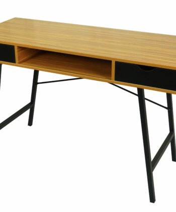 The bamboo‑tone MDF top offers a warm and natural look, complemented by a contrasting black metal frame that ensures durability and stability. Two spacious drawers provide convenient storage for stationery, notebooks, or office accessories, helping you keep your workspace tidy. A practical open shelf under the desktop offers extra space for frequently used items.