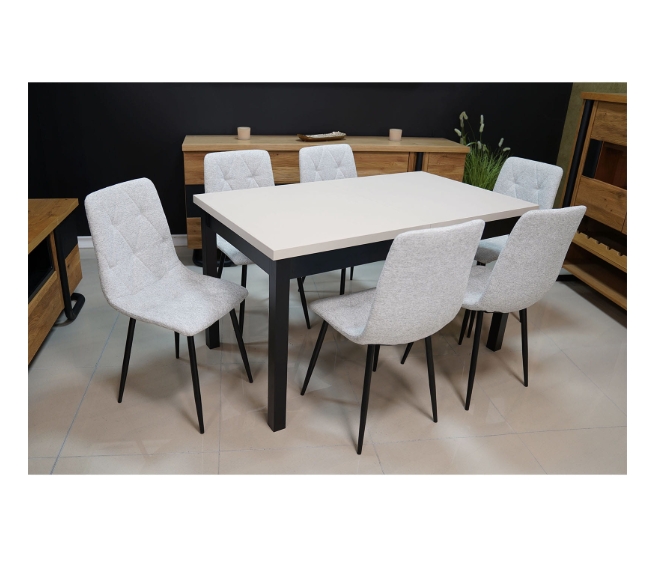 The black wooden legs provide a clear contrast to the soft cashmere top, giving the table a distinct loft-inspired look. In addition, the laminated surface is durable and easy to care for, which makes it a reliable option for busy households. Because of this balance between style and practicality, the Sorven table fits naturally into modern everyday life.