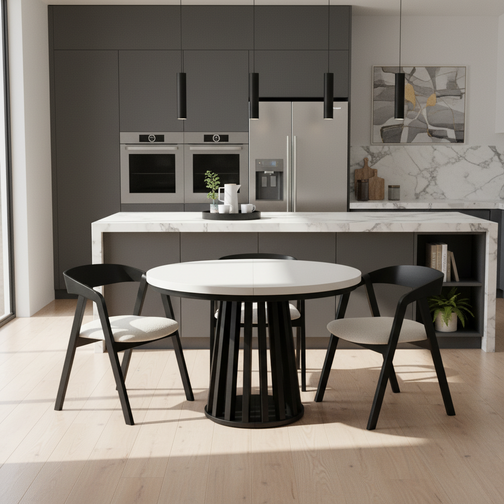 The Tovo Extendable Round Dining Table brings together everyday practicality, strong materials, and a clean modern profile. It is suitable for compact homes as well as larger family spaces, and its adaptable format makes it especially useful in Irish interiors where versatility is important. Thanks to its customisation options, easy-care surface, and elegant base, Tovo is a long-lasting table that combines style with real everyday value.