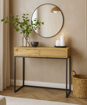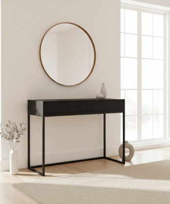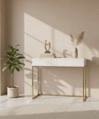 Featuring a sturdy metal frame and legs in a stylish copper finish, every table is equipped with convenient push-to-open drawers for seamless, handle-free access to your essentials. Ideal for displaying decor, organizing entryways, or providing extra storage in any contemporary Irish home, these consoles deliver both style and function. With a well-balanced 100×35 cm surface and a comfortable 80 cm height, they bring order to compact and spacious interiors alike. A 24-month warranty assures lasting peace of mind.