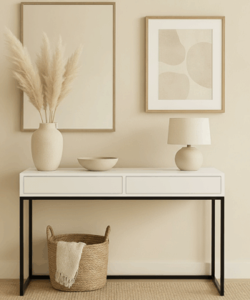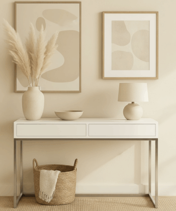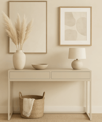 Discover the perfect blend of sophistication and everyday utility with our collection of modern console tables. Designed in a timeless cashmere hue, these consoles add understated elegance to hallways, living rooms, or bedrooms. Each piece is crafted from durable laminated board, ensuring lasting beauty and easy cleaning.