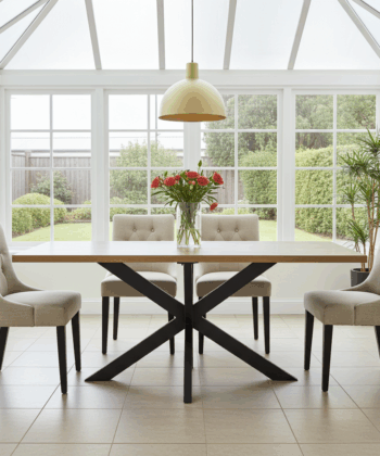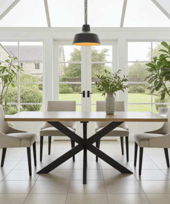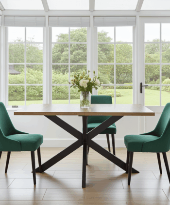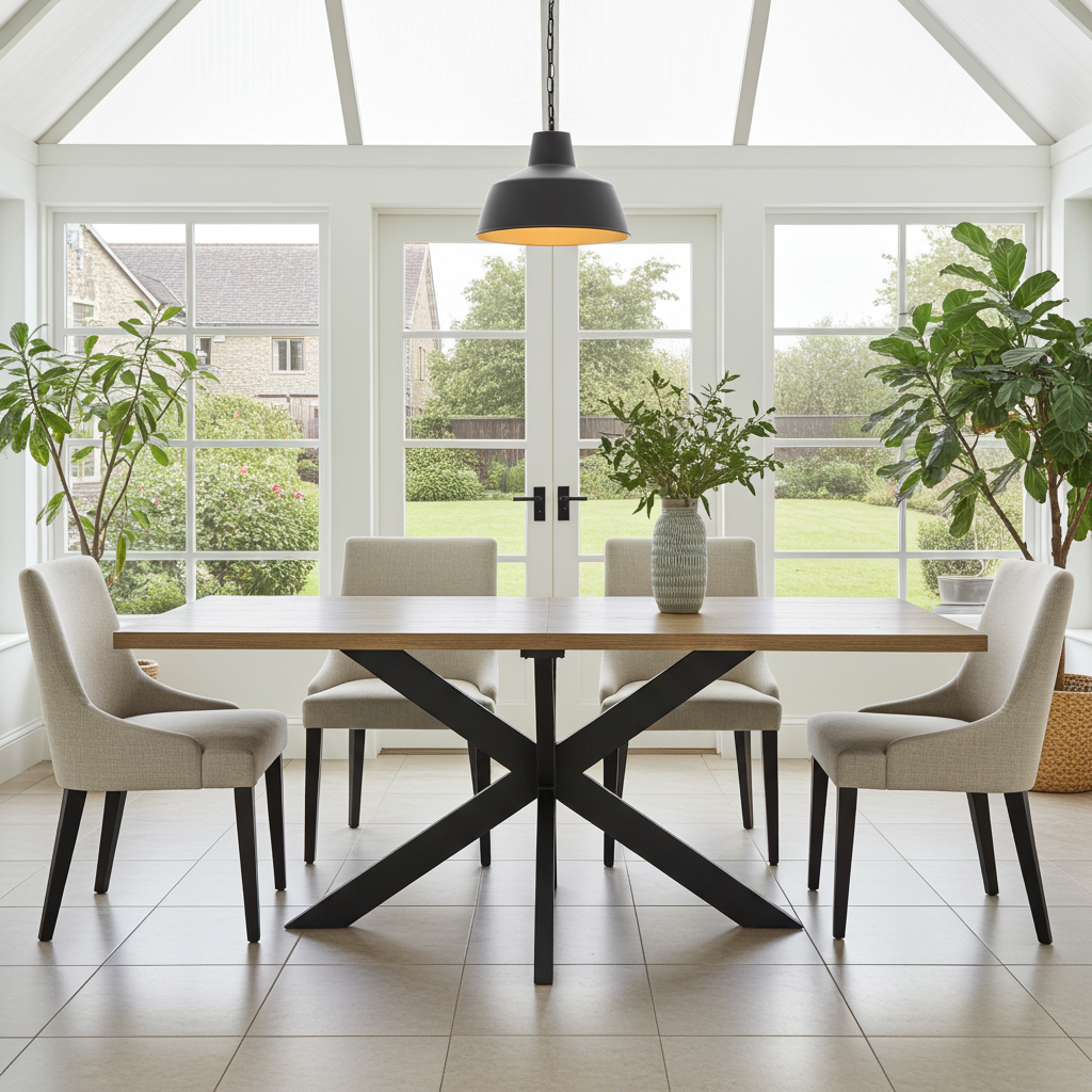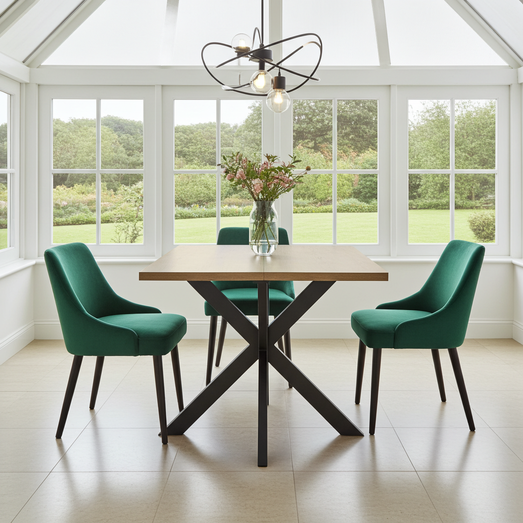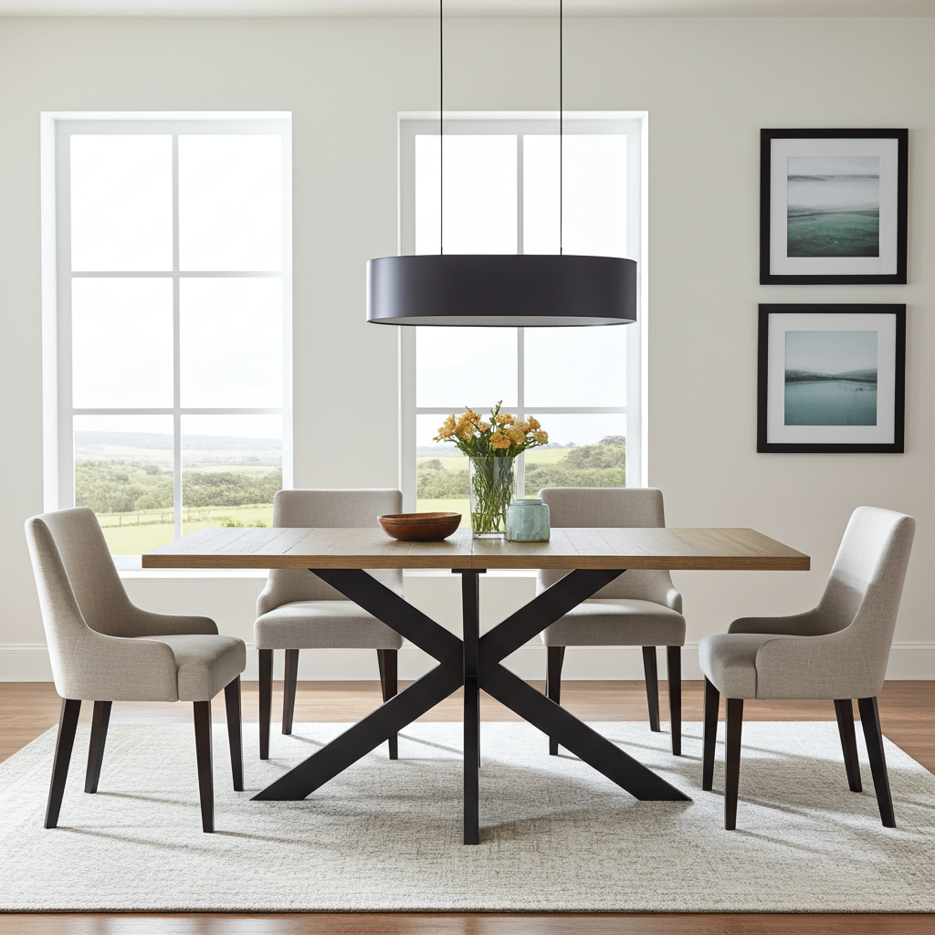 – ✓ Top: Laminated board, 3.6 cm thick – ✓ Colours: Wide choice of wood and modern finishes (see photo) – ✓ Frame: Powder-coated steel, matte black – ✓ Width: 150 cm (extends to 190 cm) – ✓ Depth: 80 cm – ✓ Fast extension system – ✓ Durable and scratch-resistant – ✓ Easy-clean surface – ✓ Self-assembly, all fittings included