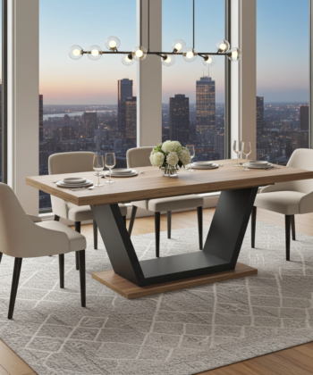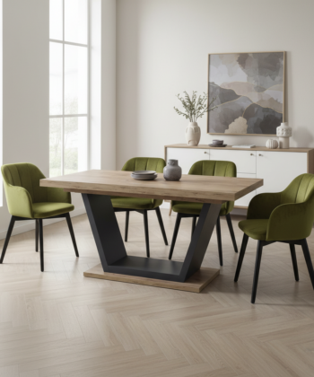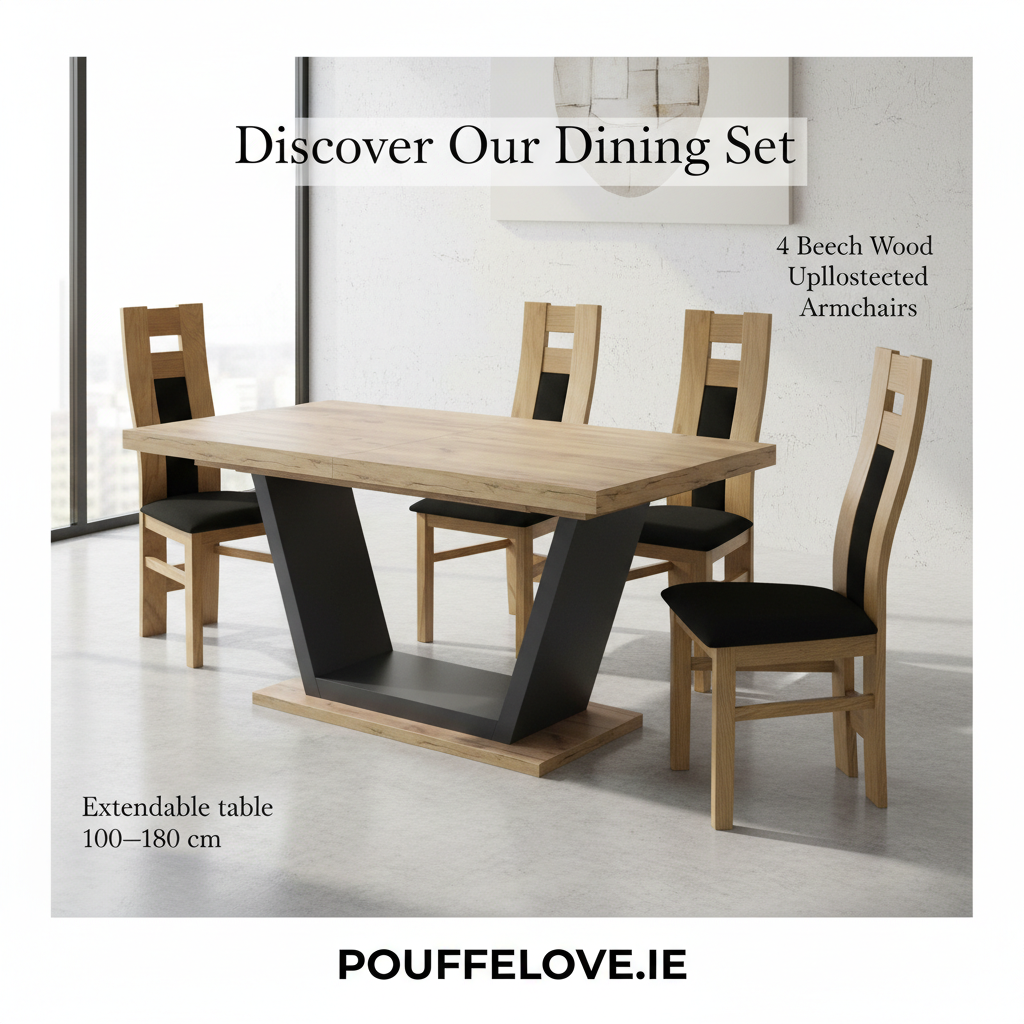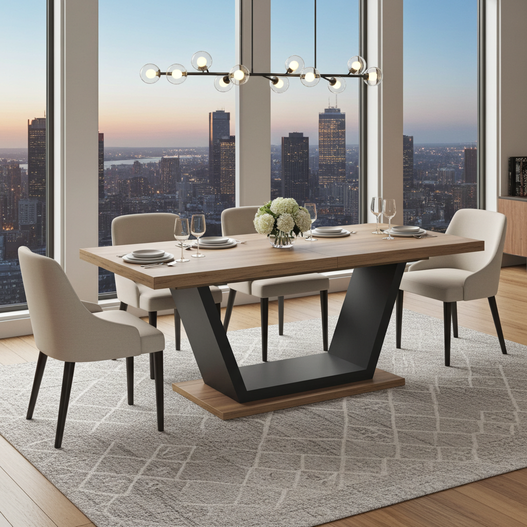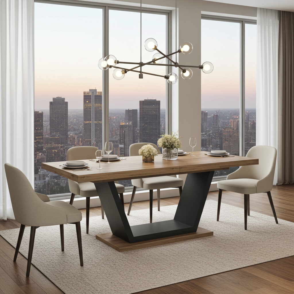 Golden Craft Extendable Dining Table – Oak Laminate with Graphite Legs