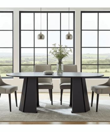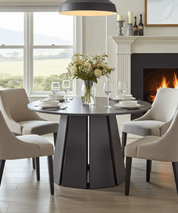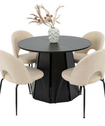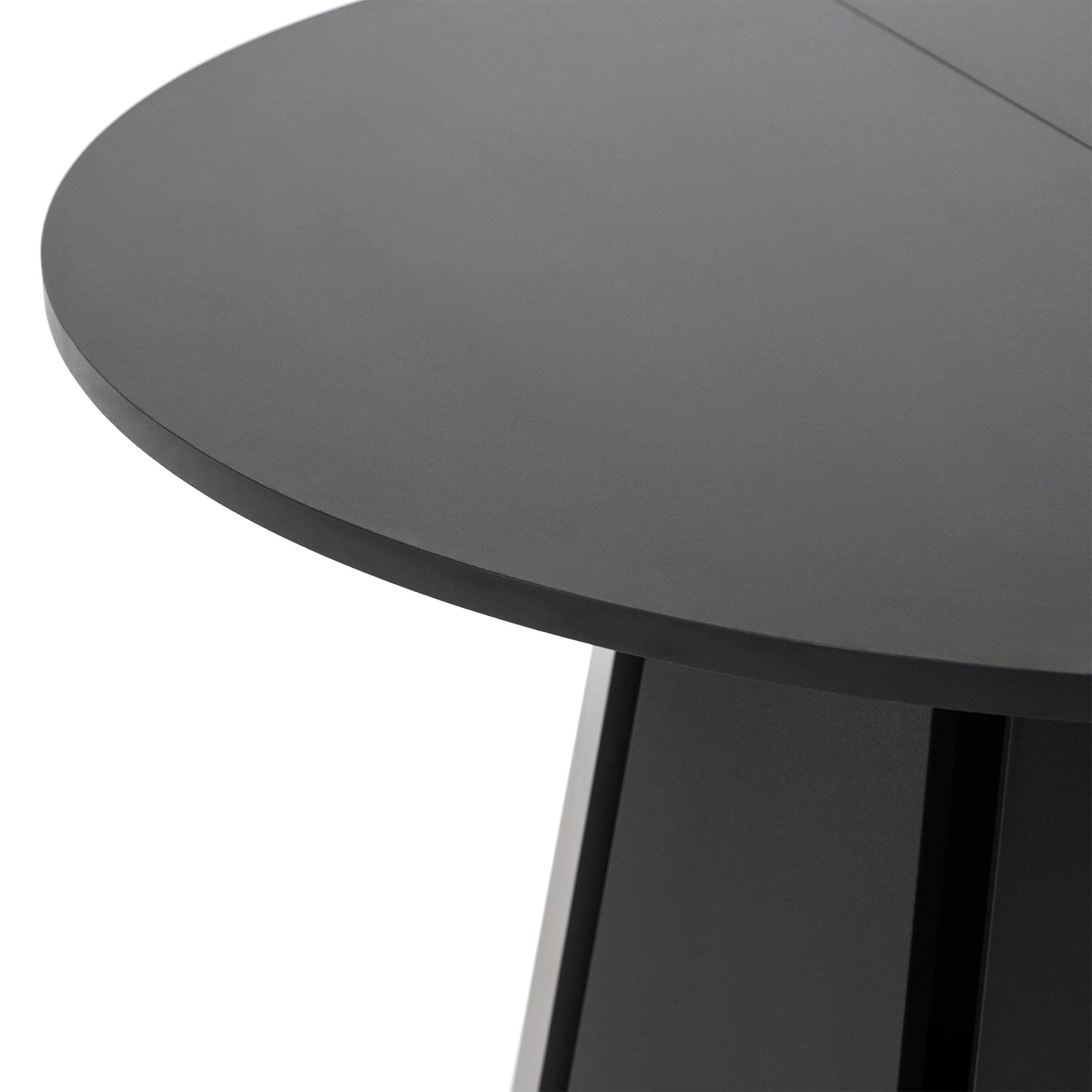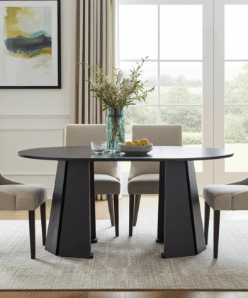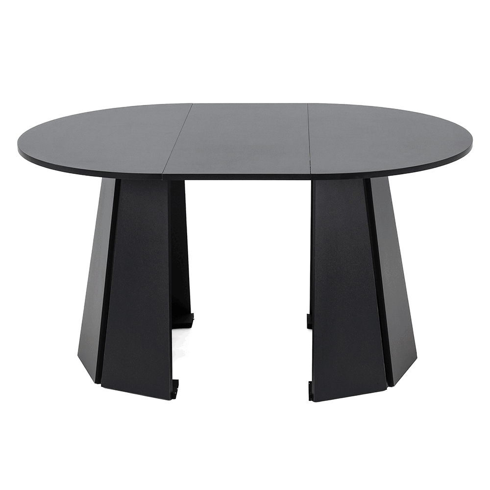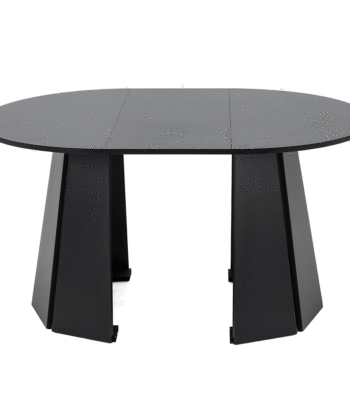 The Sterling Extendable Round Dining Table expertly blends modern design, functionality, and solid craftsmanship. The sleek black finish and geometric base make it a striking centrepiece for both contemporary and loft-inspired interiors. Start with an inviting 100 cm round top, perfect for intimate meals or relaxed coffee moments. Whenever you host extra guests, simply extend the table to its spacious 140 cm oval format using the concealed extension leaf.