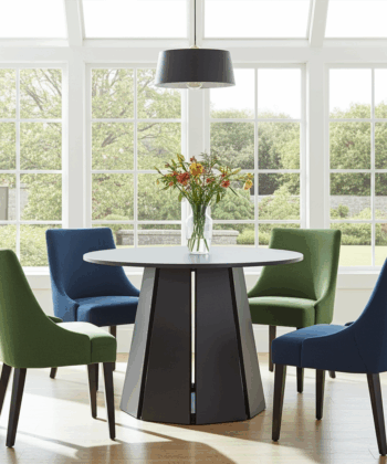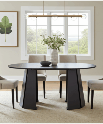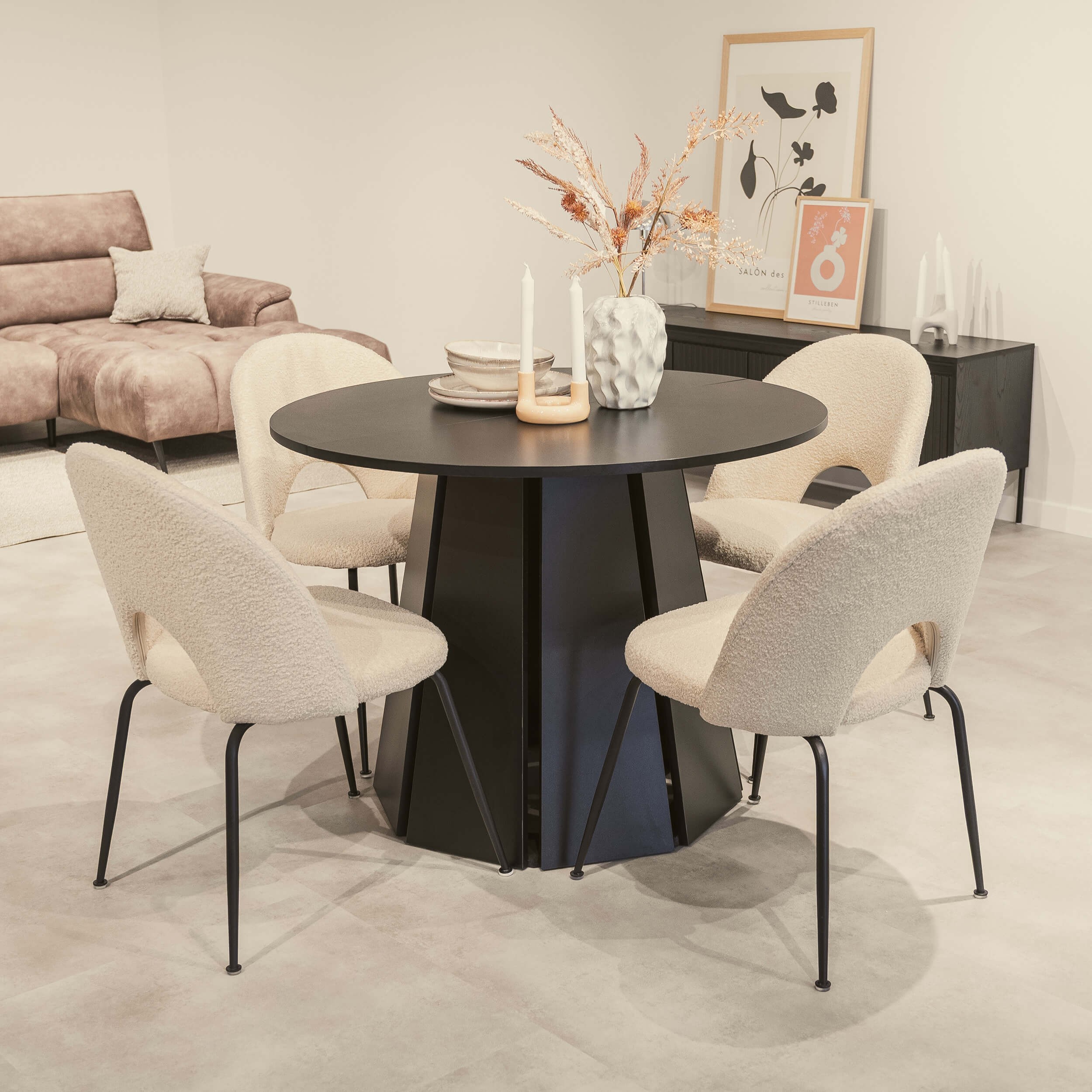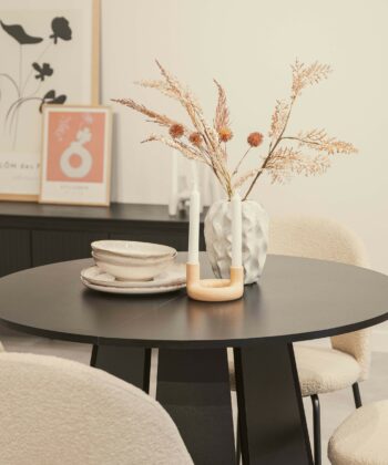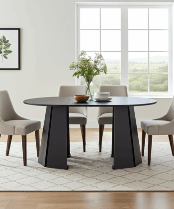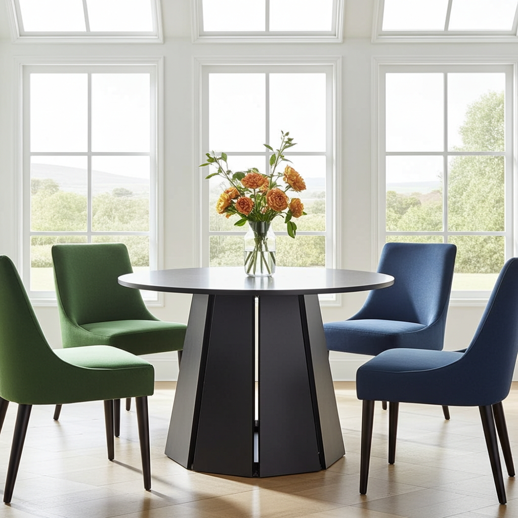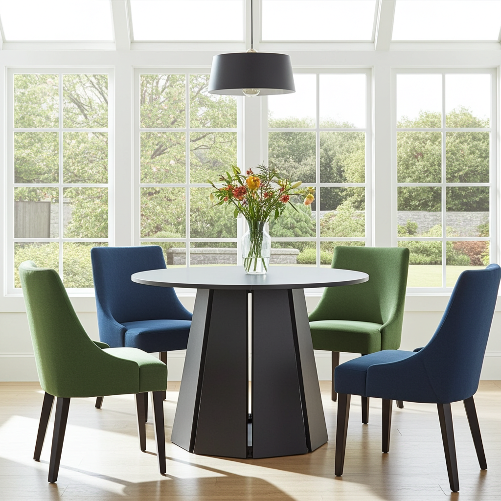 The Sterling Extendable Round Dining Table expertly blends modern design, functionality, and solid craftsmanship. The sleek black finish and geometric base make it a striking centrepiece for both contemporary and loft-inspired interiors. Start with an inviting 100 cm round top, perfect for intimate meals or relaxed coffee moments. Whenever you host extra guests, simply extend the table to its spacious 140 cm oval format using the concealed extension leaf.