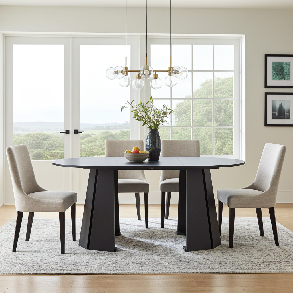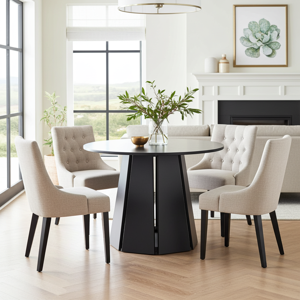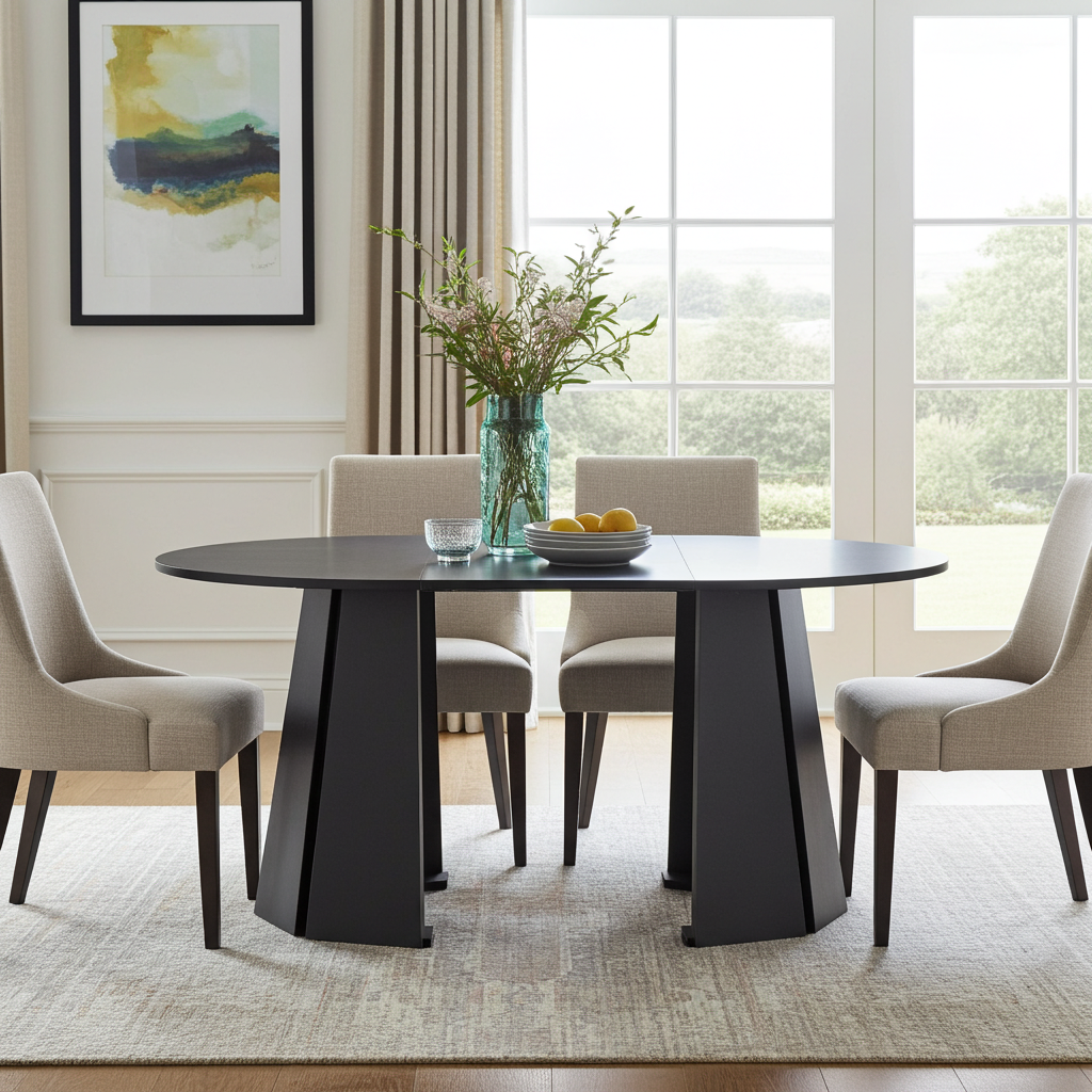 Sterling Extendable Round Dining Table – Modern Black Finish, Solid Construction & Flexible Seating