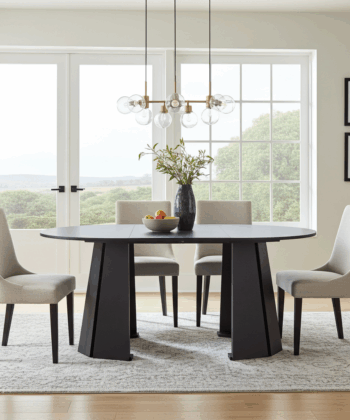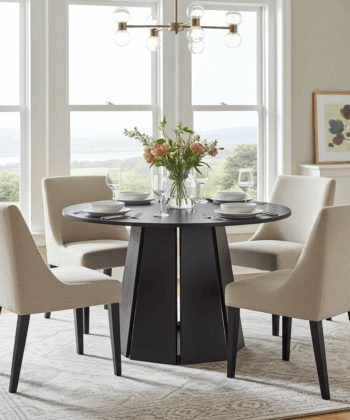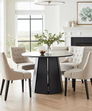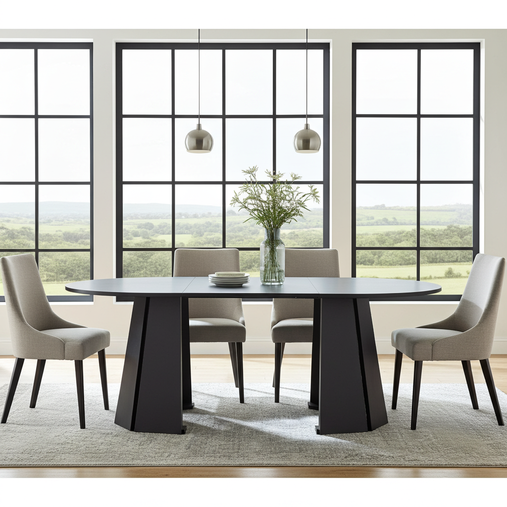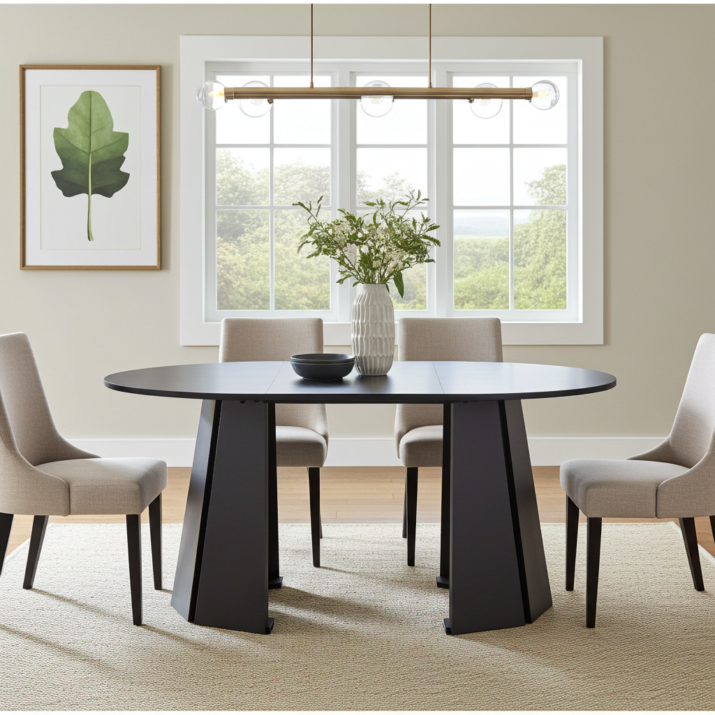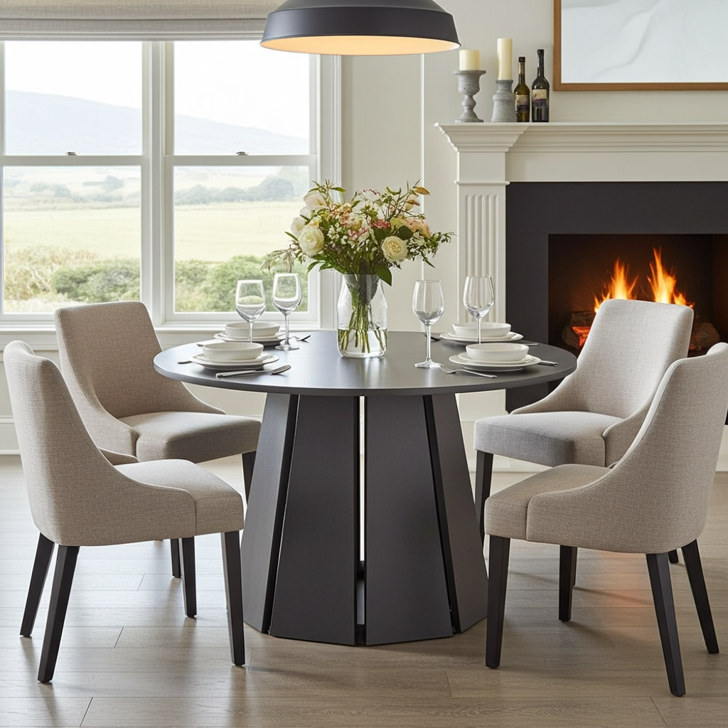 Sterling Extendable Round Dining Table – Modern Black Finish, Solid Construction & Flexible Seating