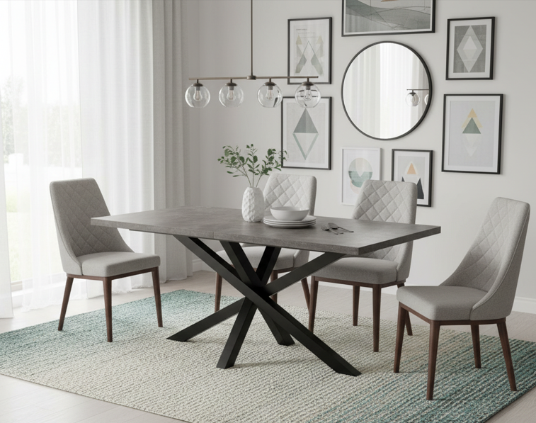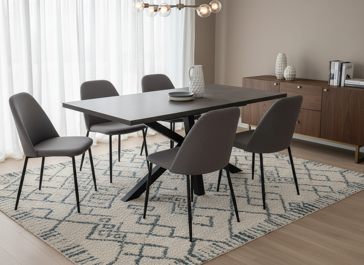 – ✓ Model: Urban Loft Extendable Table – ✓ Colour: Choose any laminate shade (free, except white) – ✓ Tabletop: 3.6 cm laminated board, resistant to scratches and stains – ✓ Metal legs: Powder-coated matte black – ✓ Size: 150 x 80 cm (extends to 190 cm with included 40 cm leaf) – ✓ Height: 76 cm – ✓ Extension mechanism: Fast, tool-free – ✓ New, factory-sealed piece – ✓ Made in Poland, 2-year warranty – ✓ Matching chairs available