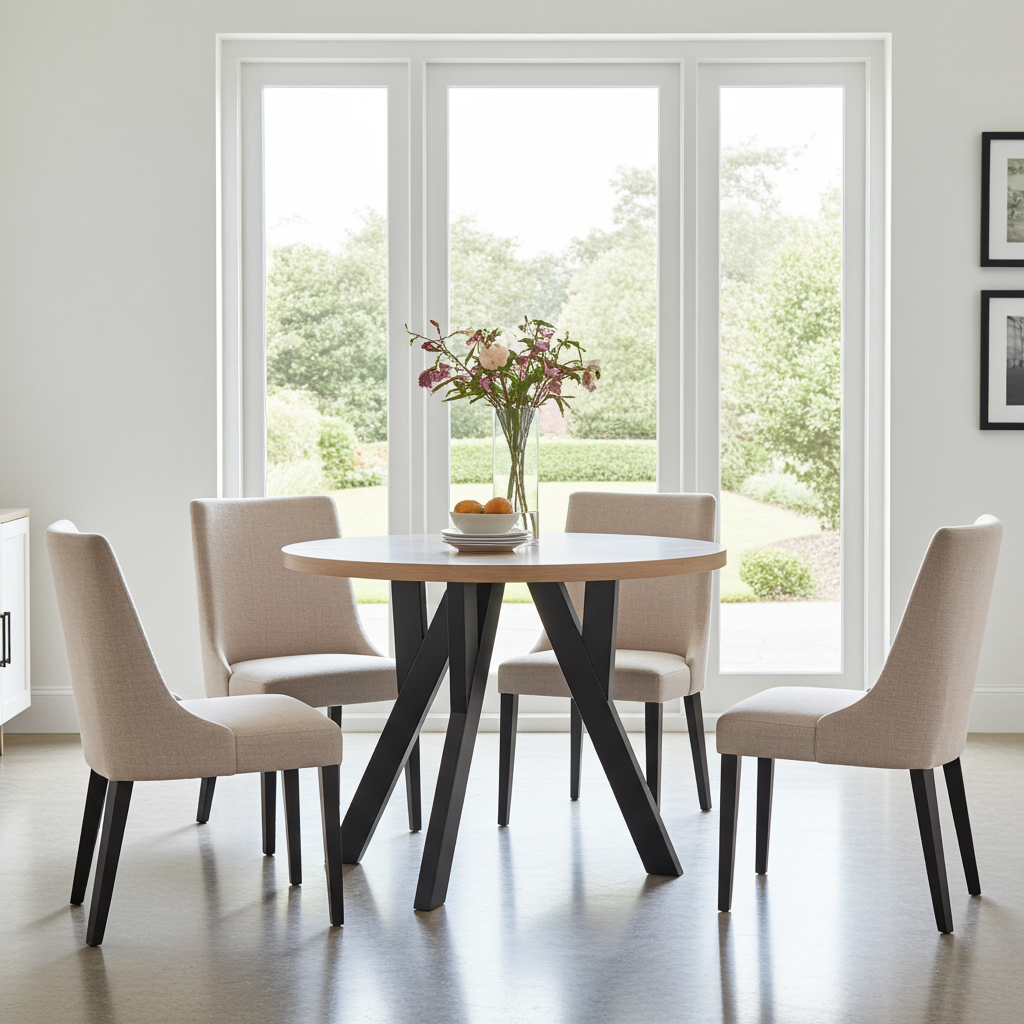 Bring flexibility and style to your dining area with the Urban Loft Round Extendable Dining Table. Designed for modern Irish homes, this table starts as a compact 100 cm round shape, perfect for everyday family meals, and extends to a generous 140 × 100 cm oval to accommodate dinner parties and gatherings.