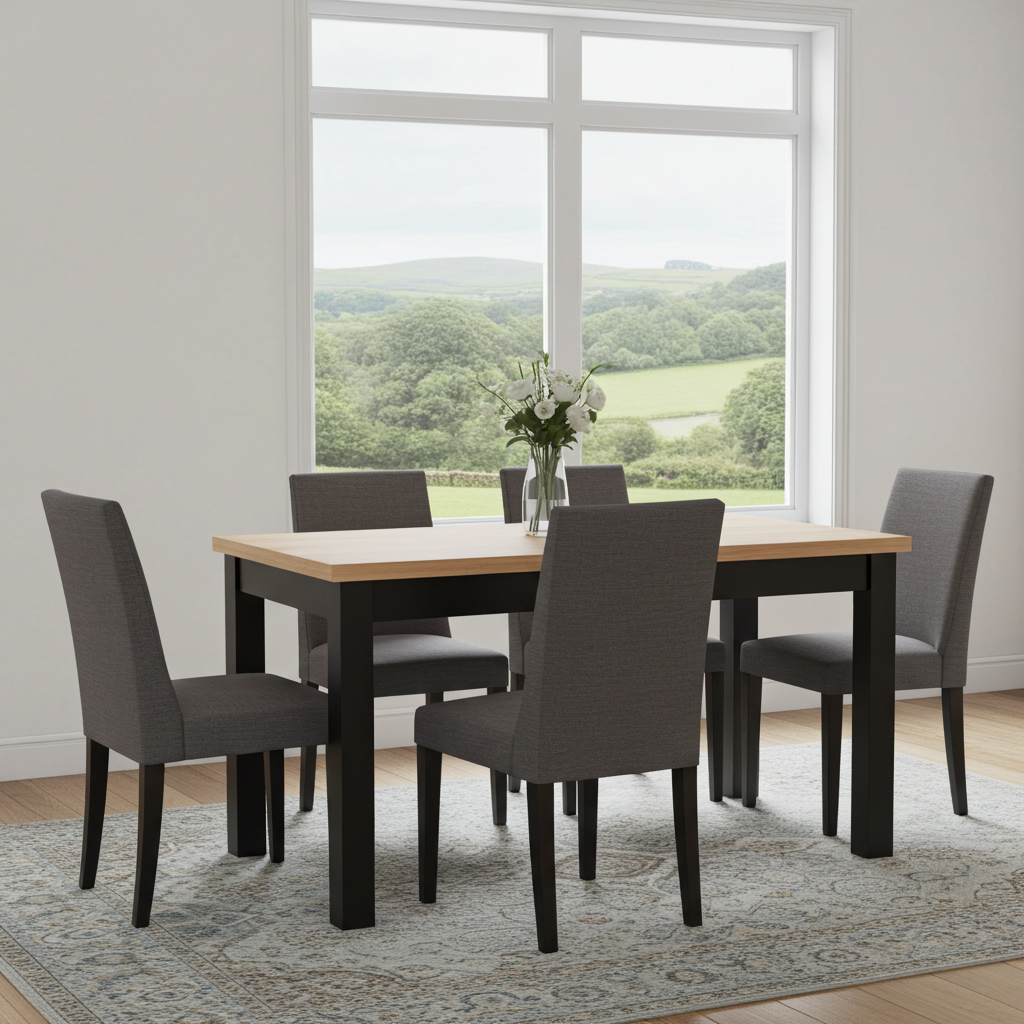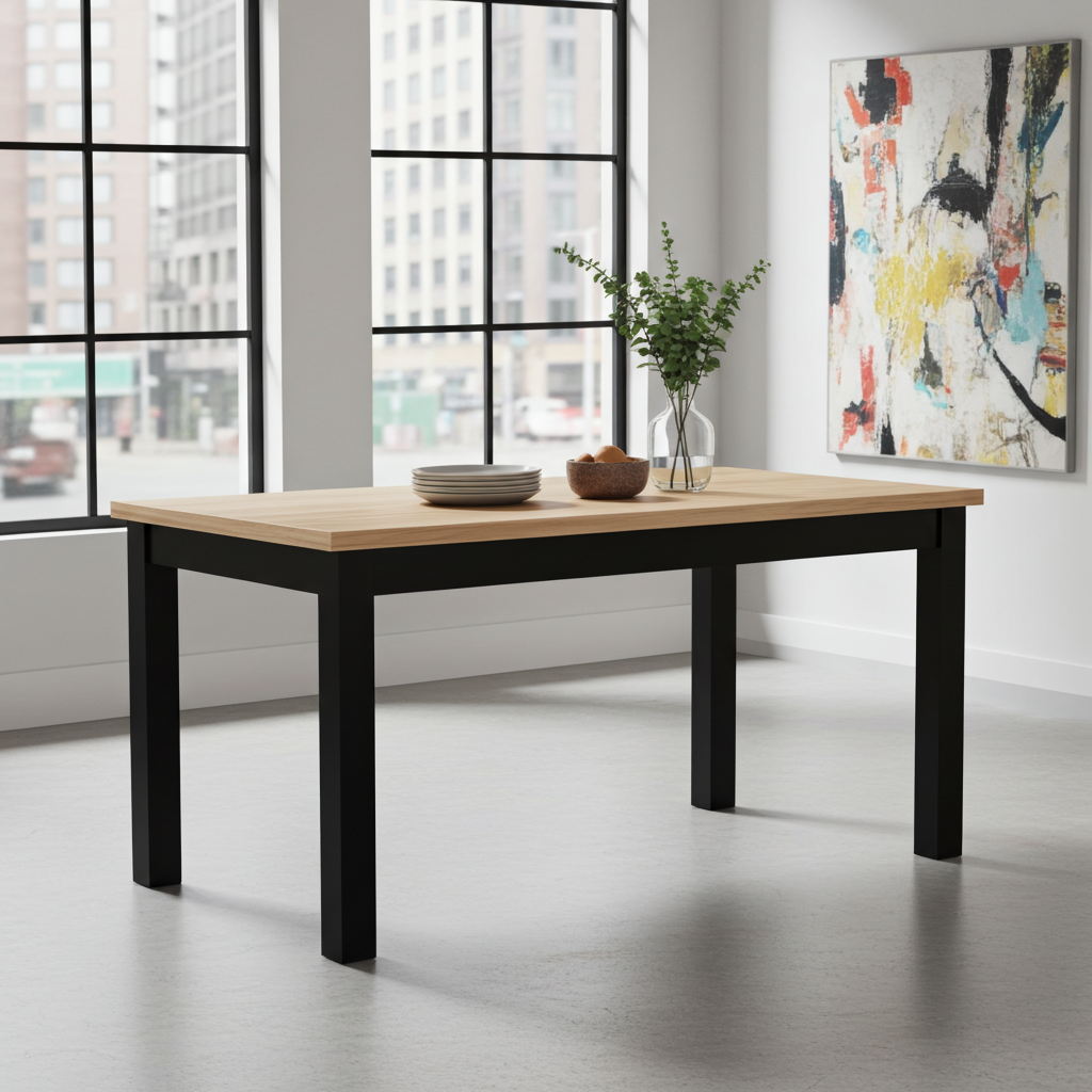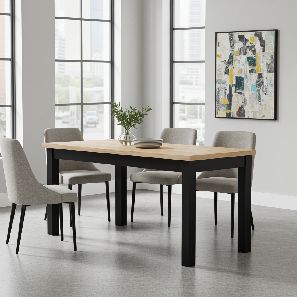 – ✓ Model: Versatile ExtendMax – ✓ Finishes: Laminated or real wood veneer – ✓ Colour: Wide palette available in the configurator – ✓ Legs: Solid beech wood, 7×7 cm section – ✓ Sizes: 120/170×70, 140/200×80, 160/230×90, 200/270×100 cm – ✓ Seats: 4–12 (depending on size) – ✓ Extension: Fast side-slide with insert under the top – ✓ Durable, scratch and heat-resistant top – ✓ Polish production, 2-year warranty – ✓ Flat-packed for easy home assembly