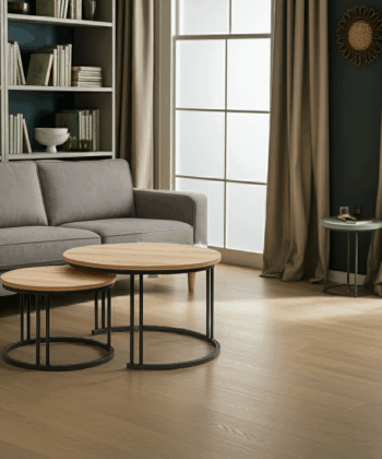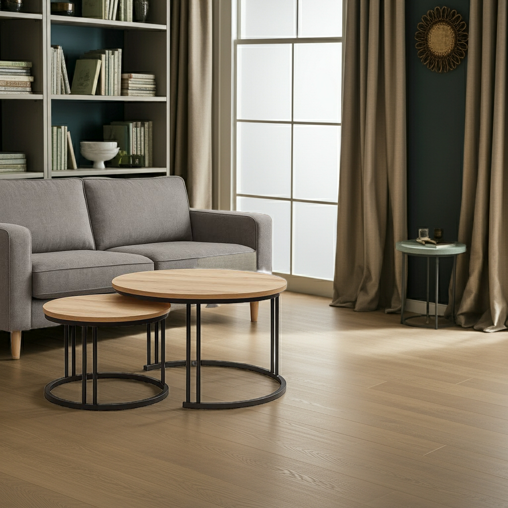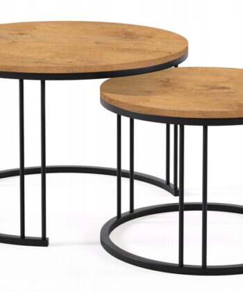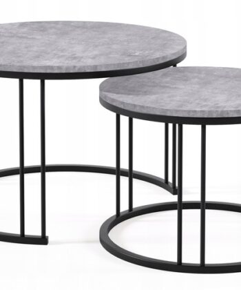 The STK M10 brings contemporary design and smart functionality to your living room. This set of two round nesting coffee tables features elegant concrete-effect laminated tops paired with minimalist black metal frames. Thanks to two different sizes, the smaller table fits neatly under the larger one, saving space whenever you need flexibility in your layout. This striking pair works beautifully in interiors finished in modern, industrial, or Scandinavian style.