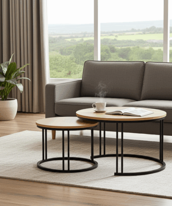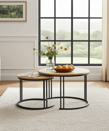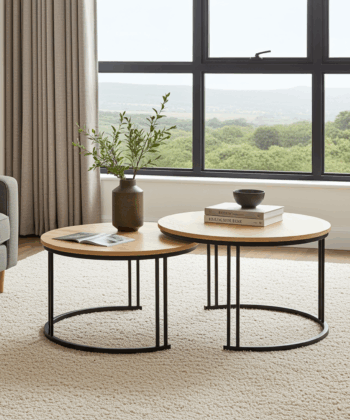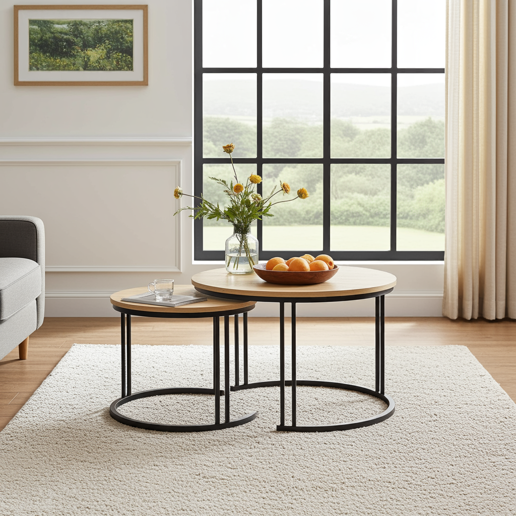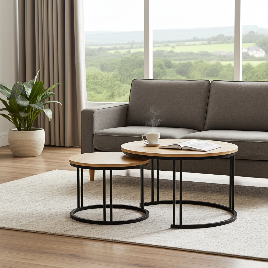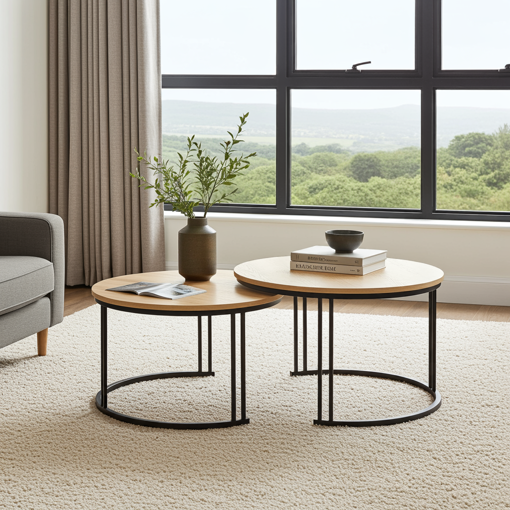 The circular tops—measuring 75cm and 58cm in diameter—provide generous surface area for drinks, books, or décor.