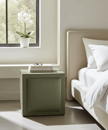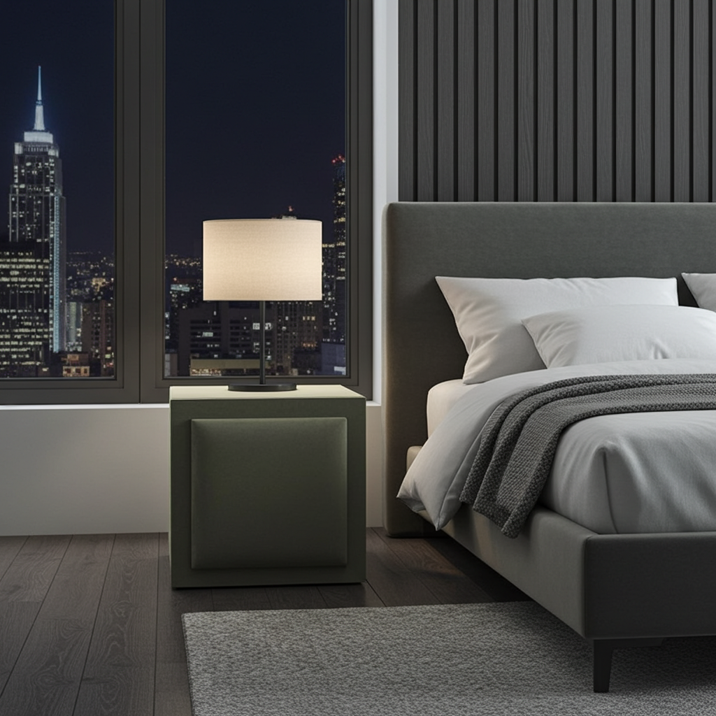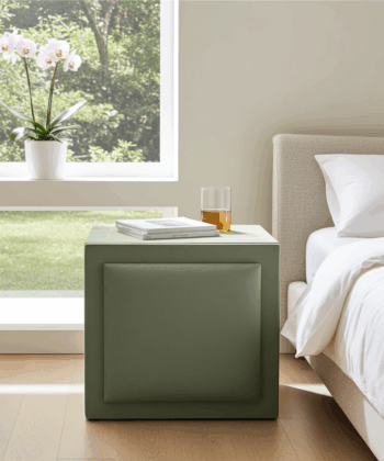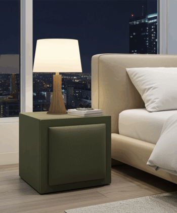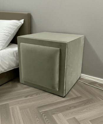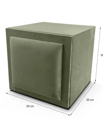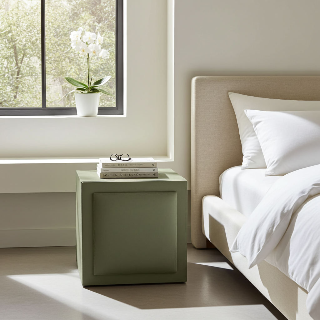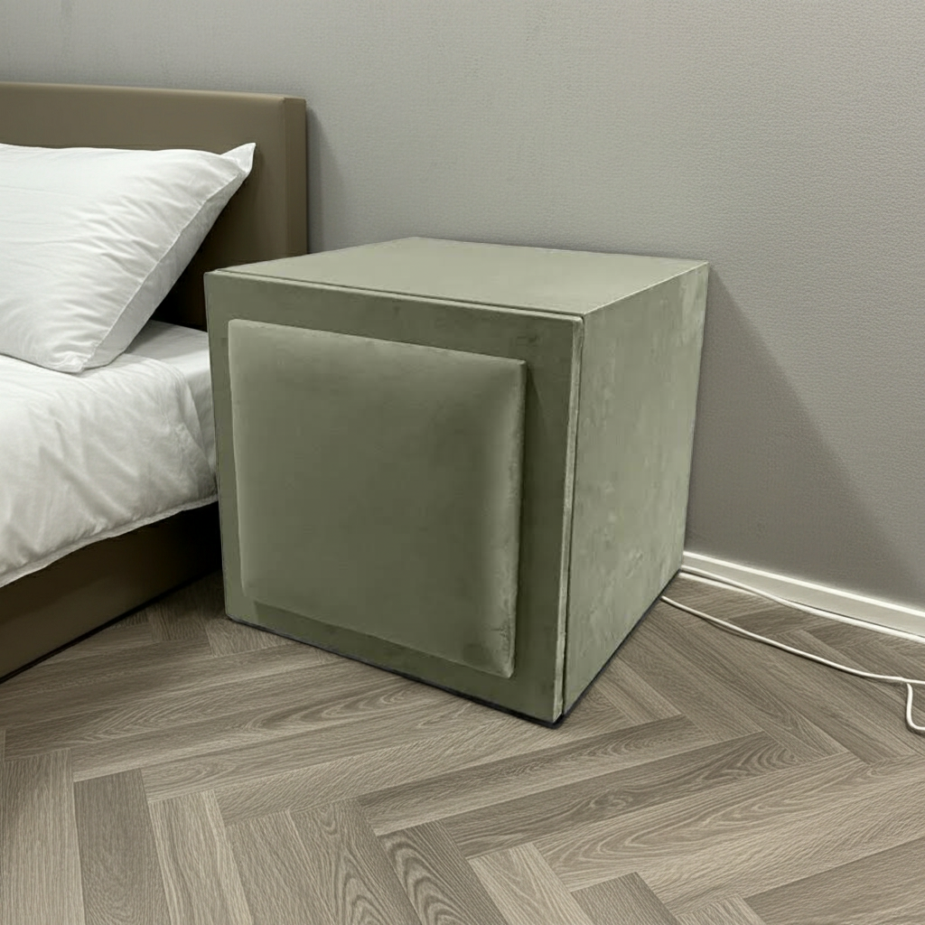 Lori brings a soft, hotel‑style finish to the bedside with full upholstery over the top, sides, and front, so the cube looks refined from every angle and feels gentle to the touch. Moreover, the recessed cushioned panel adds depth and character, while the hinged front opens smoothly to reveal an internal shelf that keeps books, glasses, and chargers neat yet within reach. Consequently, the night routine stays calm and organised, even in compact rooms. ✅